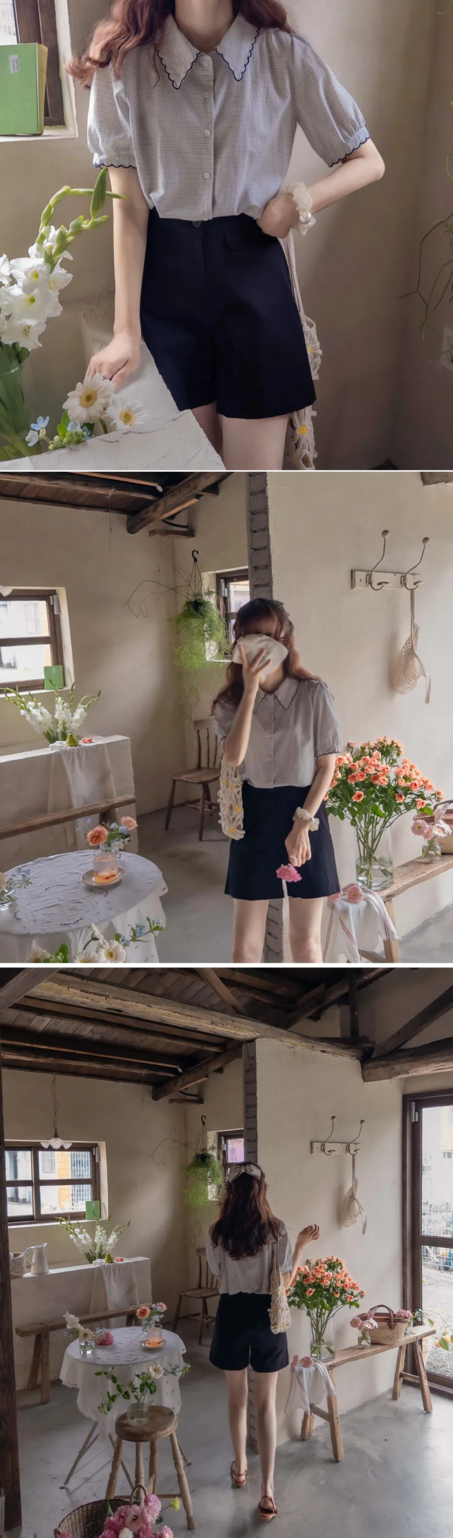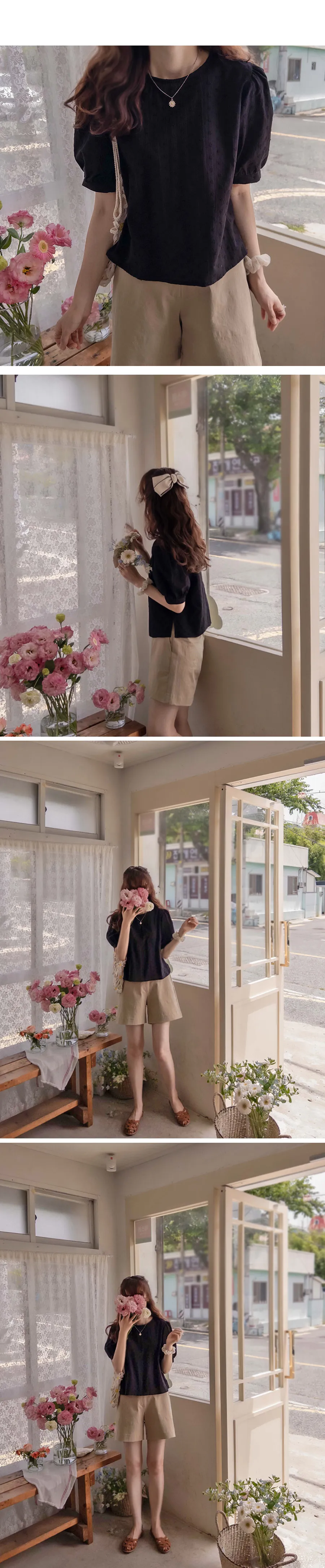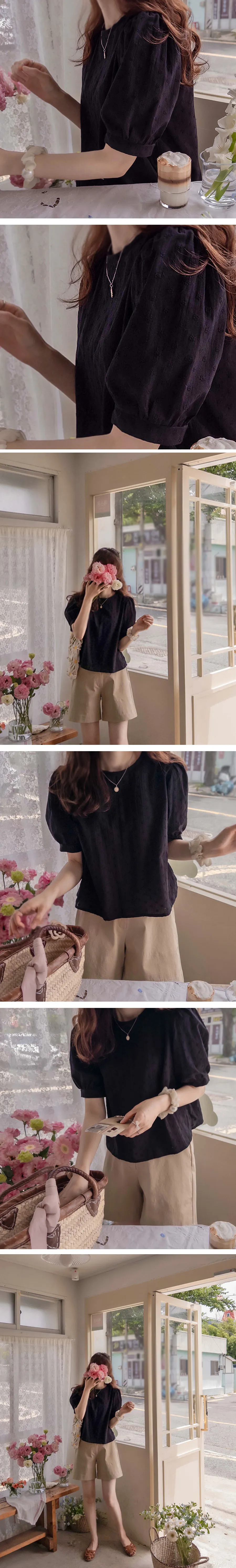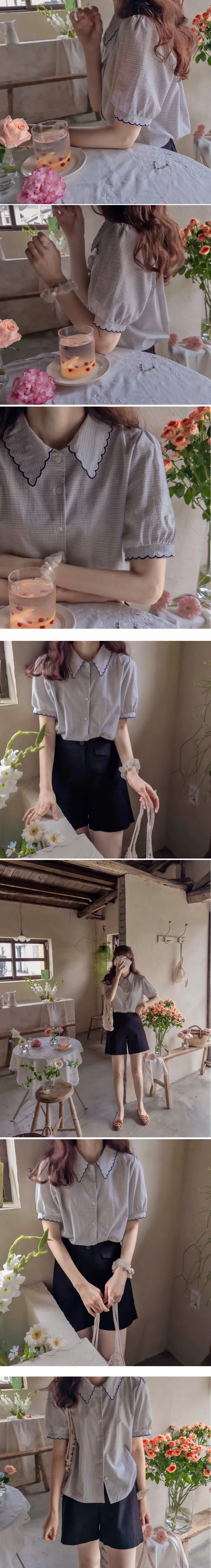 優雅刺繡花朵波浪袖迷你蕾絲領排扣上衣
