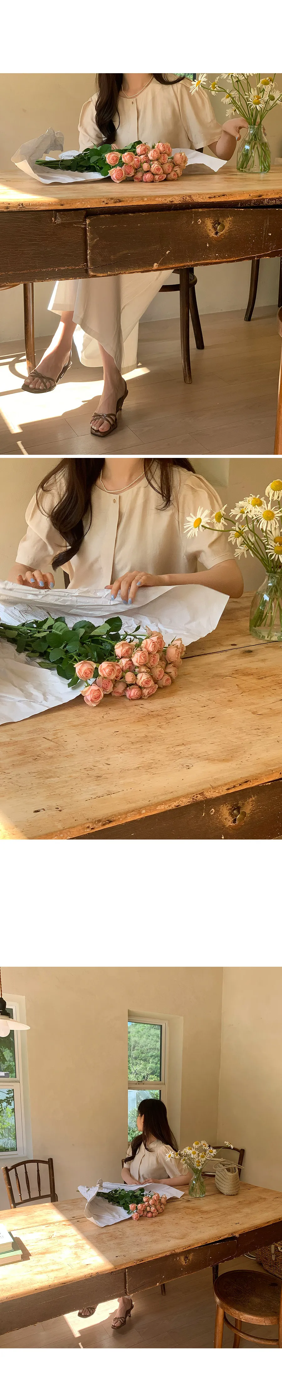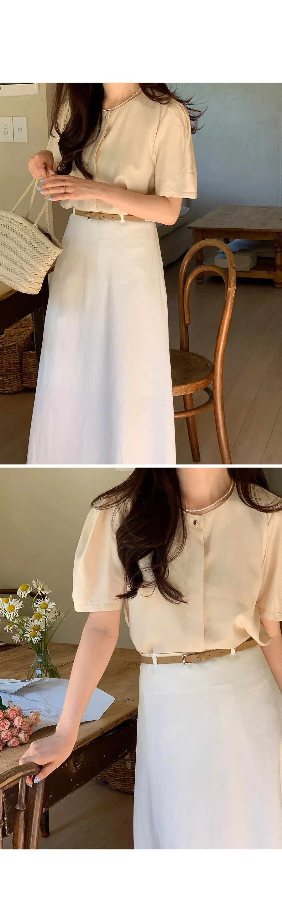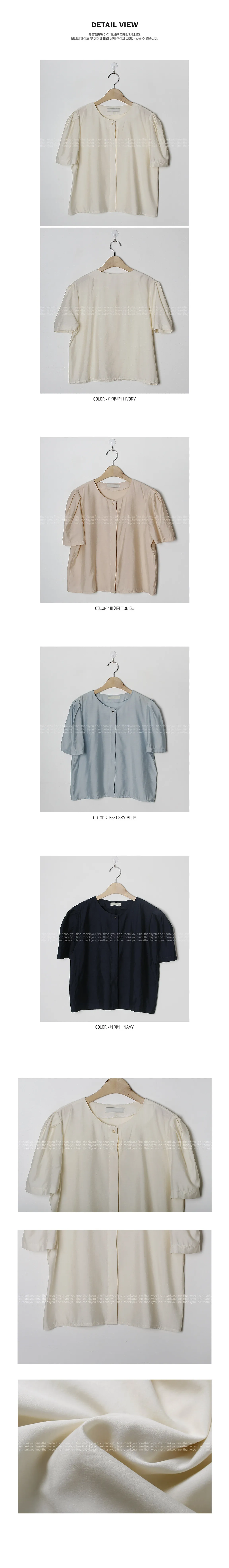 柔美泡泡袖剪裁隱藏鈕扣絲質排扣上衣