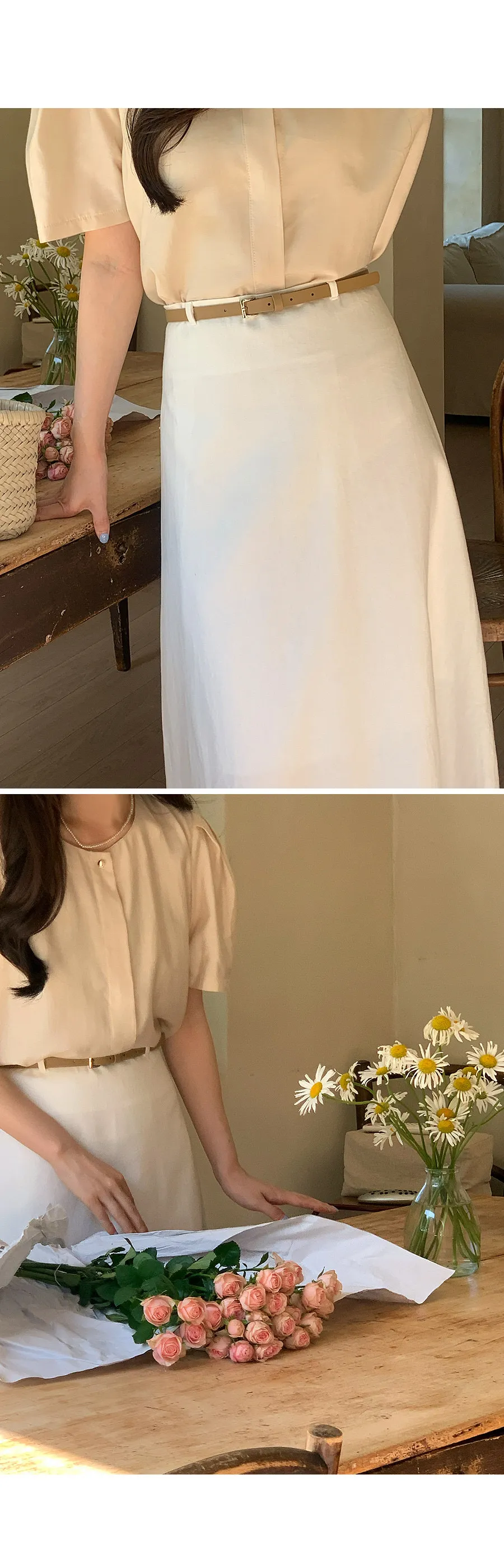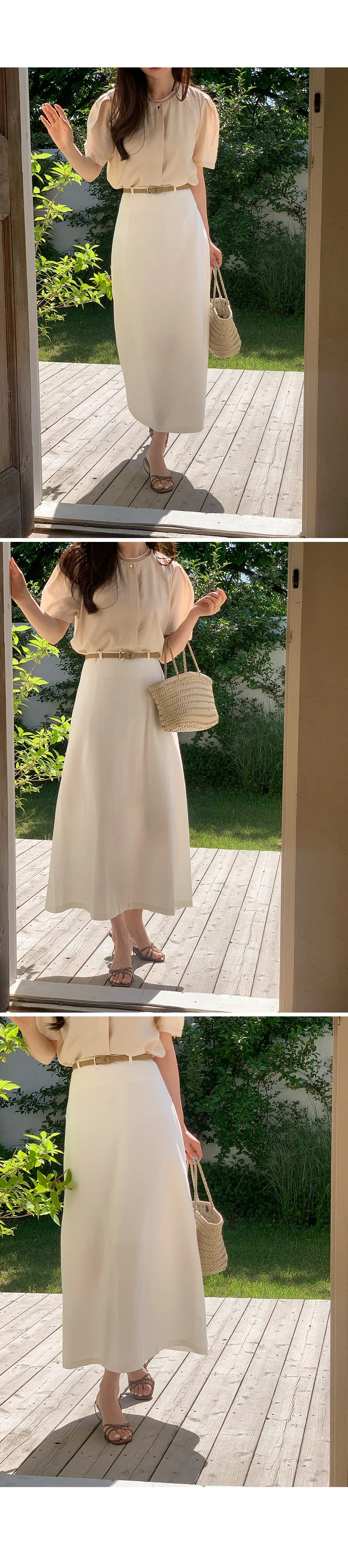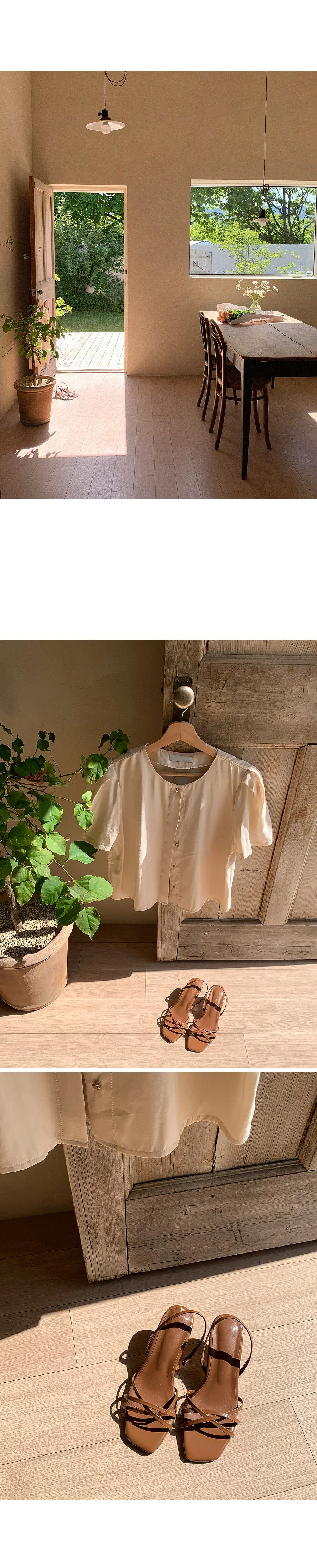 柔美泡泡袖剪裁隱藏鈕扣絲質排扣上衣