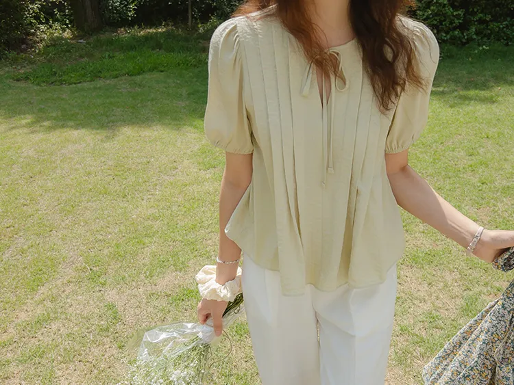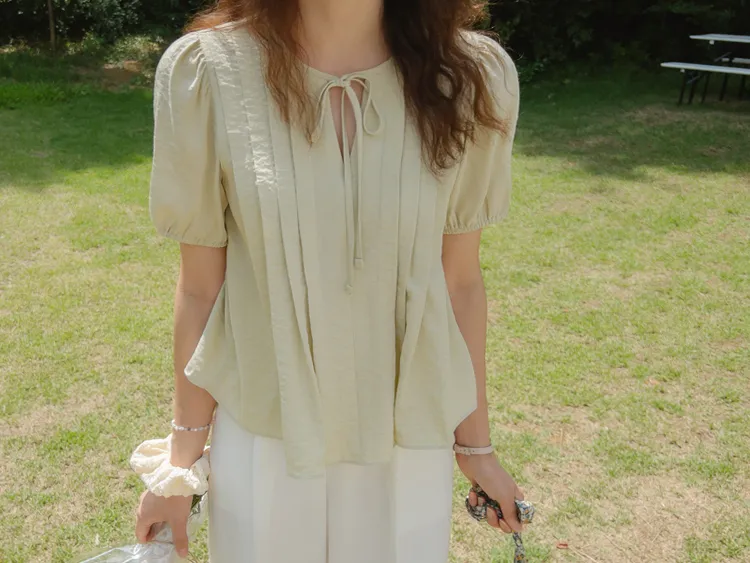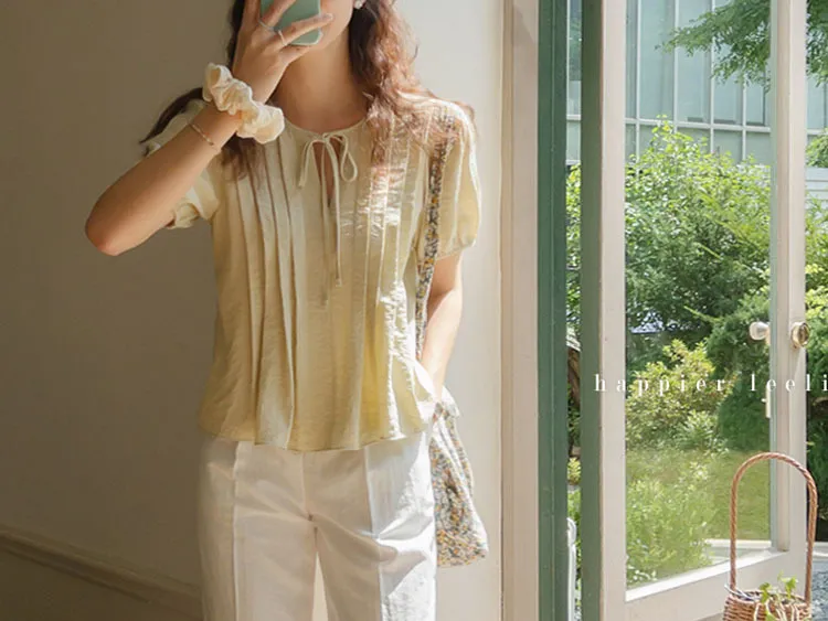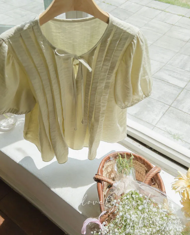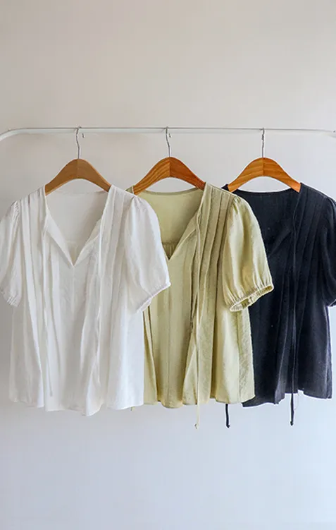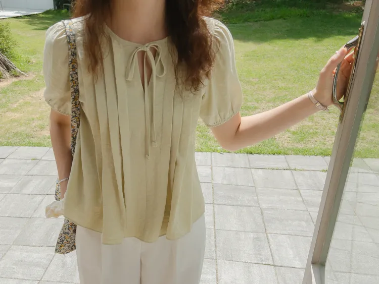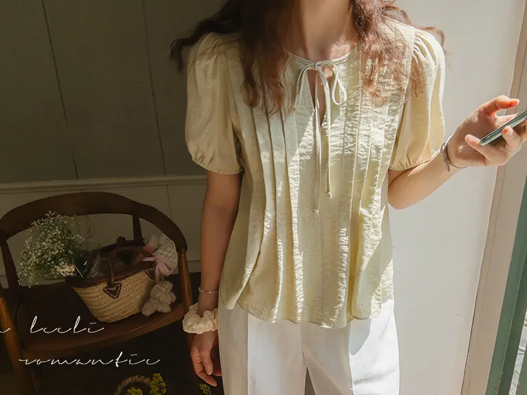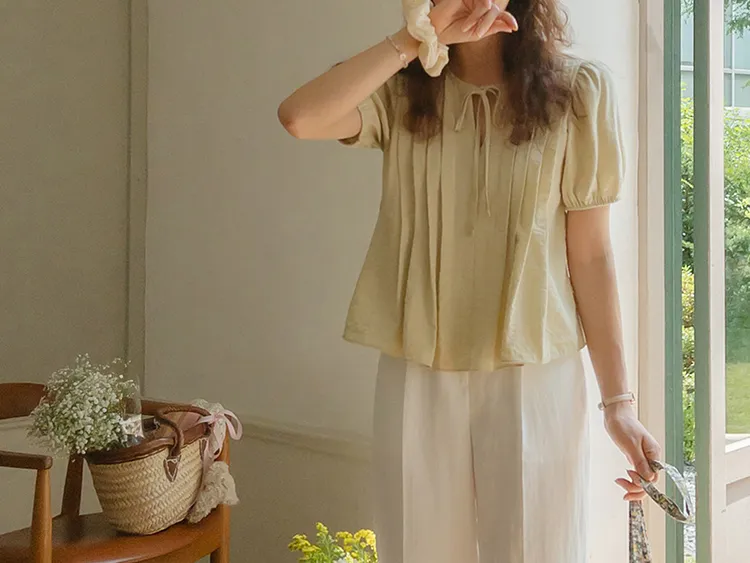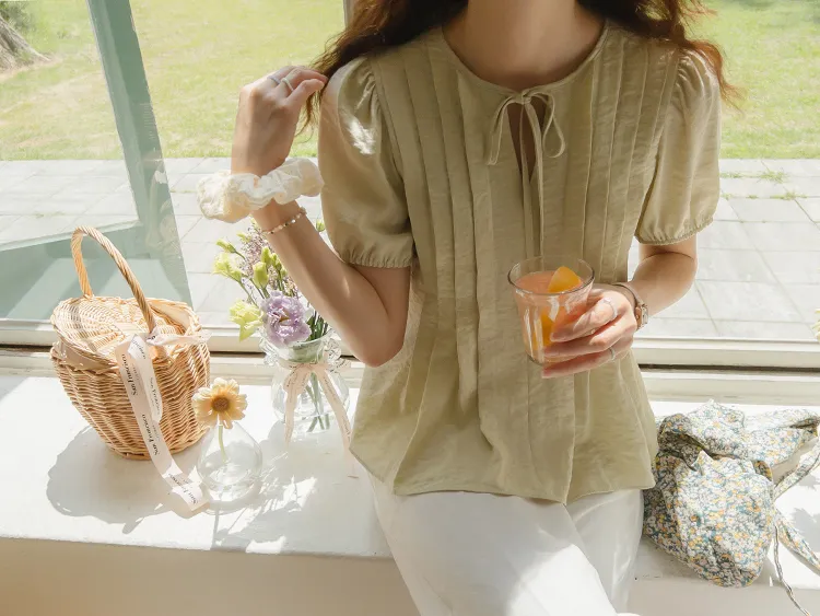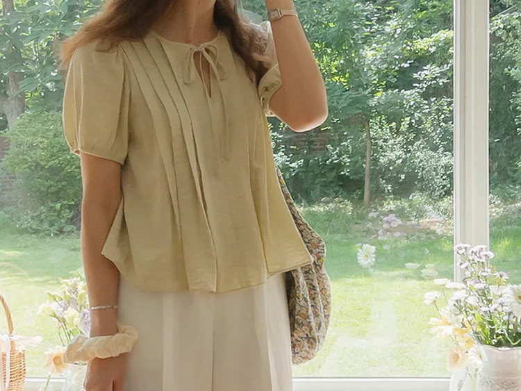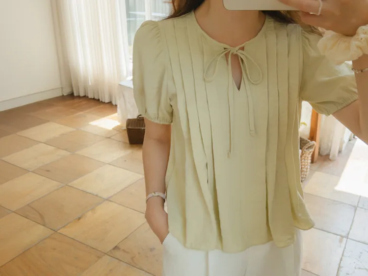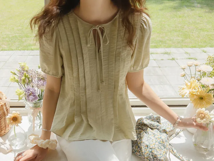[輕快又可愛的針褶上衣♡][穿著舒適][針褶&綁帶細節要點!