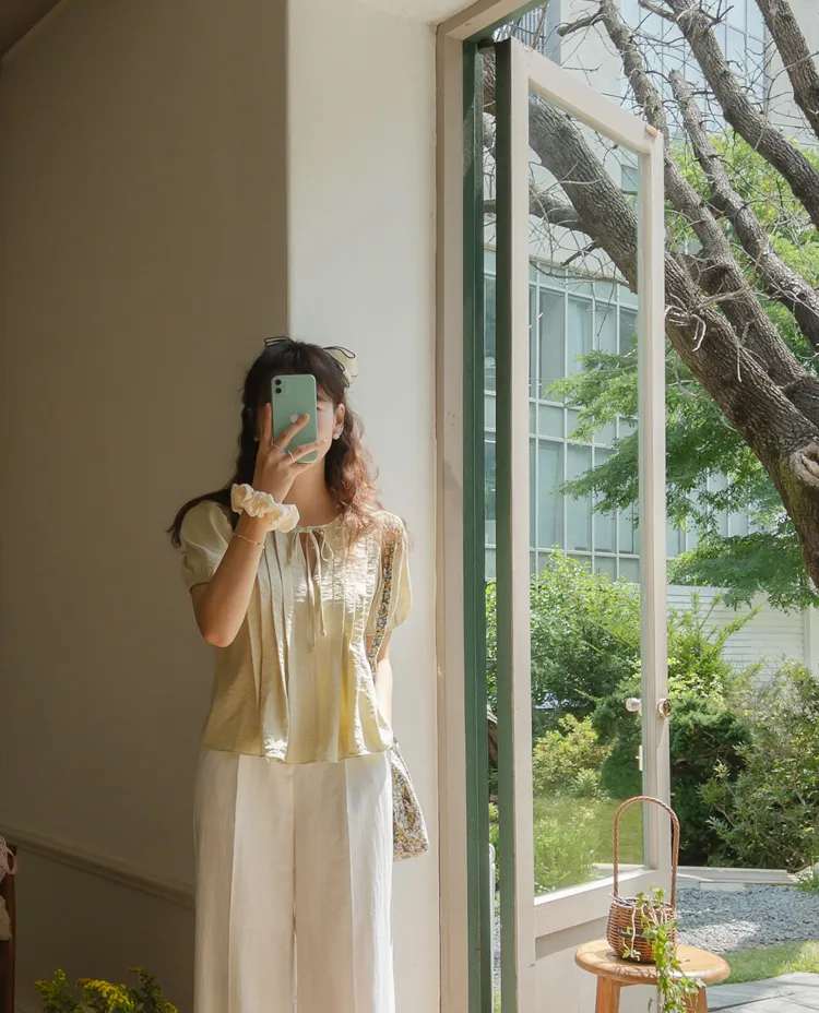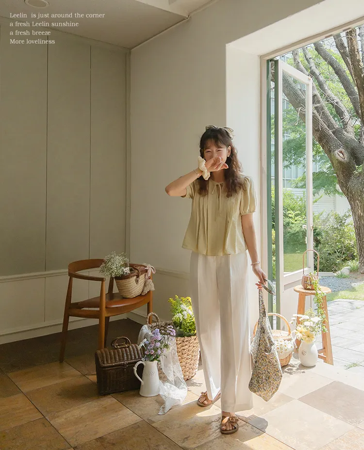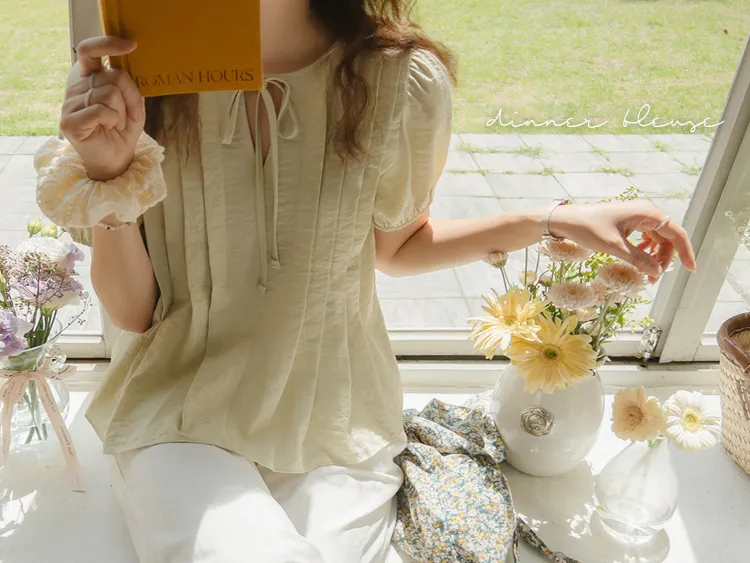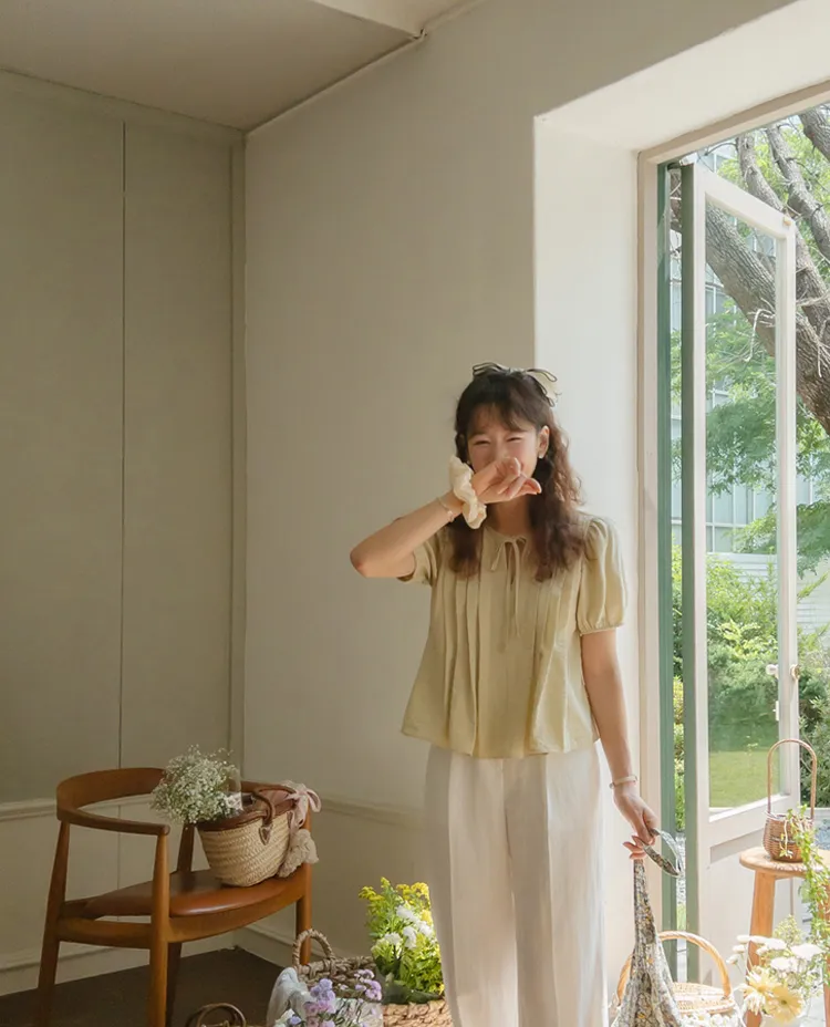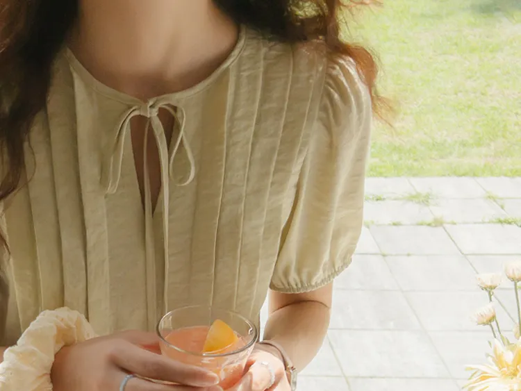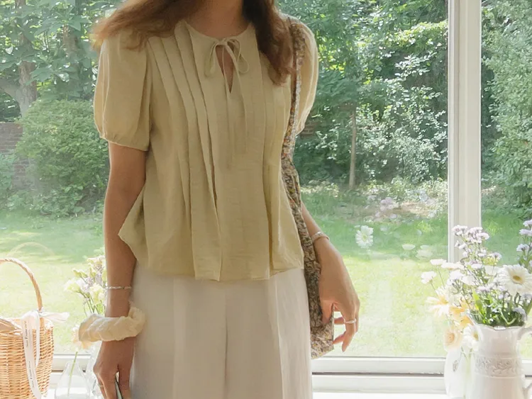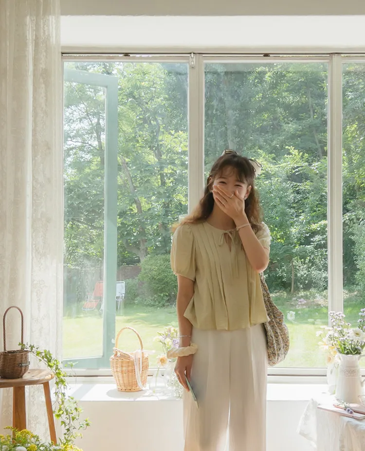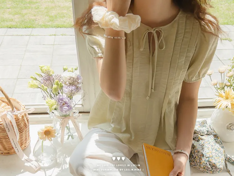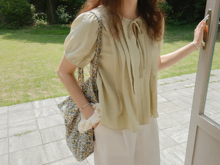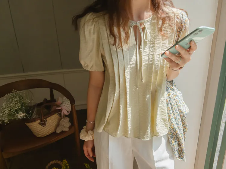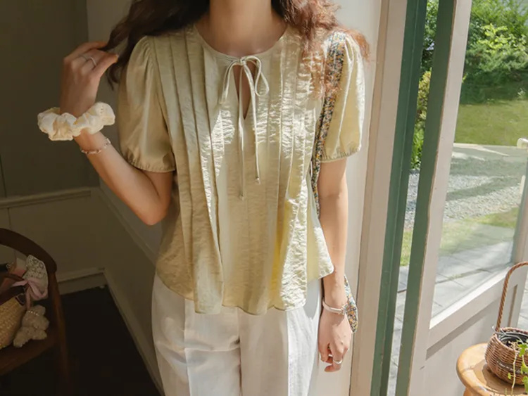 [輕快又可愛的針褶上衣♡][穿著舒適][針褶&綁帶細節要點!
