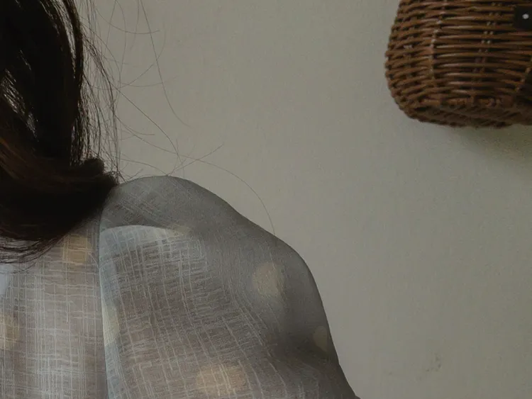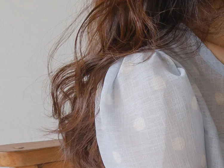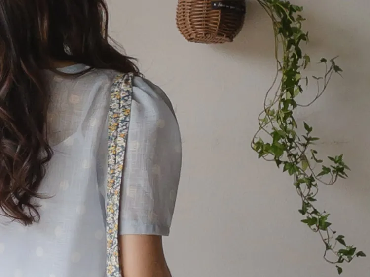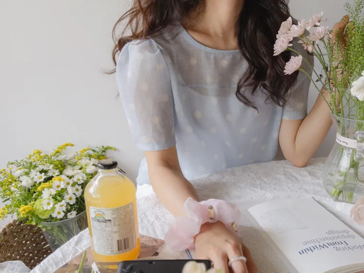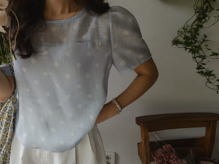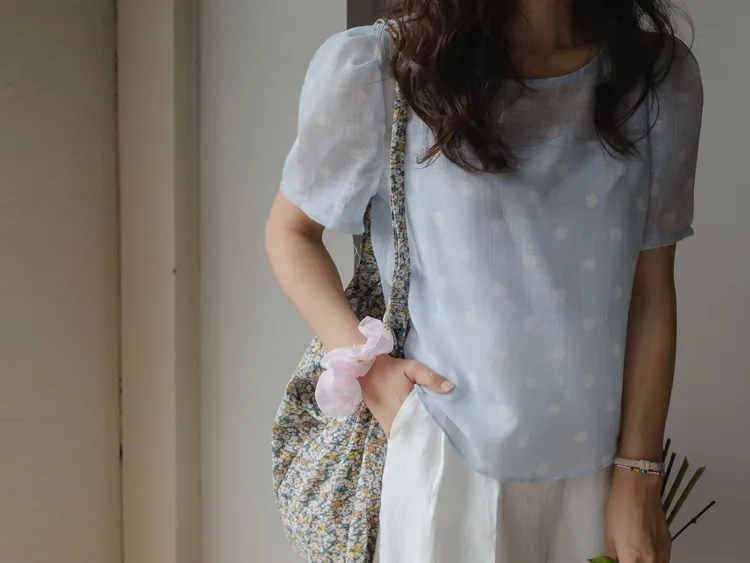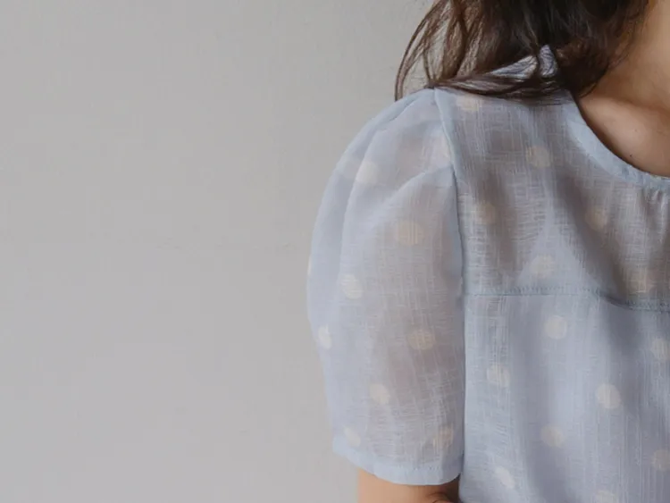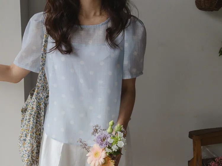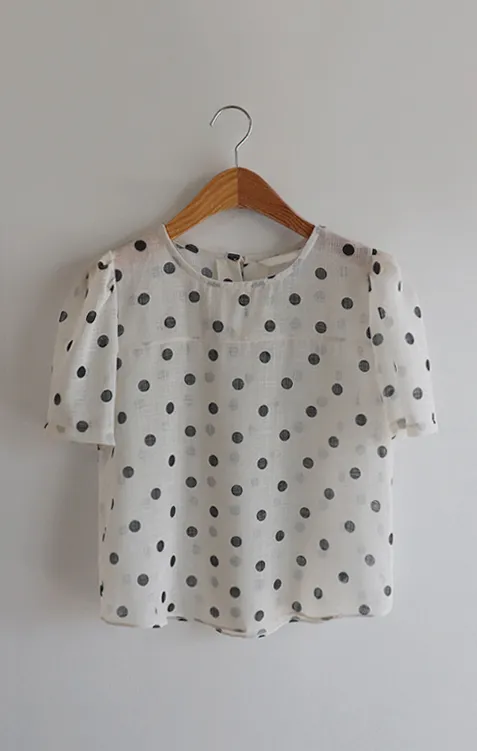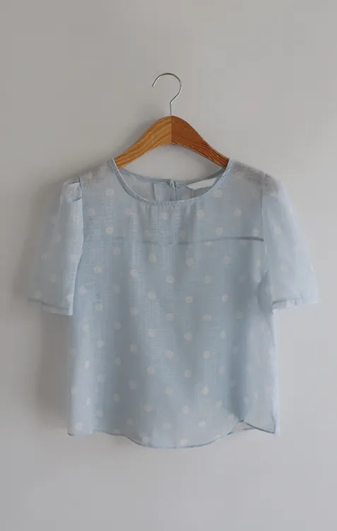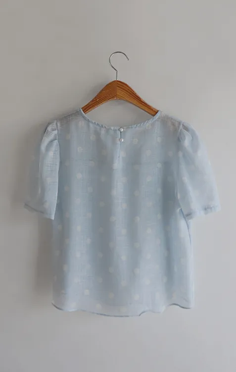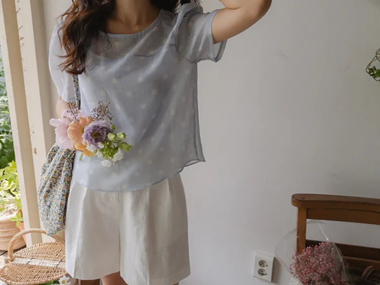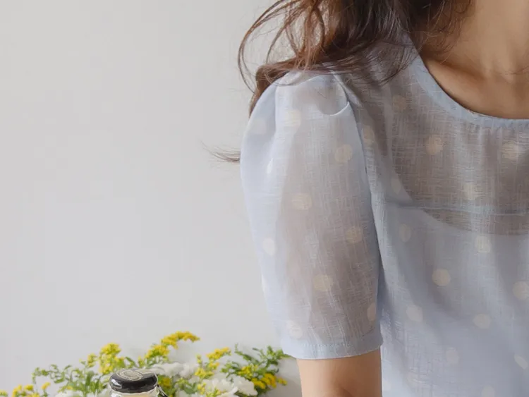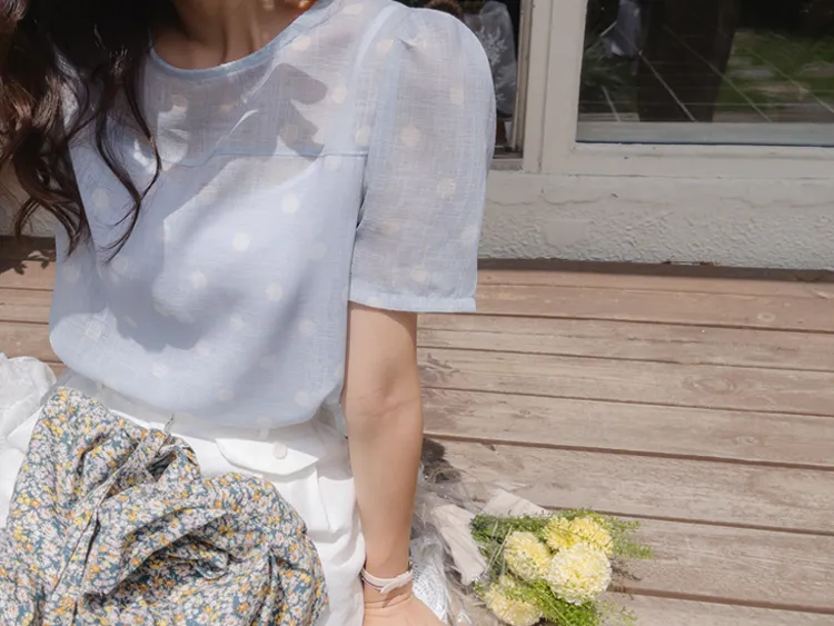 輕盈薄款圓點肩線剪裁透膚上衣