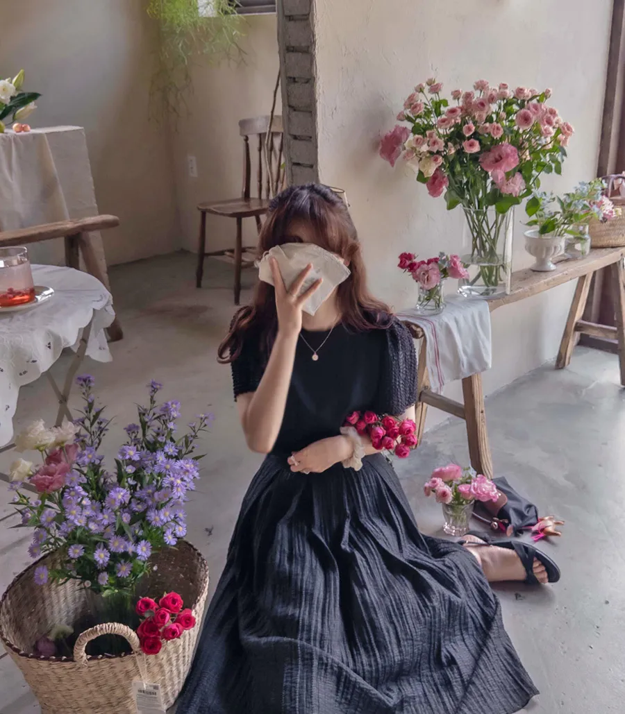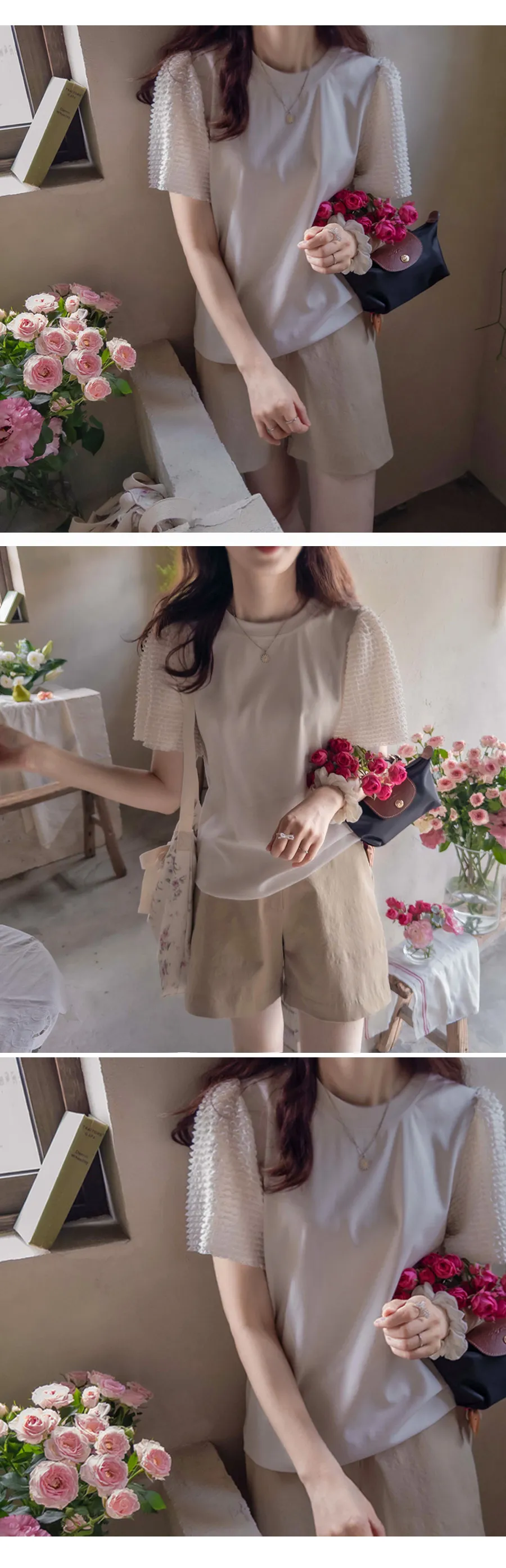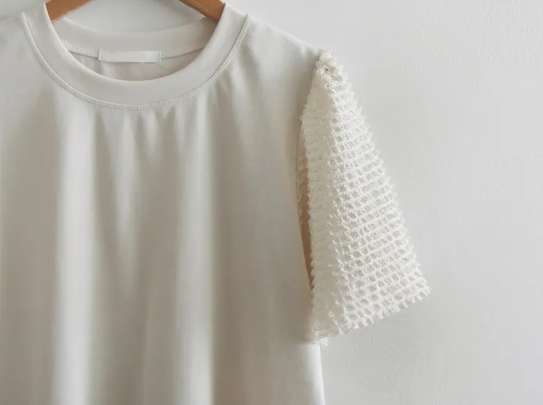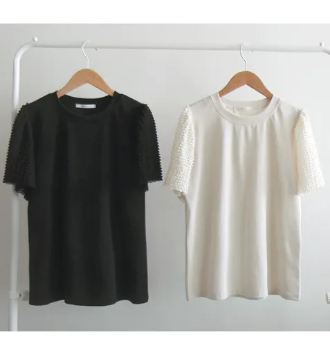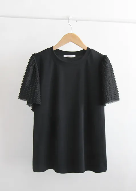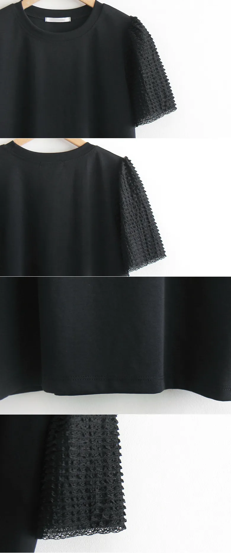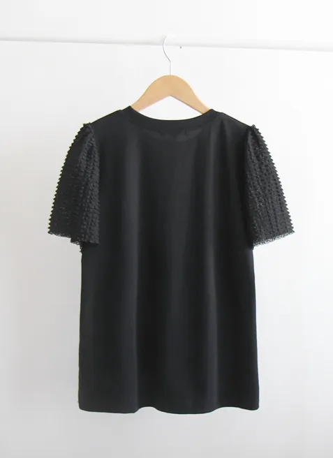 【10%天絲,5%氨綸,彈性布料】【袖子有可愛的設計,立體蕾絲】【袖子的蕾絲部分也是有彈性的】【肩部有微妙剪裁】