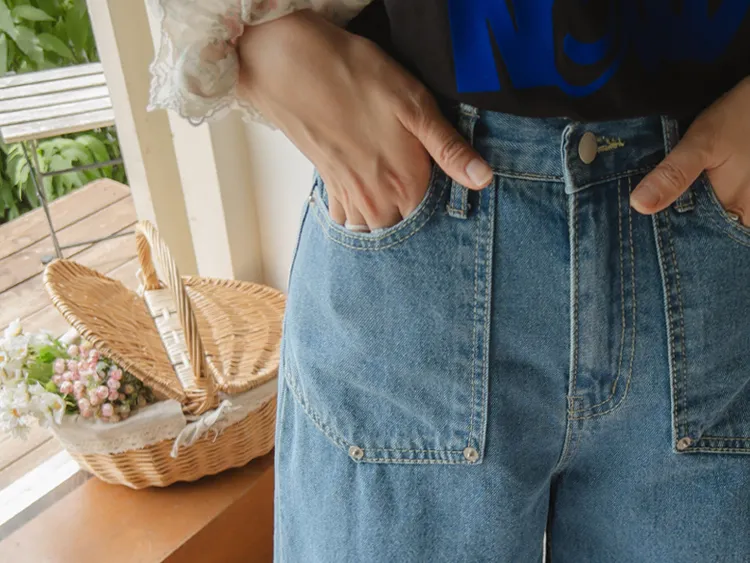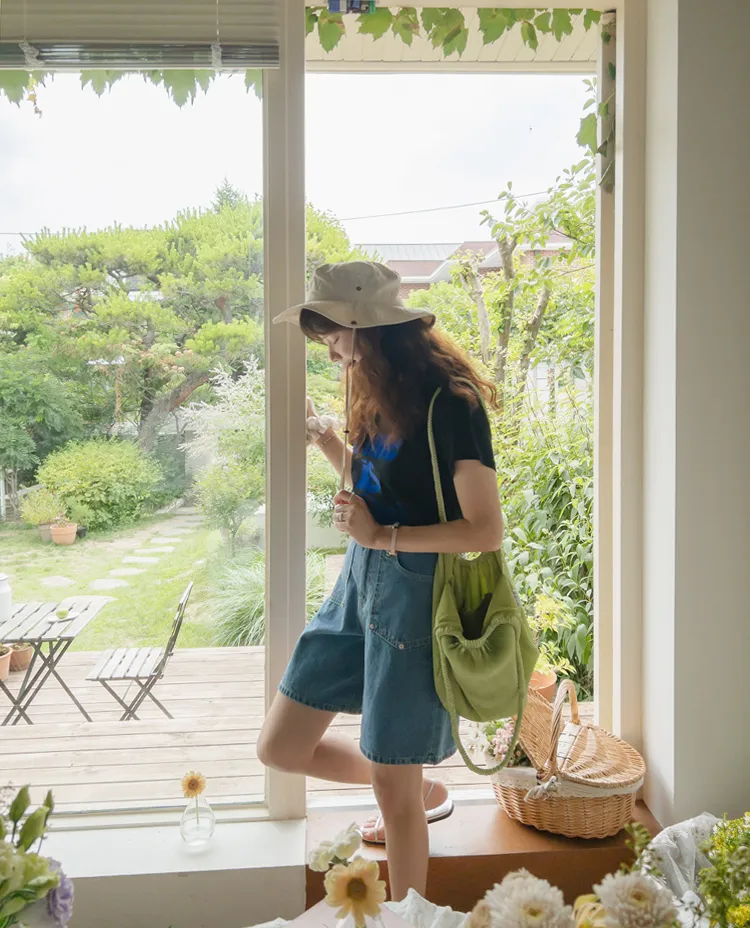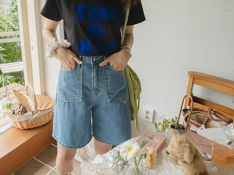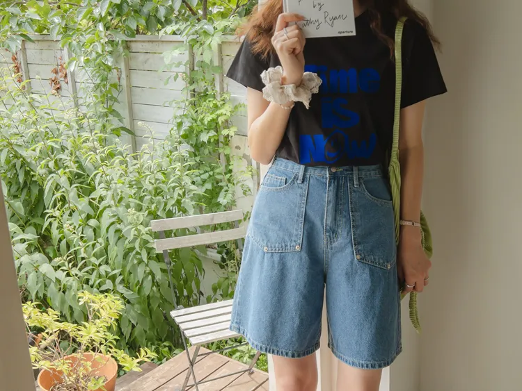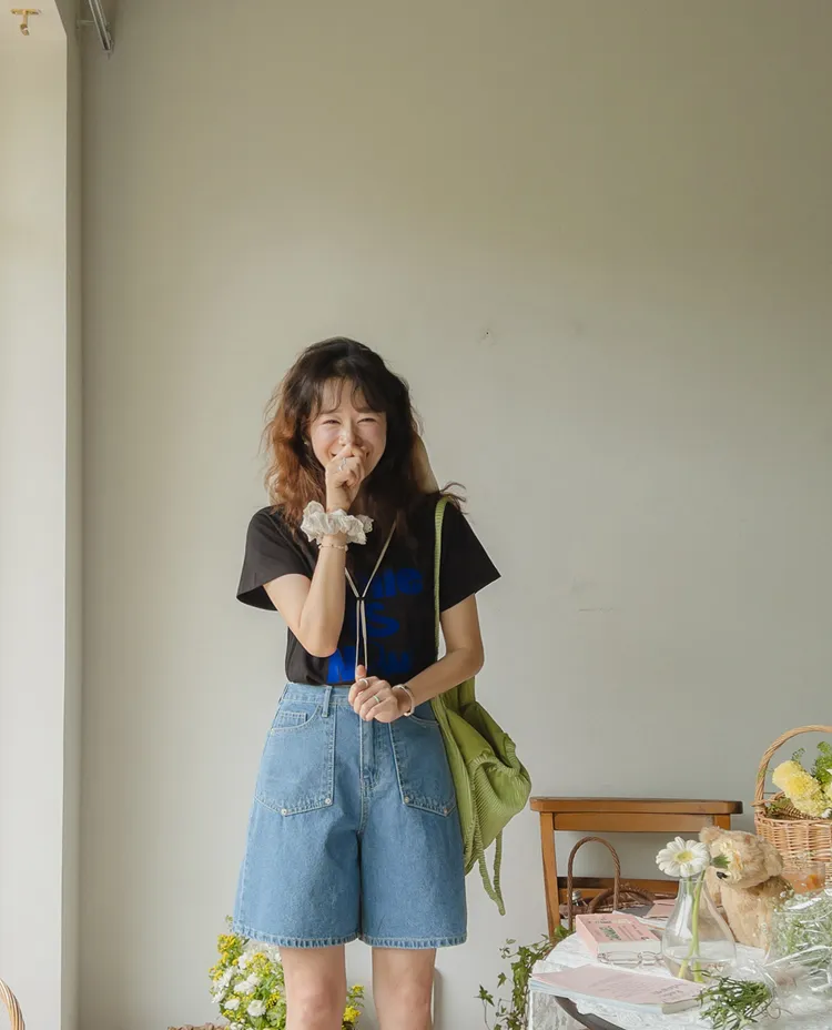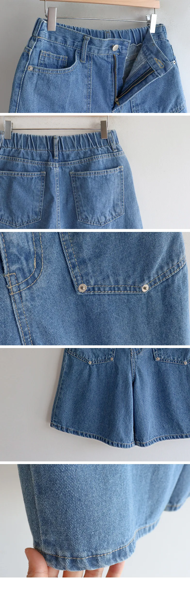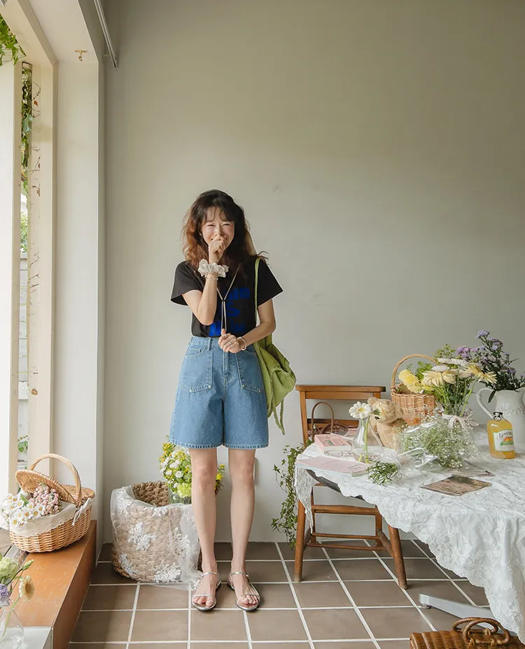 【有吸引力且獨特的口袋點! 牛仔短褲♥] [能打造感性造型] [半 A 字輪廓可修飾腿部線條] [緊身彈性背帶帶來舒適貼合感]