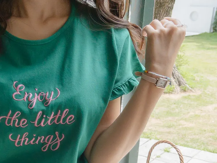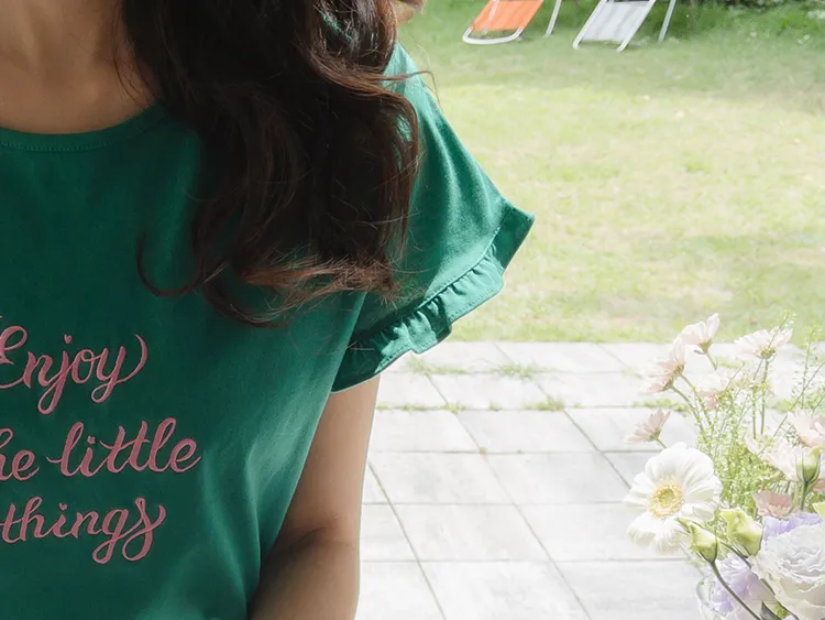 【清新浪漫的心情刺繡上衣♥】【刻字配色刺繡浪漫點! 】【袖尾可愛活潑的荷葉邊細節】【舒適柔軟的觸感】