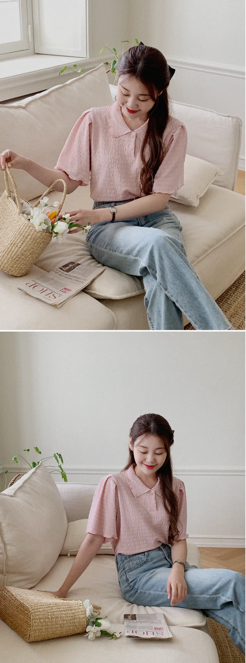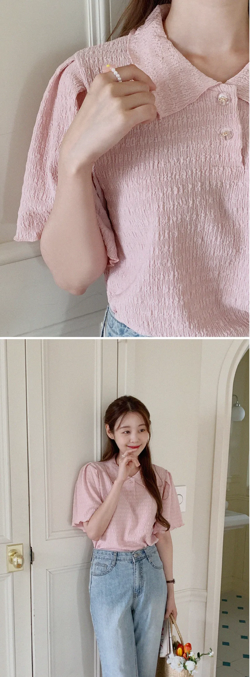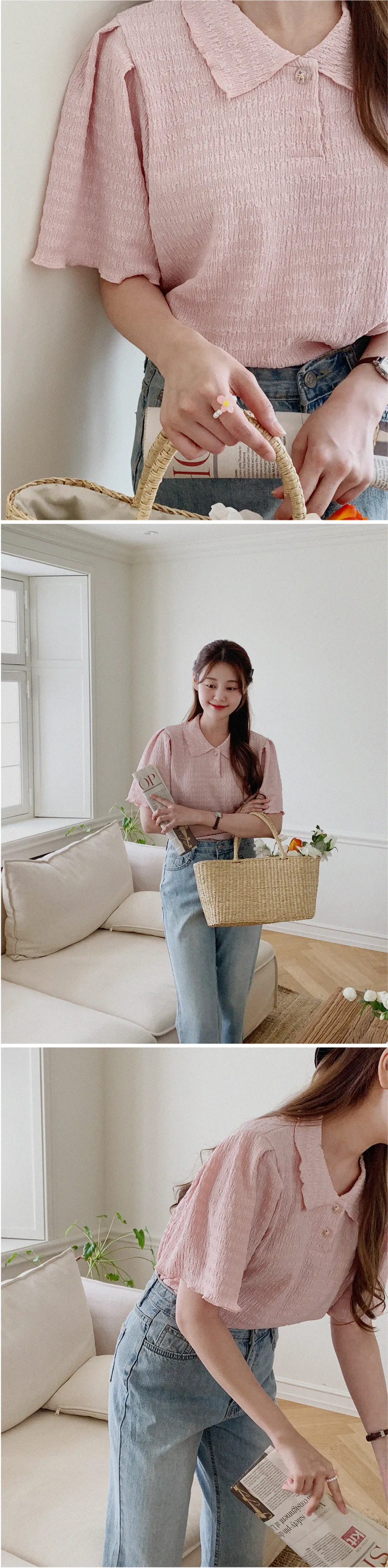 可愛復古蝴蝶結鈕扣有領皺摺彈性上衣