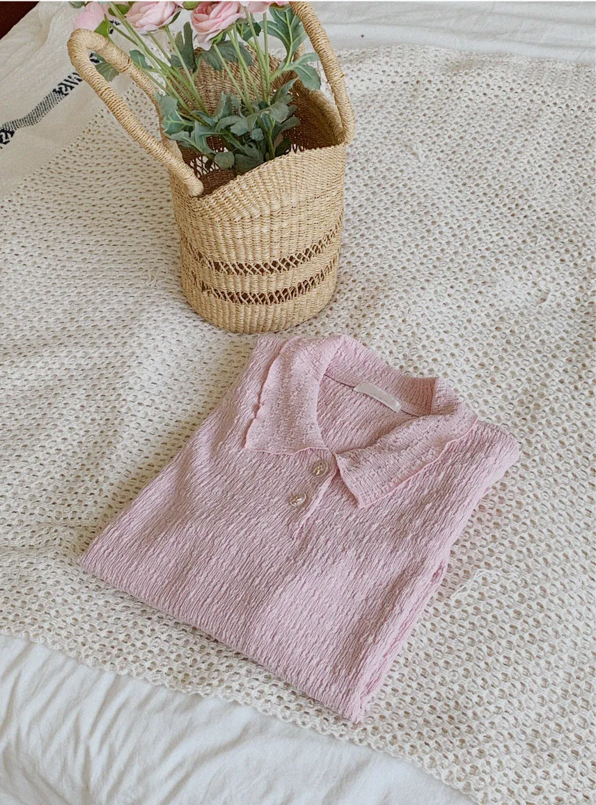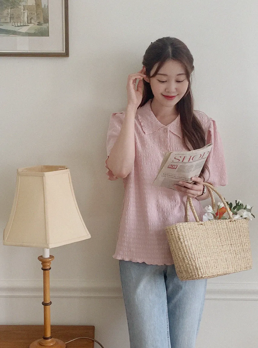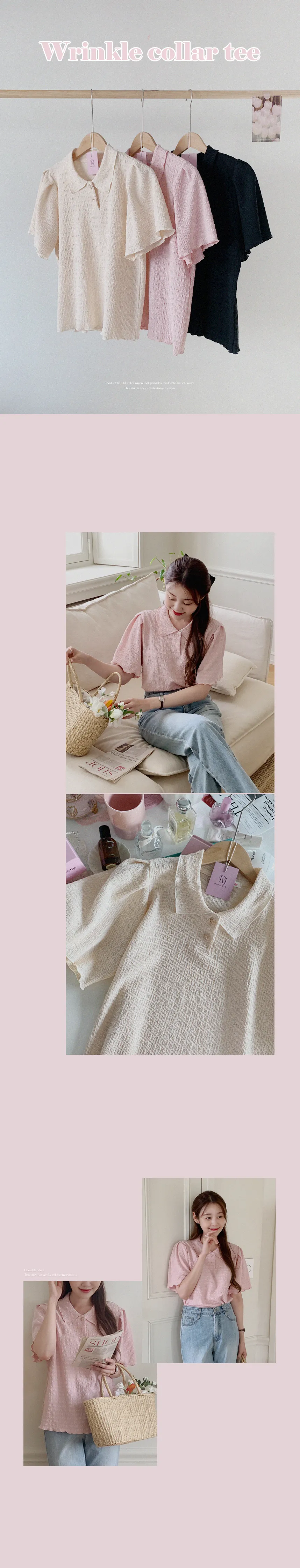 褶皺布料製成的有領上衣,給人一種涼爽的感覺。雖然是有領T卹,但褶皺的布料和閃亮的鈕扣設計賦予它女性化的氛圍,使其成為可以多種穿法的單品。可以簡單地搭配牛仔褲,也可以搭配裙子打造浪漫的造型。彈性涼爽的布料,穿著非常舒適,寬鬆的袖子很好地遮蓋了身體。這是一款非常有吸引力的上衣,將有領的古典主義與褶皺布料和細節的浪漫主義融為一體。