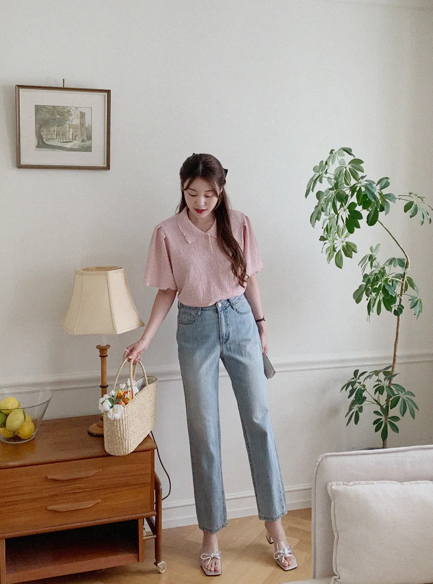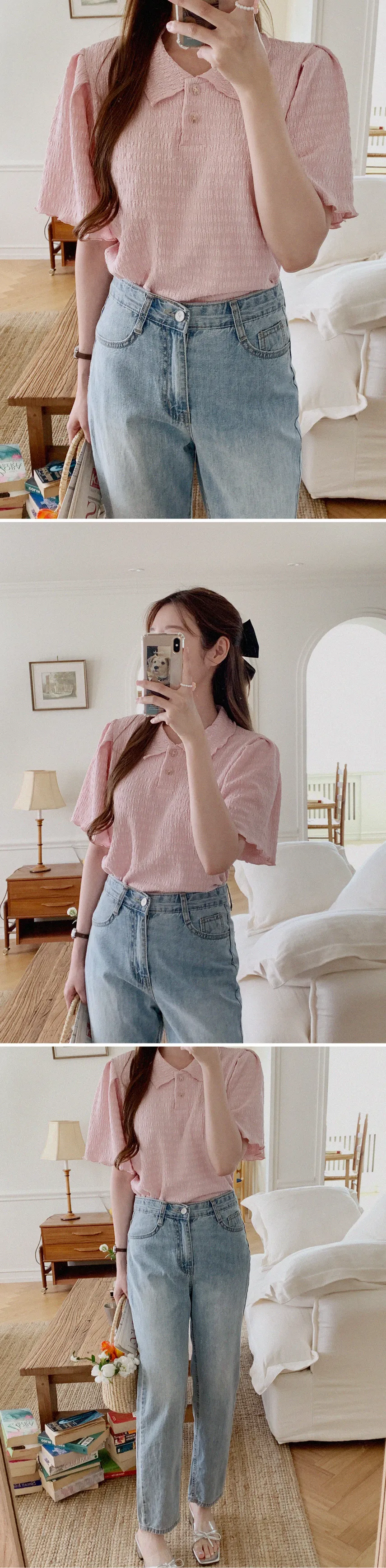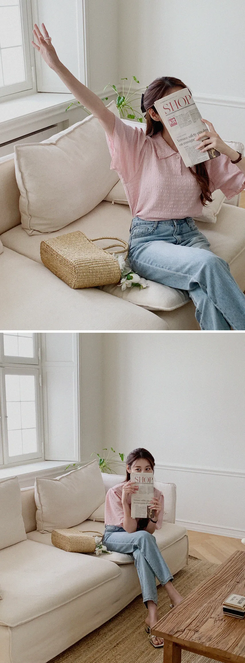 褶皺布料製成的有領上衣,給人一種涼爽的感覺。雖然是有領T卹,但褶皺的布料和閃亮的鈕扣設計賦予它女性化的氛圍,使其成為可以多種穿法的單品。可以簡單地搭配牛仔褲,也可以搭配裙子打造浪漫的造型。彈性涼爽的布料,穿著非常舒適,寬鬆的袖子很好地遮蓋了身體。這是一款非常有吸引力的上衣,將有領的古典主義與褶皺布料和細節的浪漫主義融為一體。