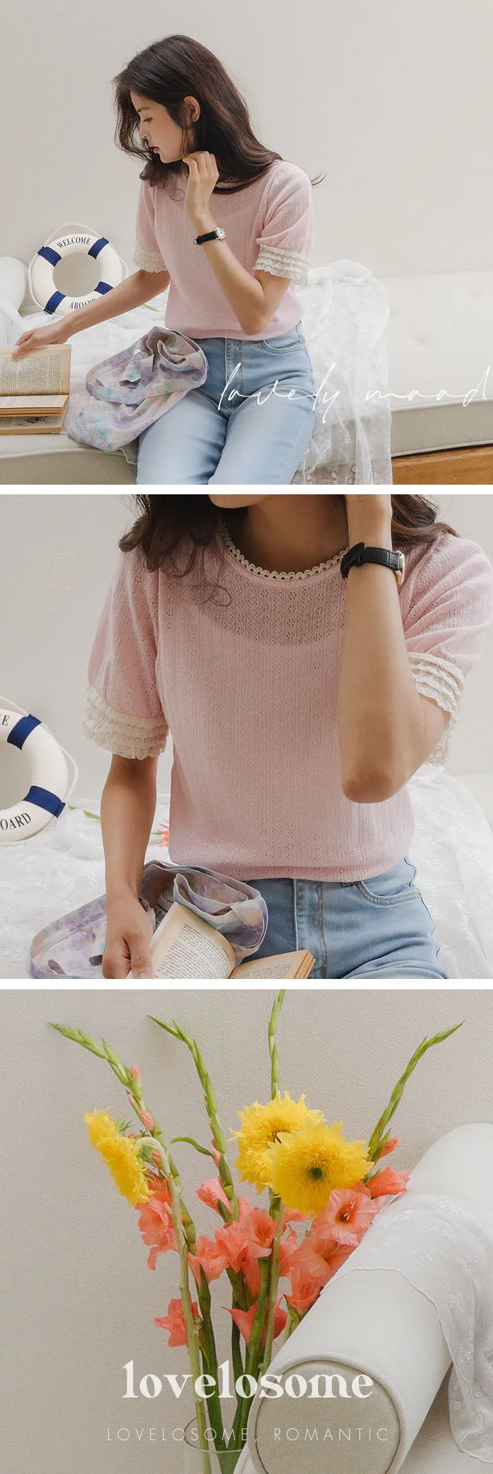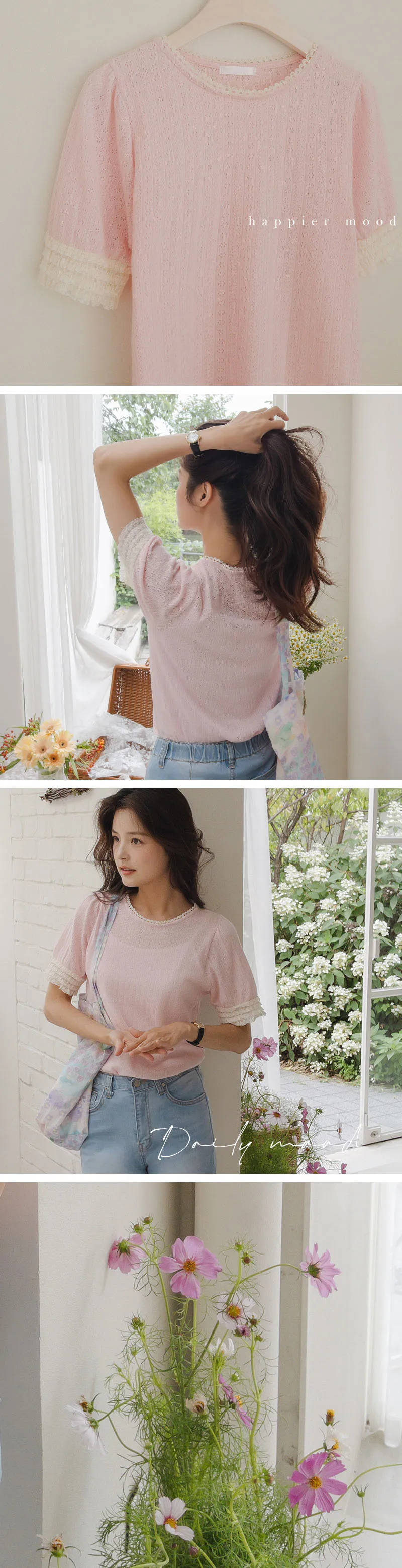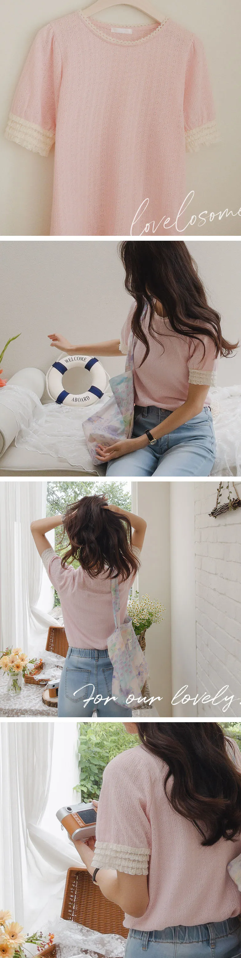 圓領和袖子上有蕾絲,營造出更可愛的氛圍。