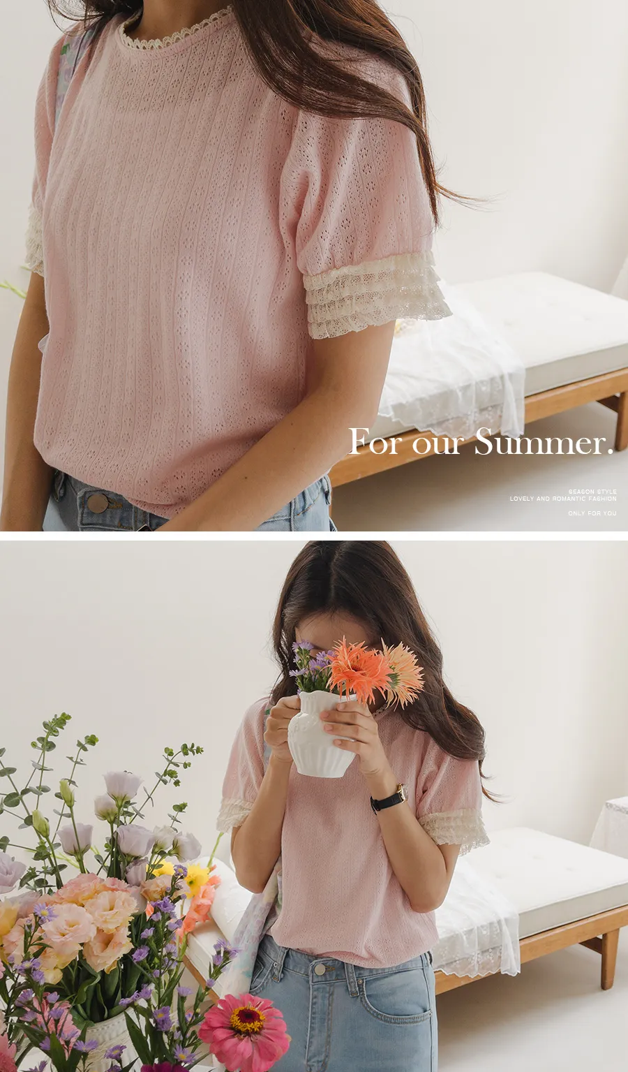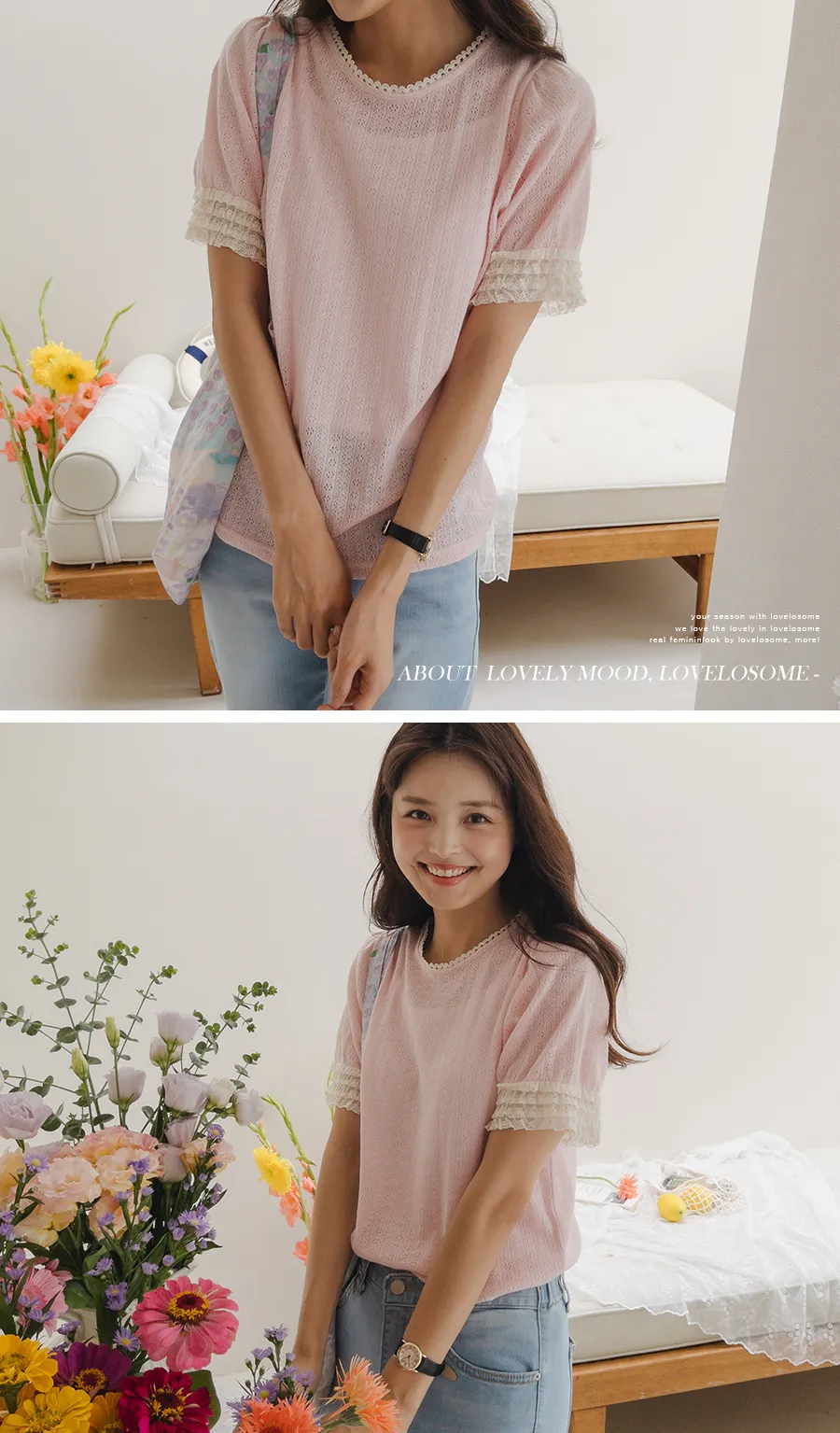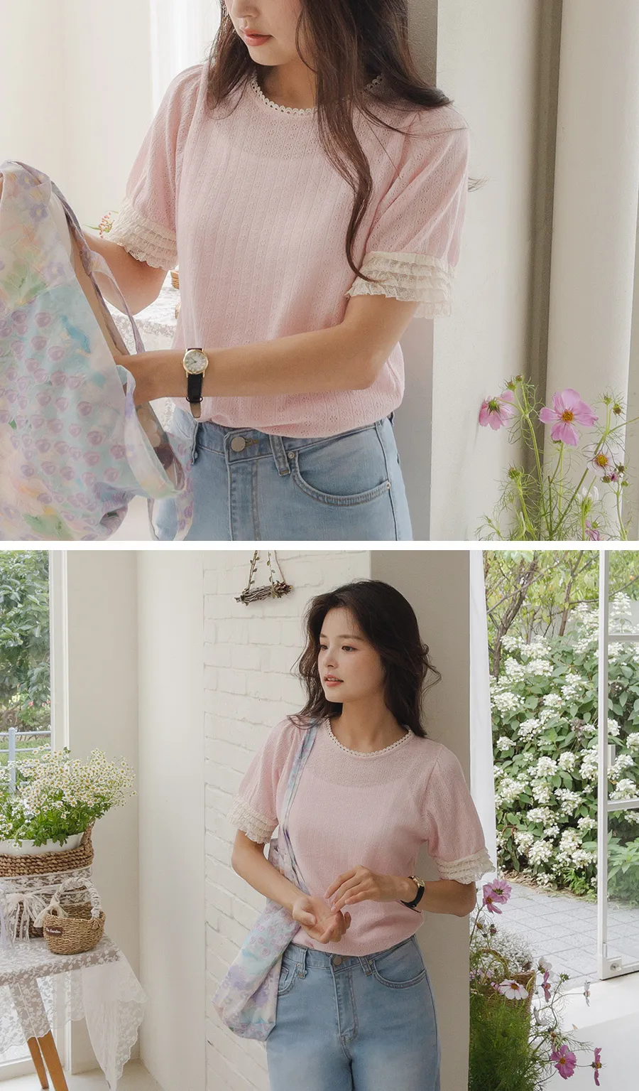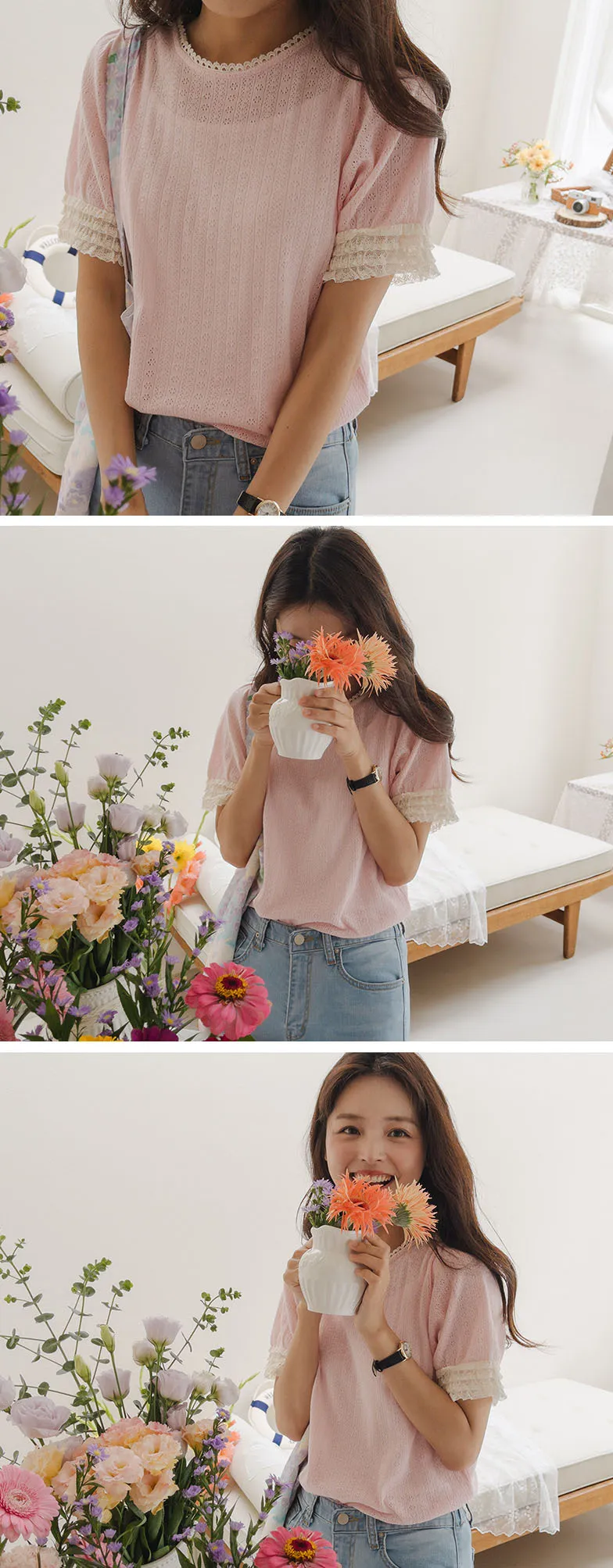 圓領和袖子上有蕾絲,營造出更可愛的氛圍。