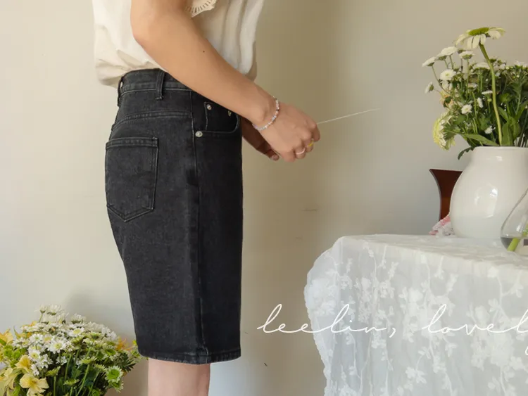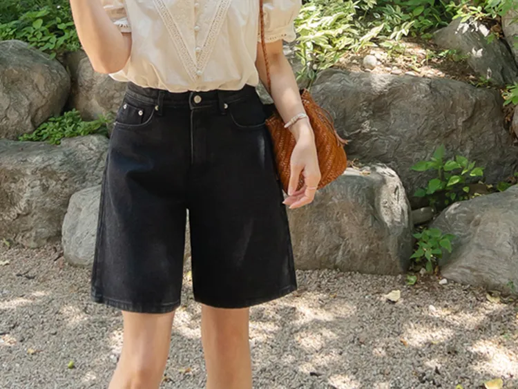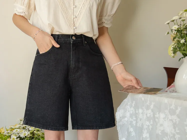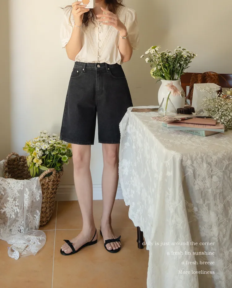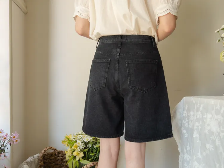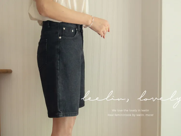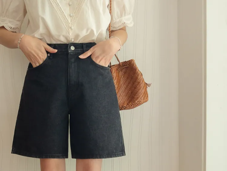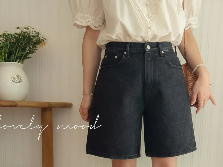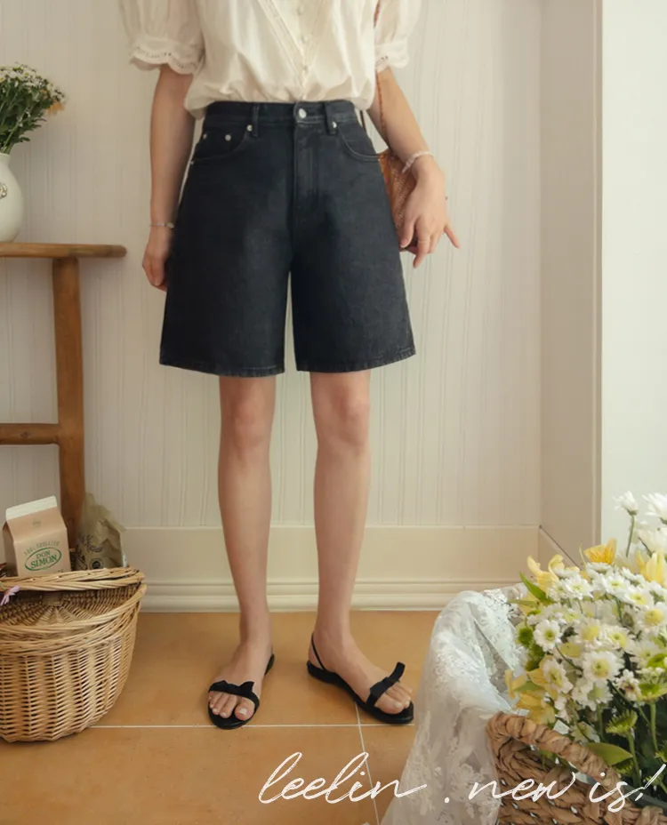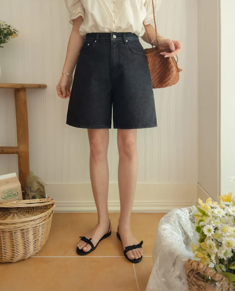 【簡單日常的心情!黑藍色牛仔短褲♥] [穩定的長度] [可愛的A字,活潑的心情] [可用作正裝和休閒裝]