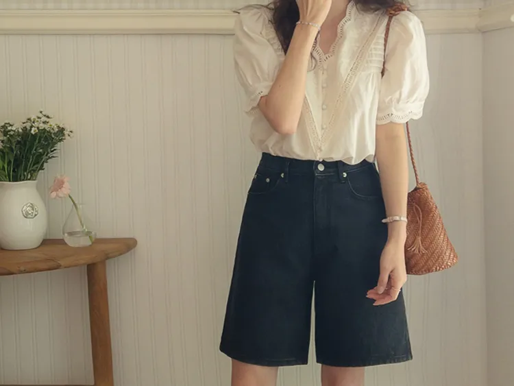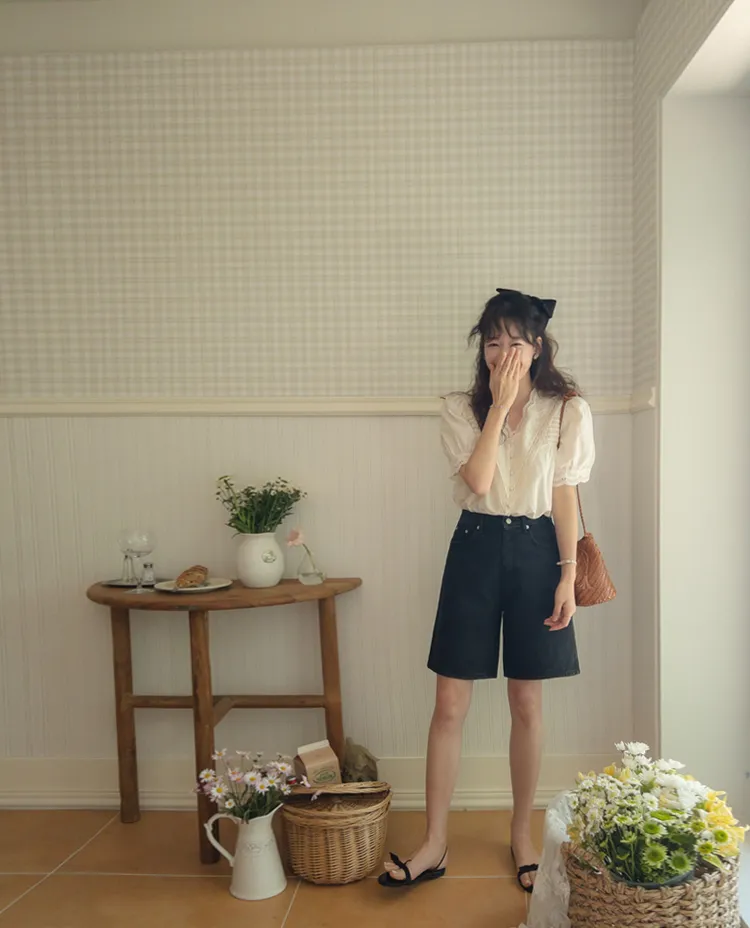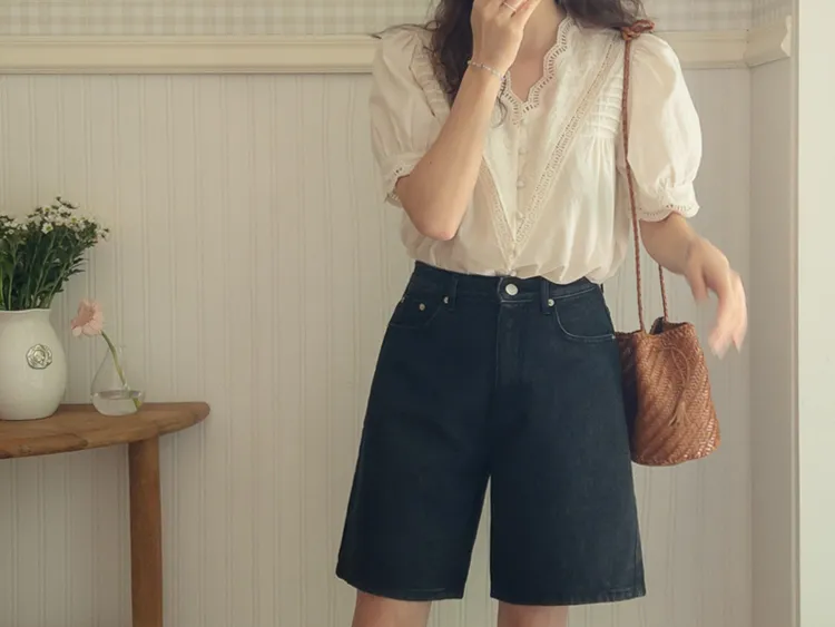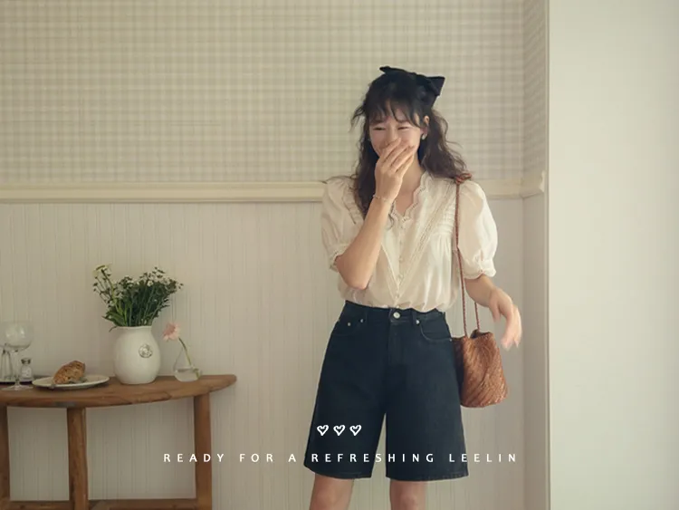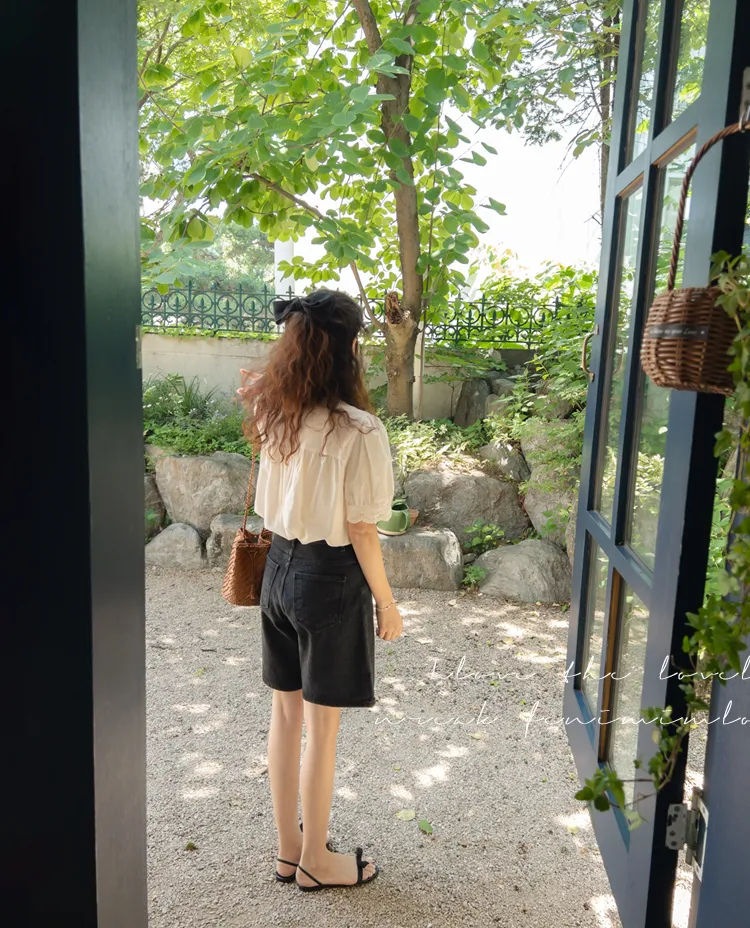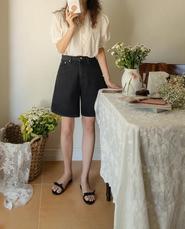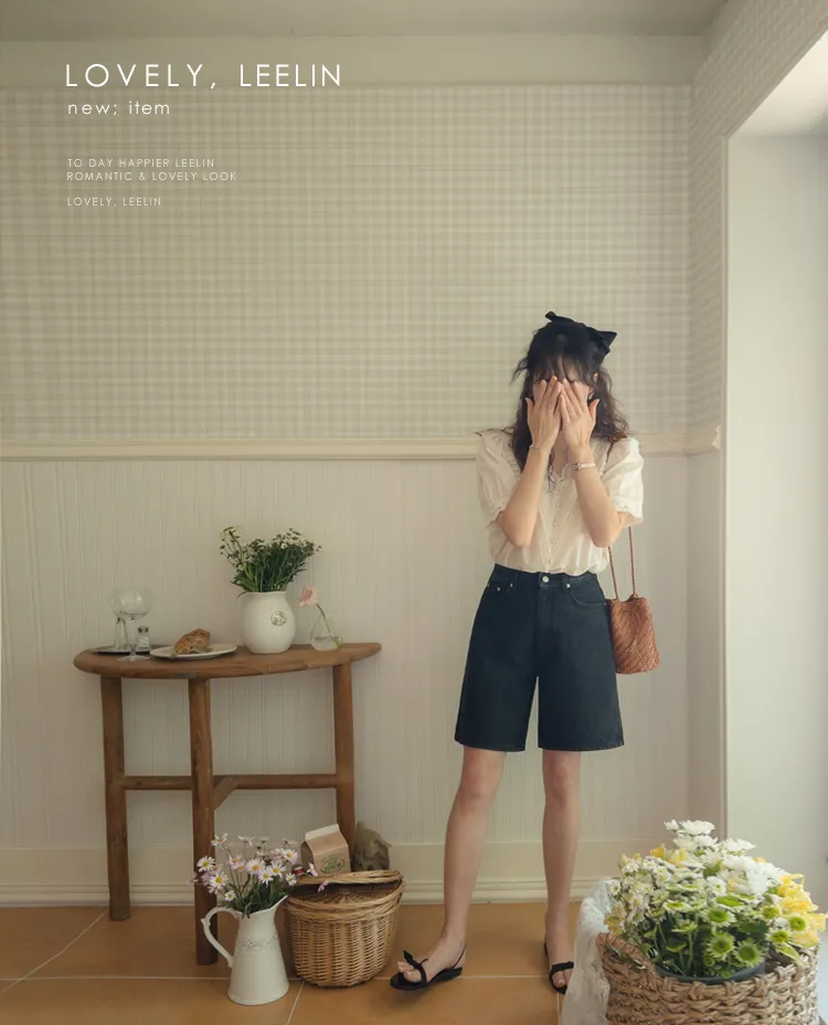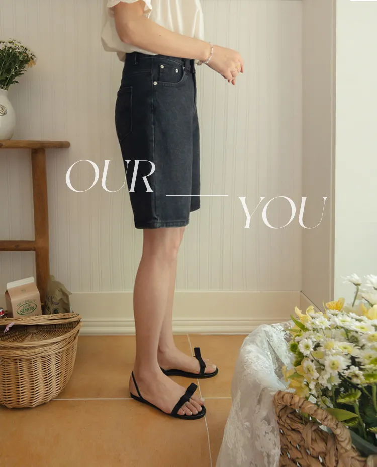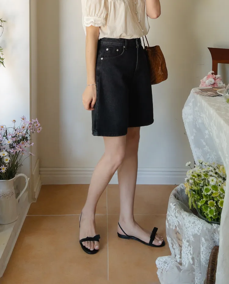 【簡單日常的心情!黑藍色牛仔短褲♥] [穩定的長度] [可愛的A字,活潑的心情] [可用作正裝和休閒裝]