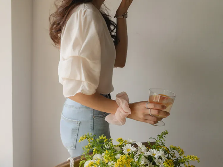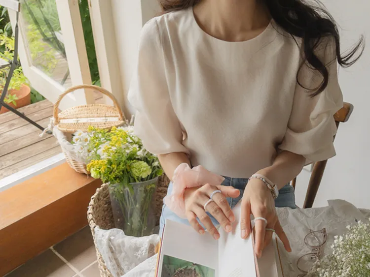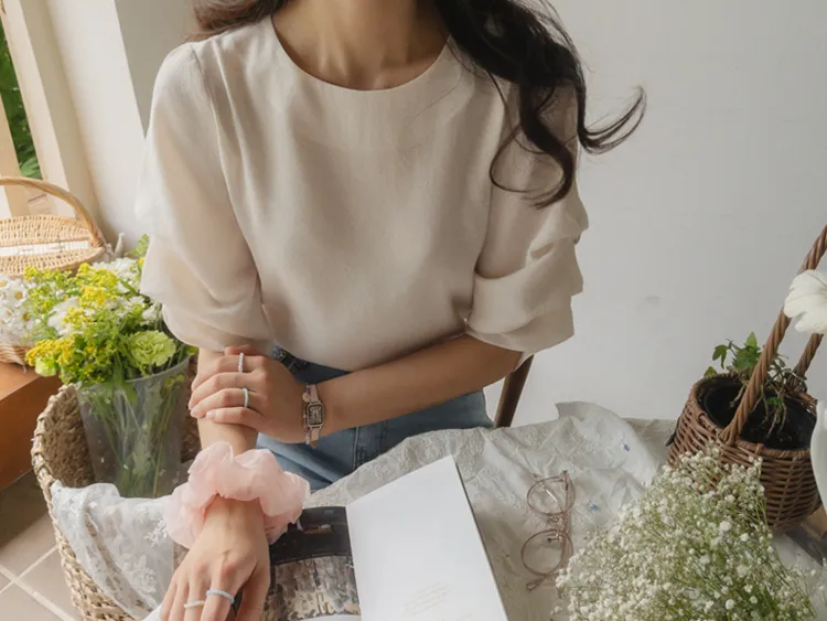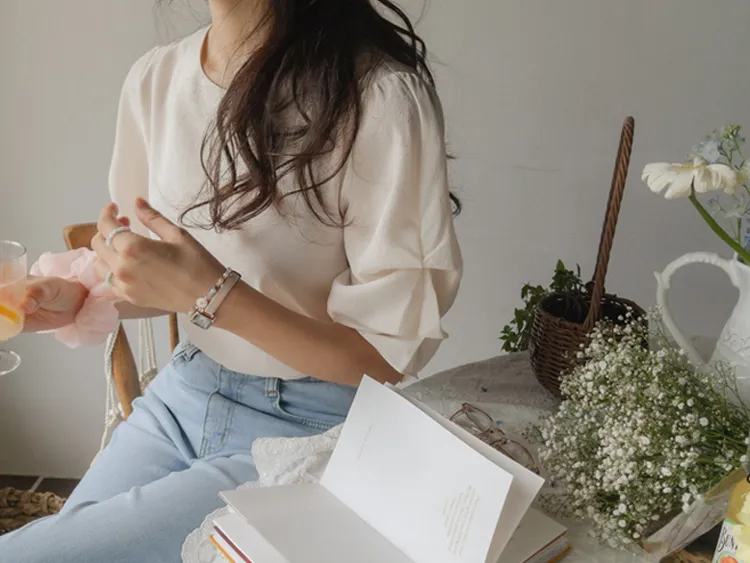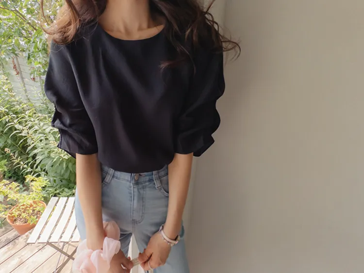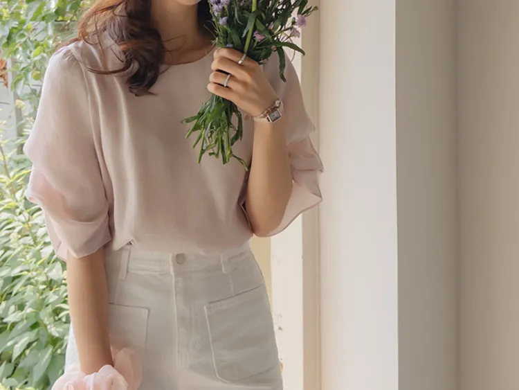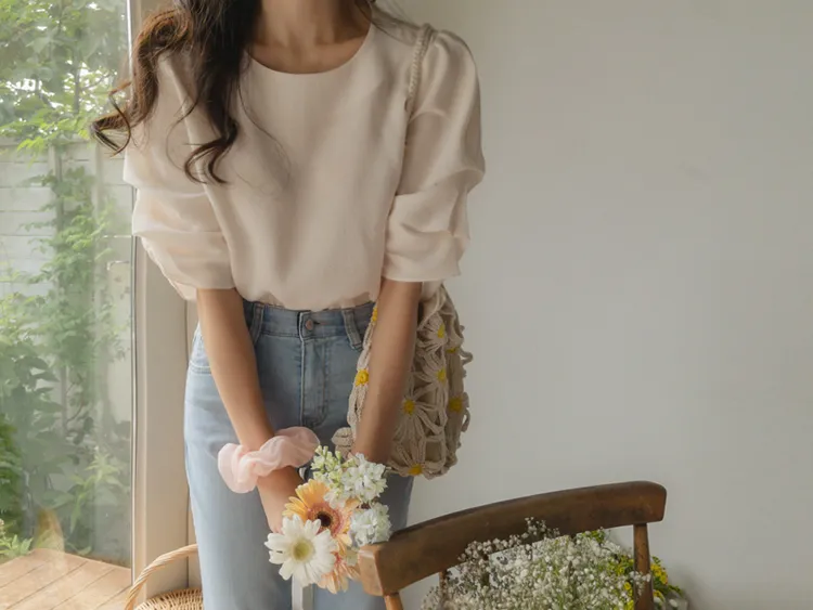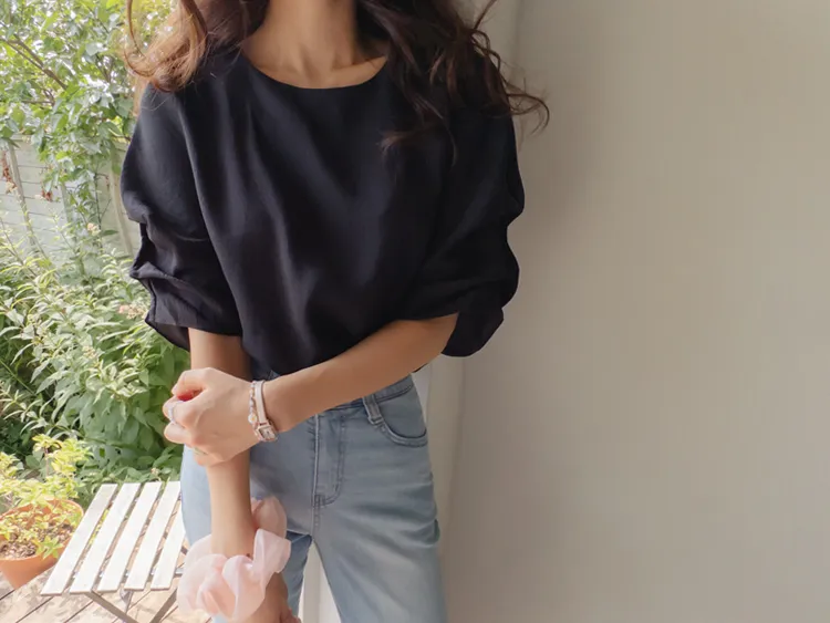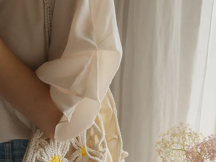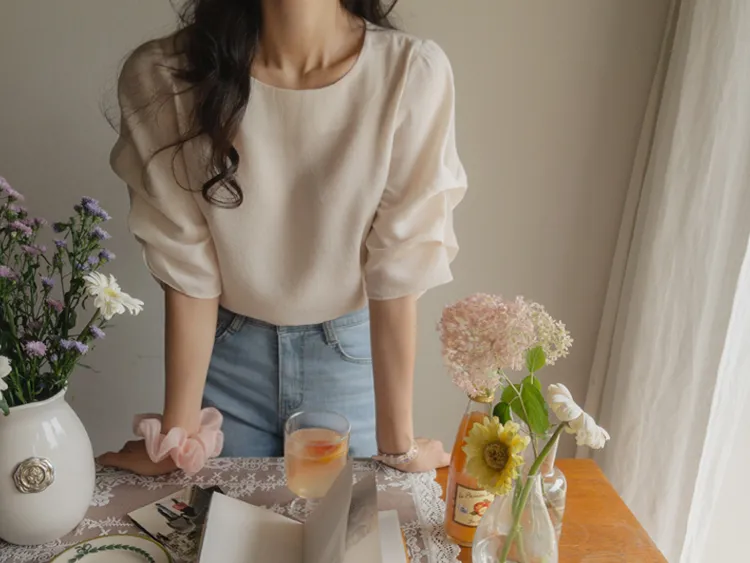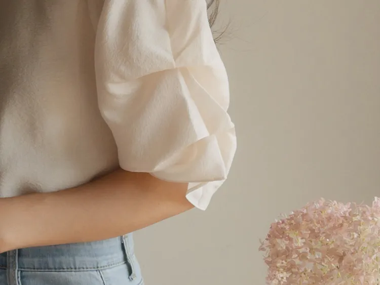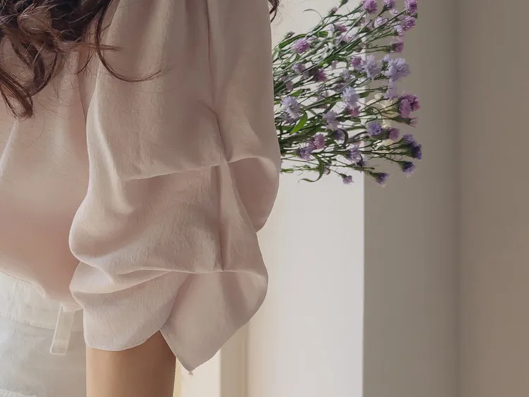 優雅浪漫多針褶設計袖柔軟上衣