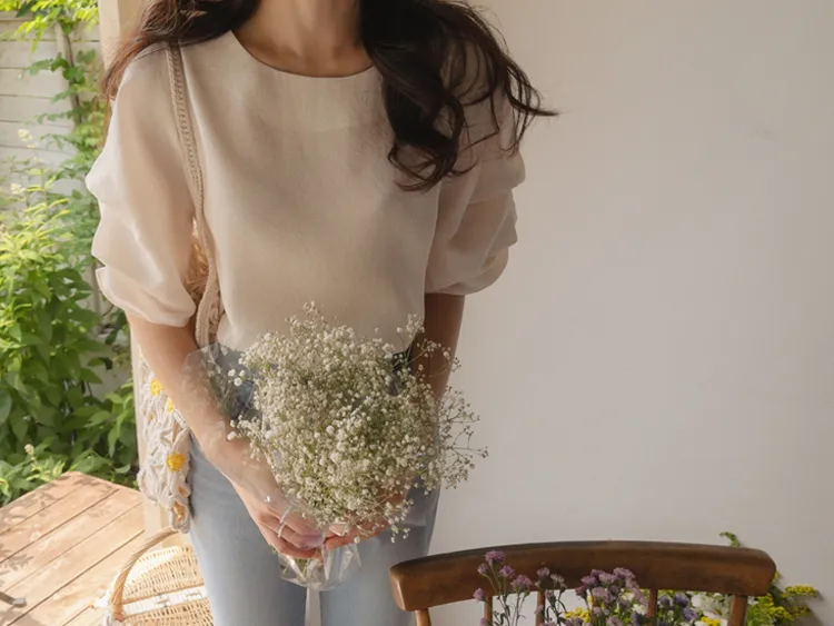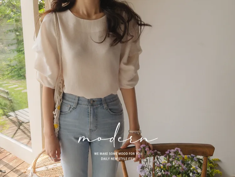 燈籠袖上衣♥】【柔軟~彈性輕款布料】【莫代爾81%,柔軟舒適穿著】【微剪長度,適合各種造型】