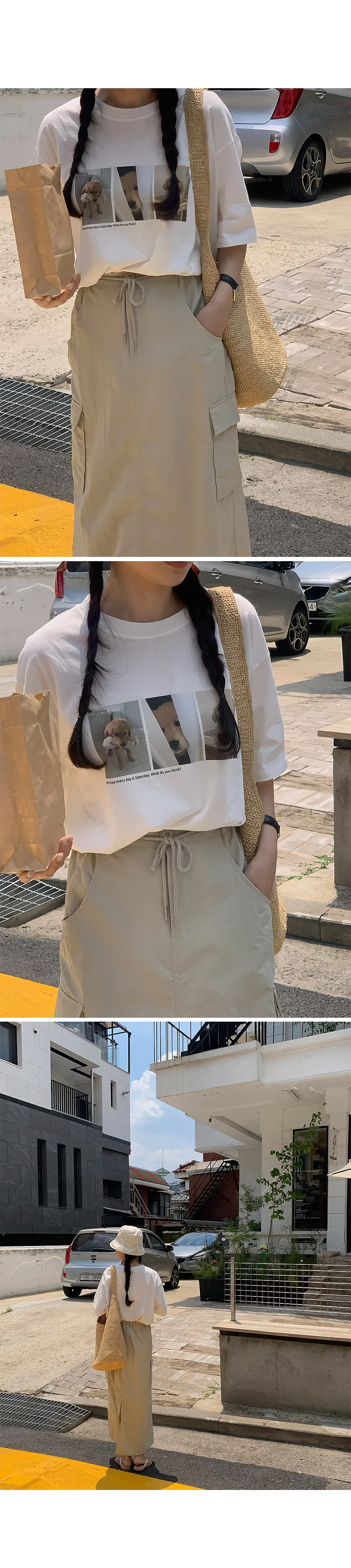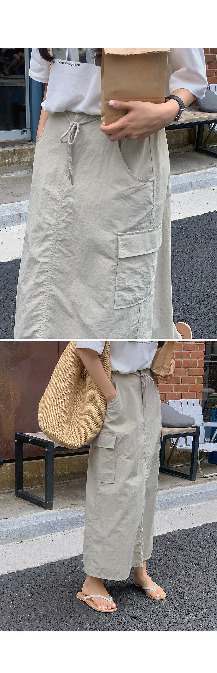 舒適工裝口袋尼龍中長裙