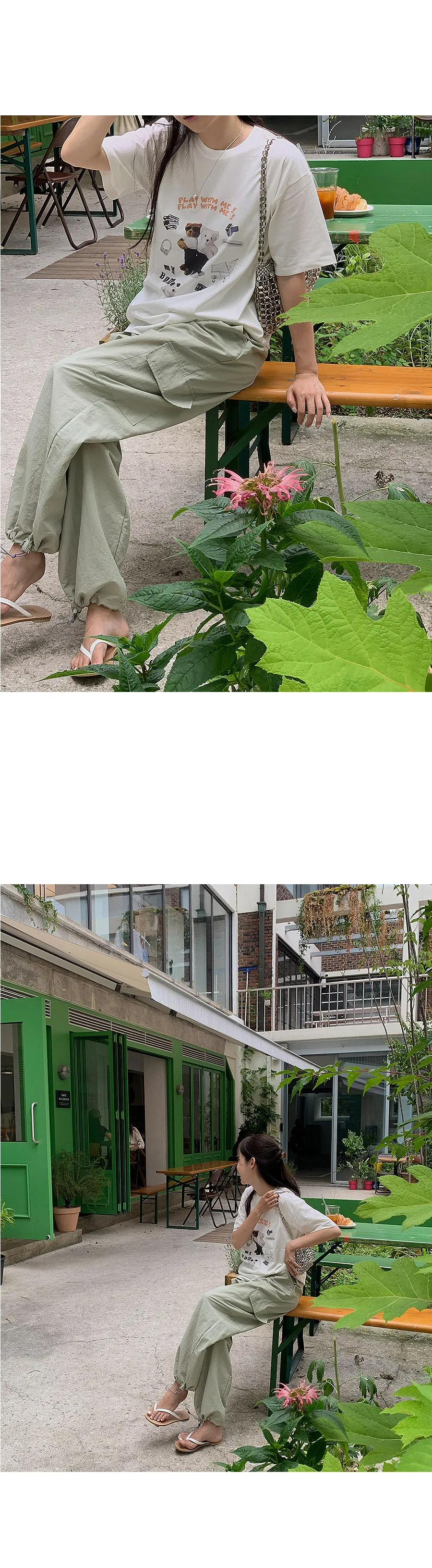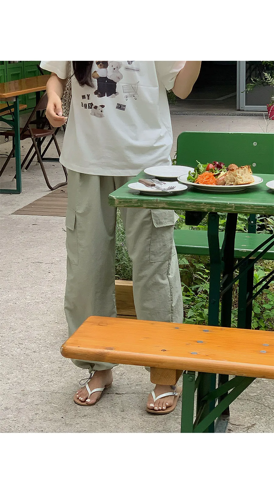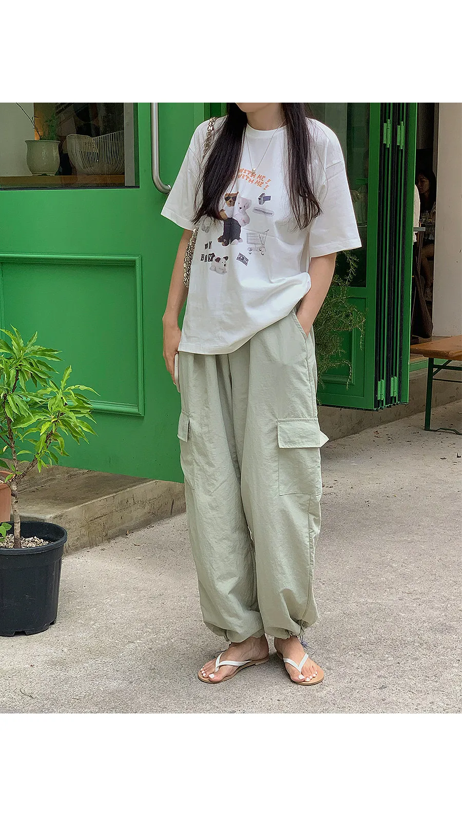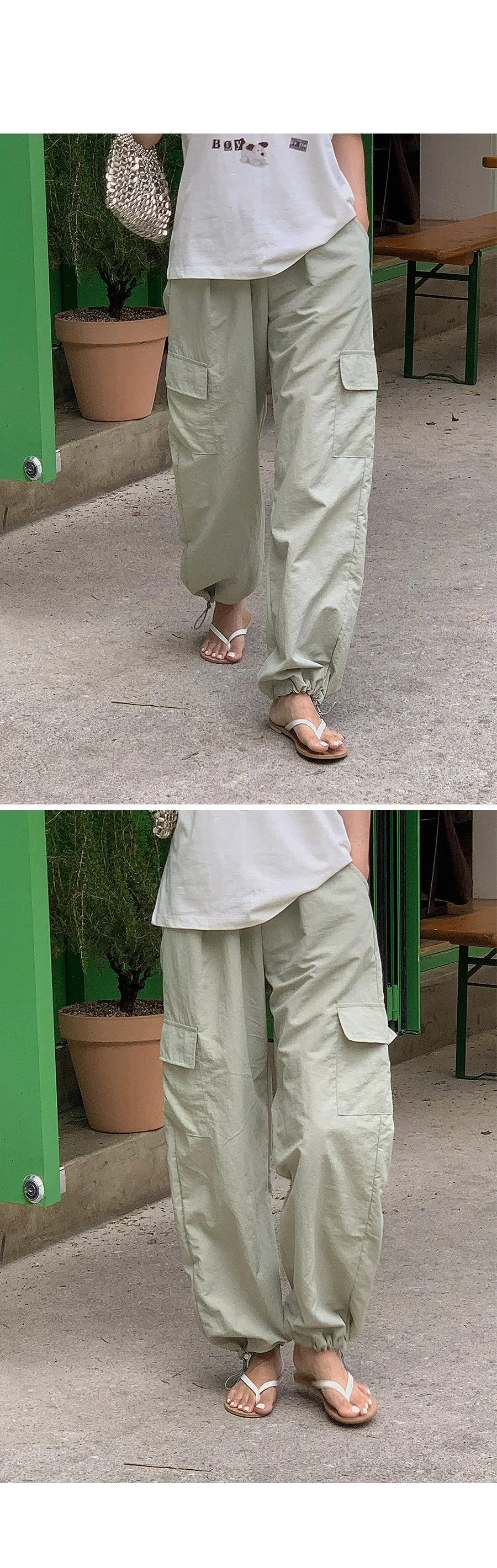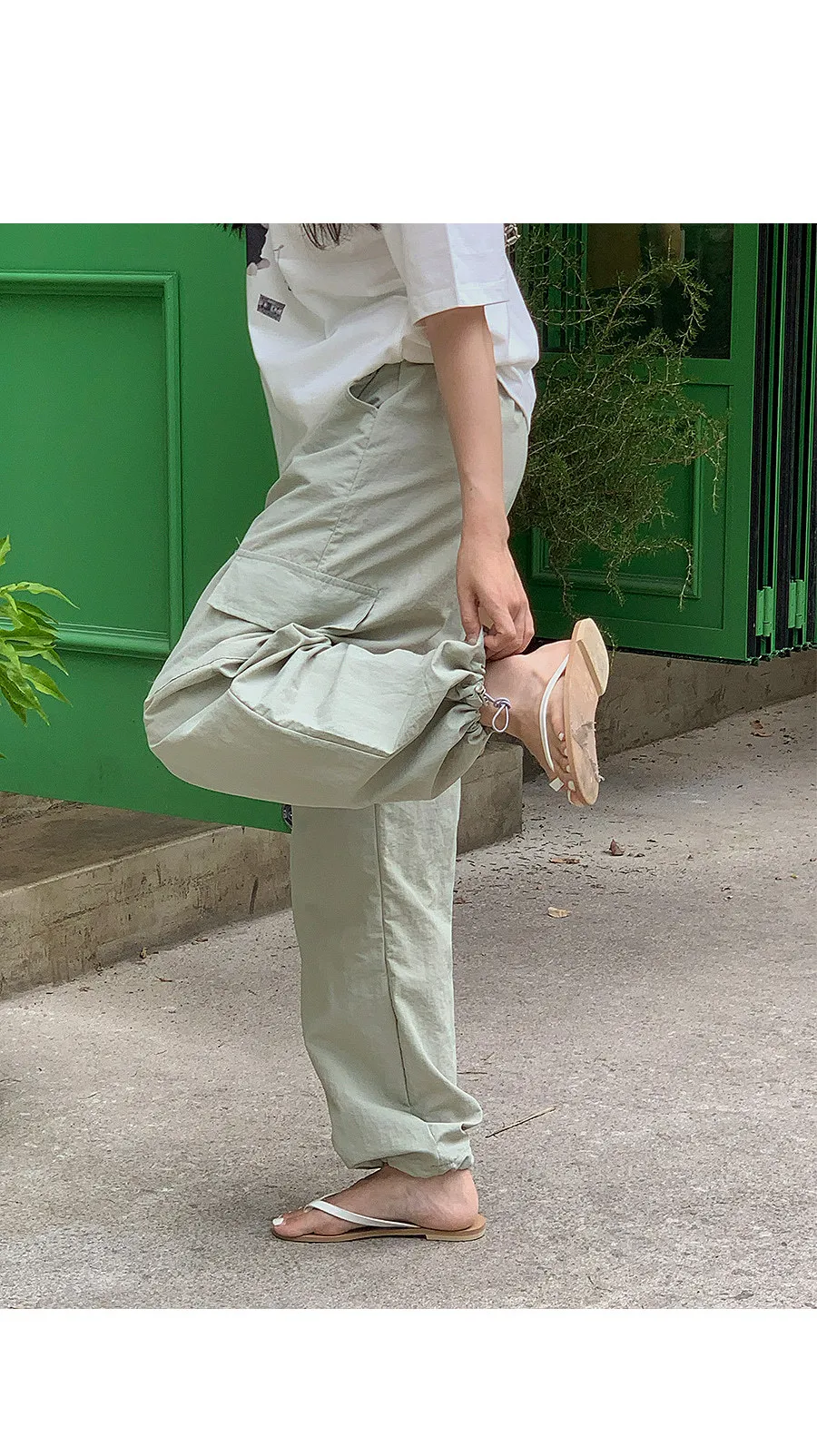 時尚大口袋雙縫腰線綁帶下擺束邊休閒褲