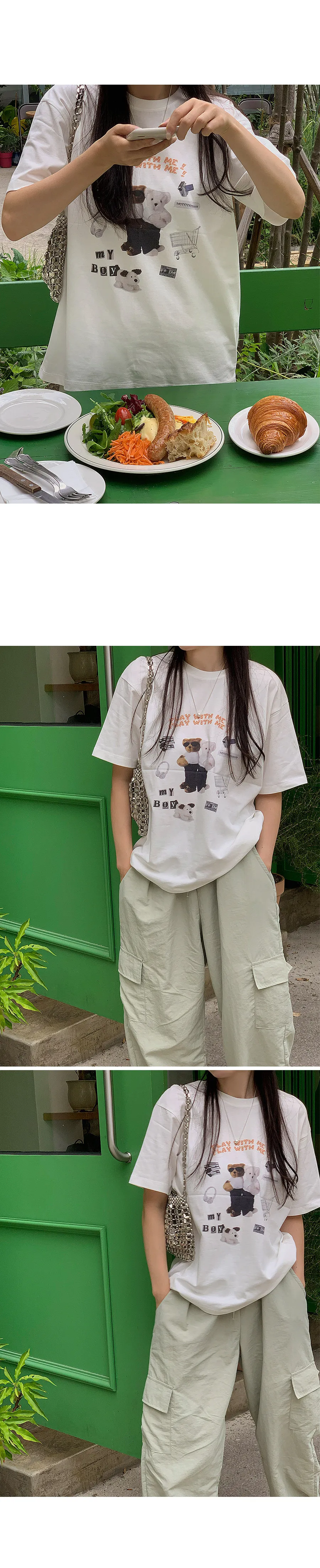 日常又可愛的短袖T卹!由於其略低的肩線和超大的剪裁,無論任何體型都可以穿著。