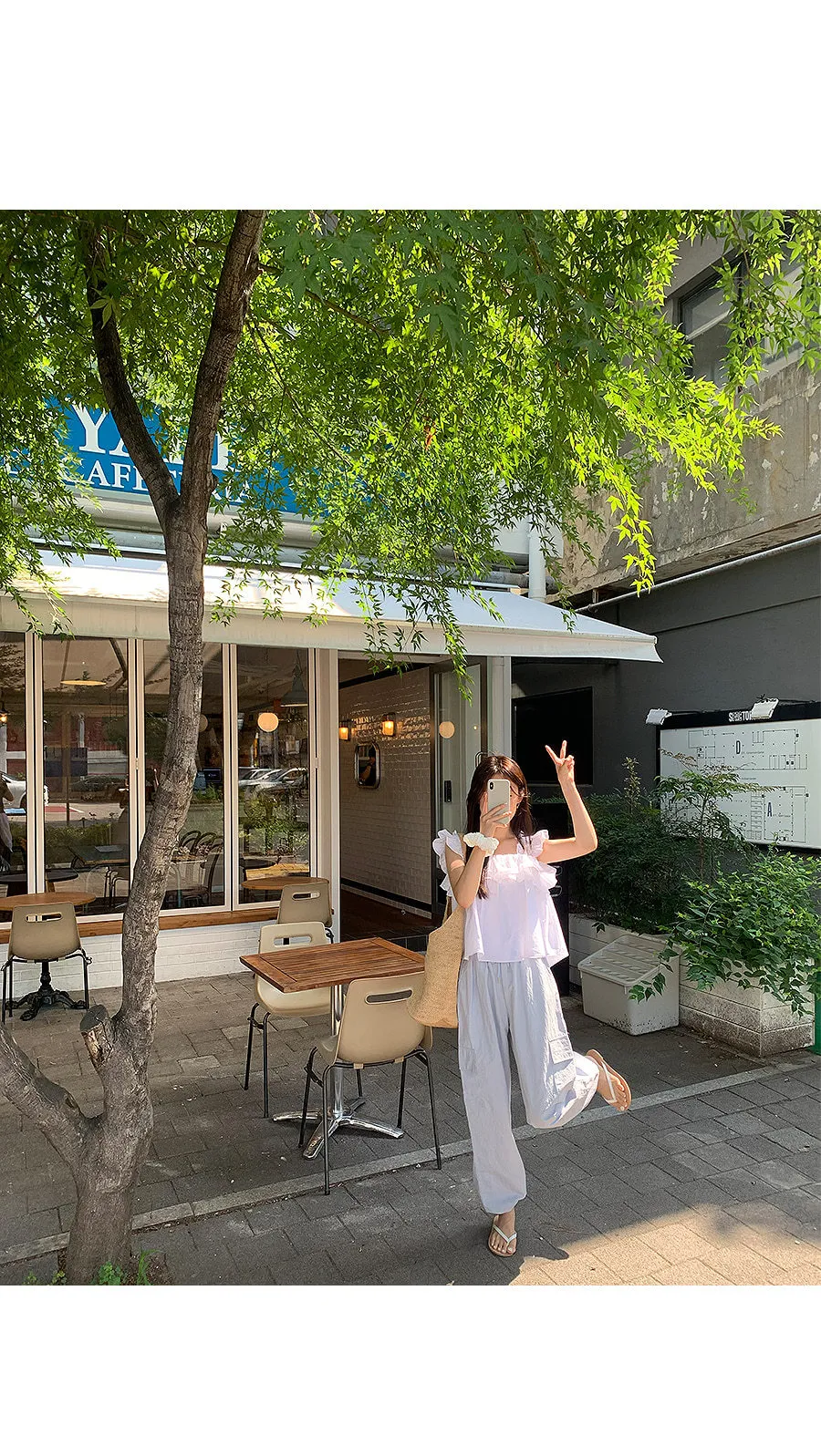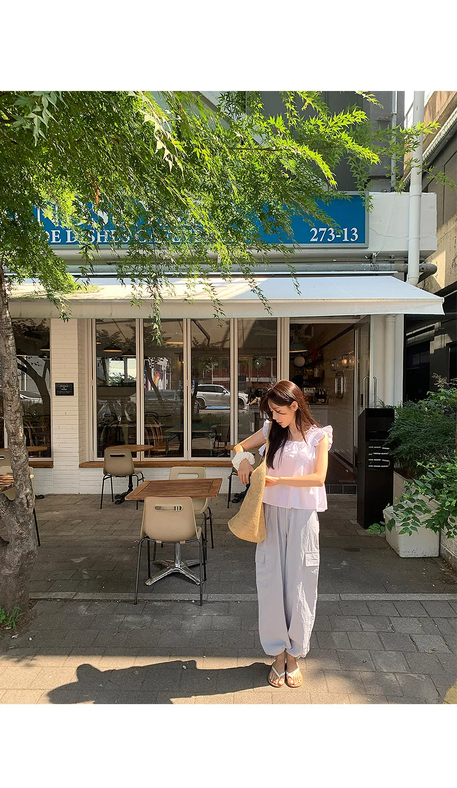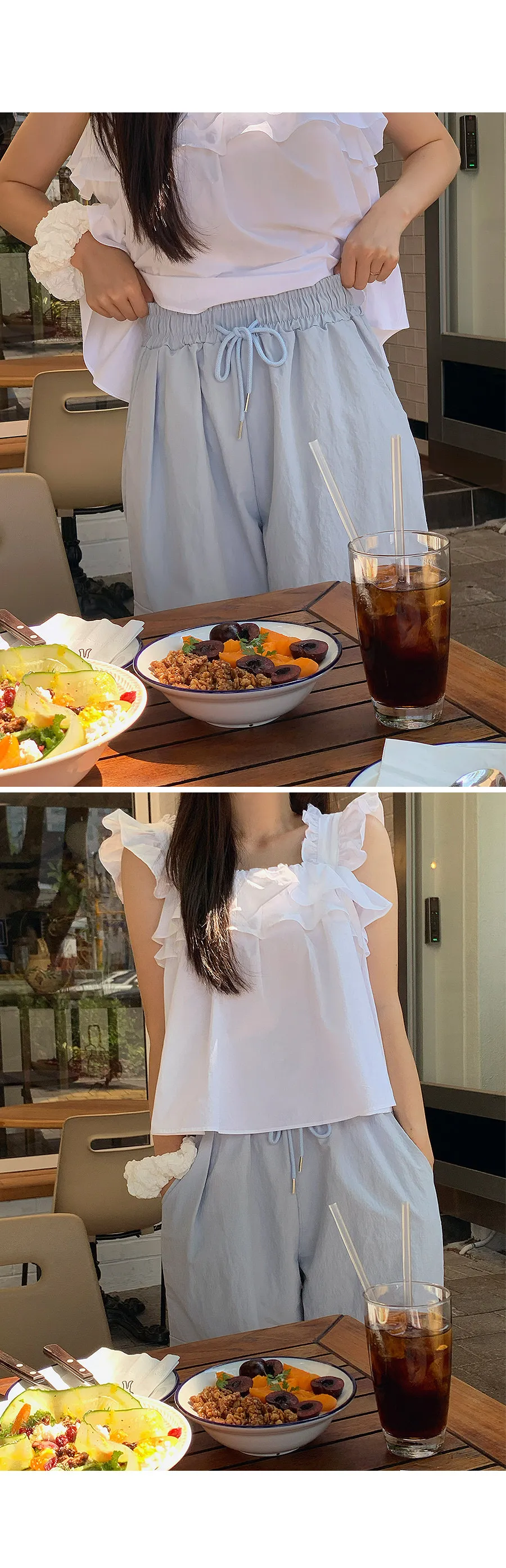 可愛摺邊肩帶層次胸圍A字版型無袖上衣