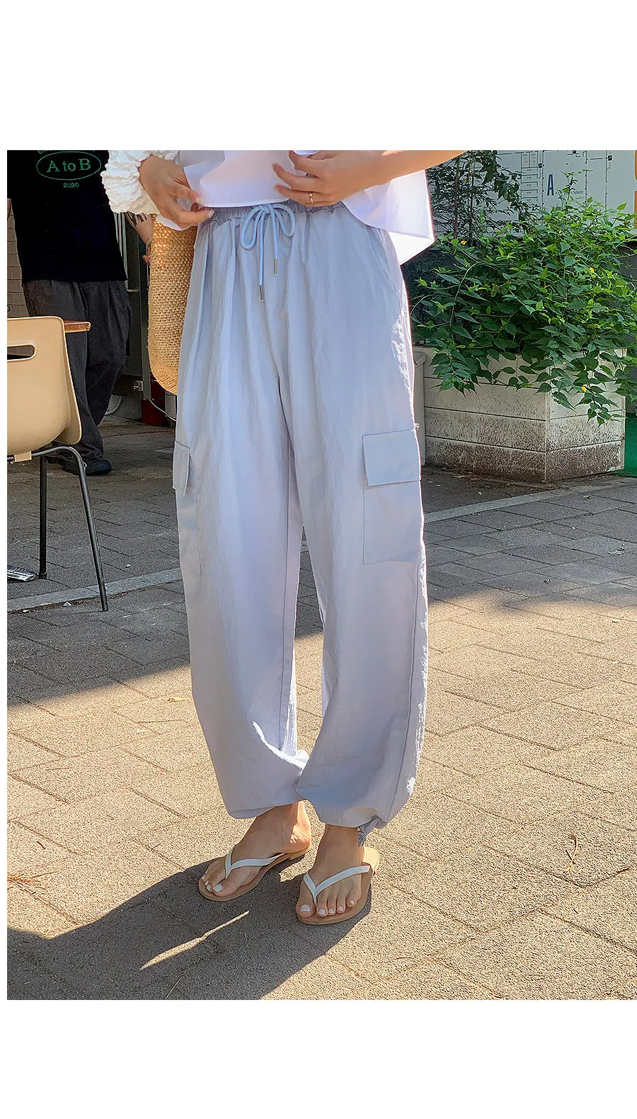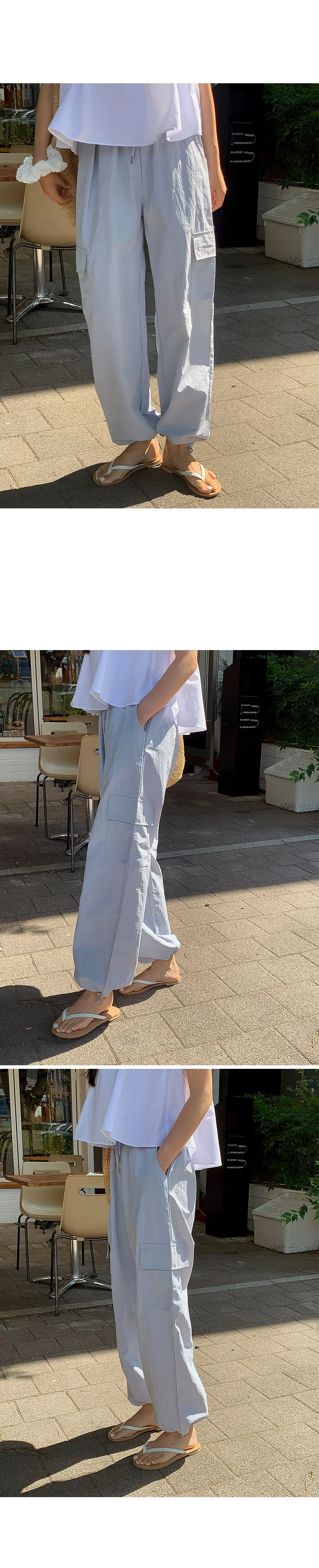 時尚大口袋雙縫腰線綁帶下擺束邊休閒褲