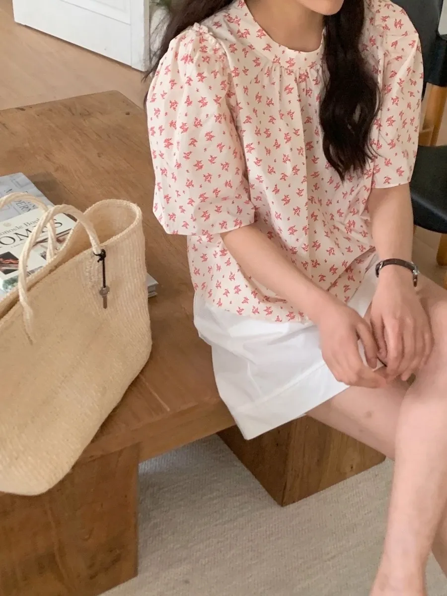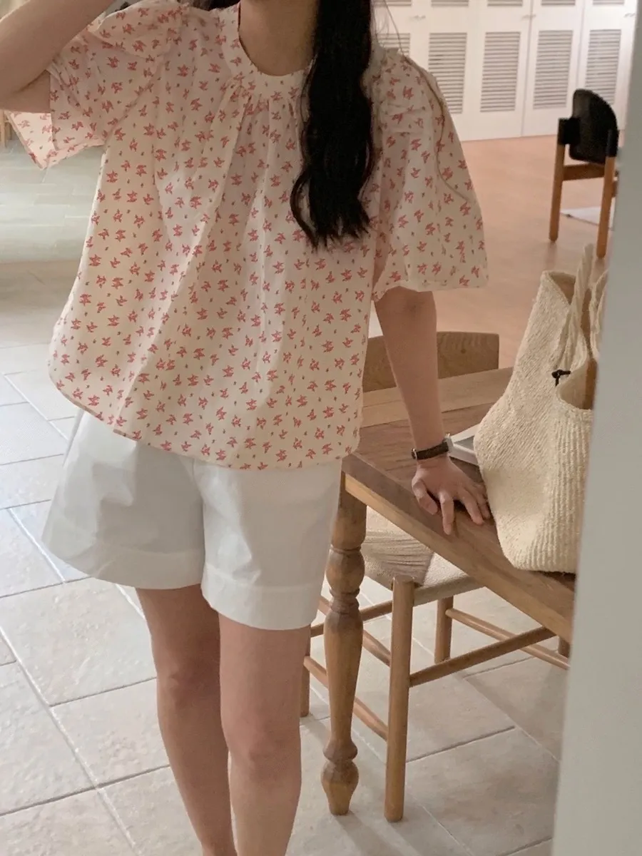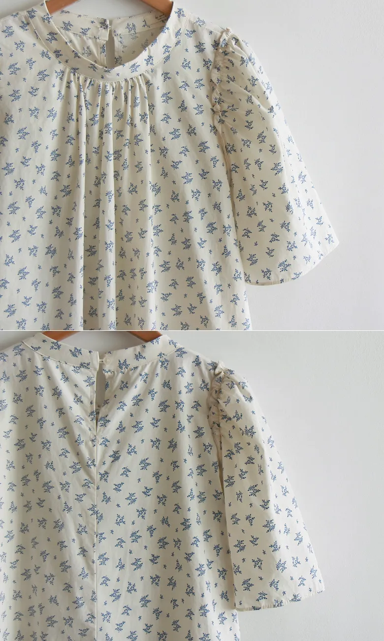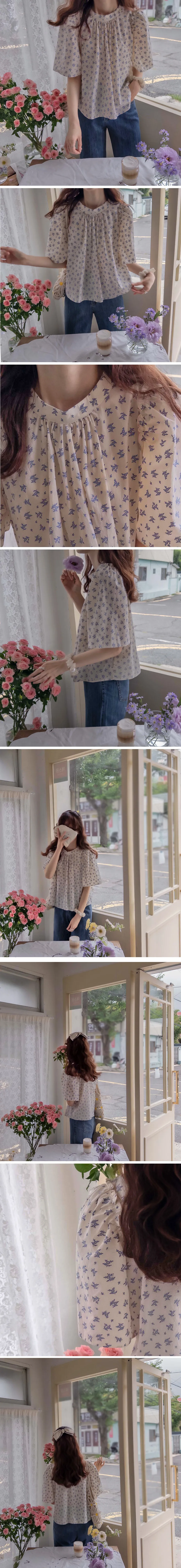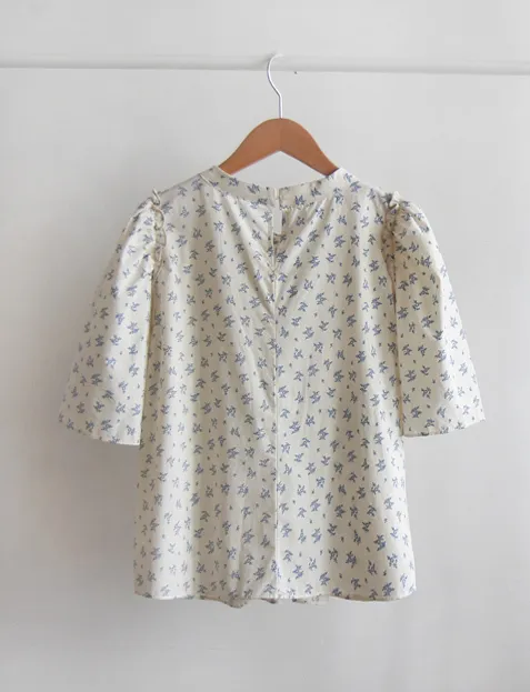 【可愛的花朵圖案布料設計】【清新的夏季上衣】【肩部剪毛的亮麗設計】【優雅合身,非常適合穿搭】【領口處的微妙剪裁也很漂亮】【時尚適合推薦作為夏季上衣]