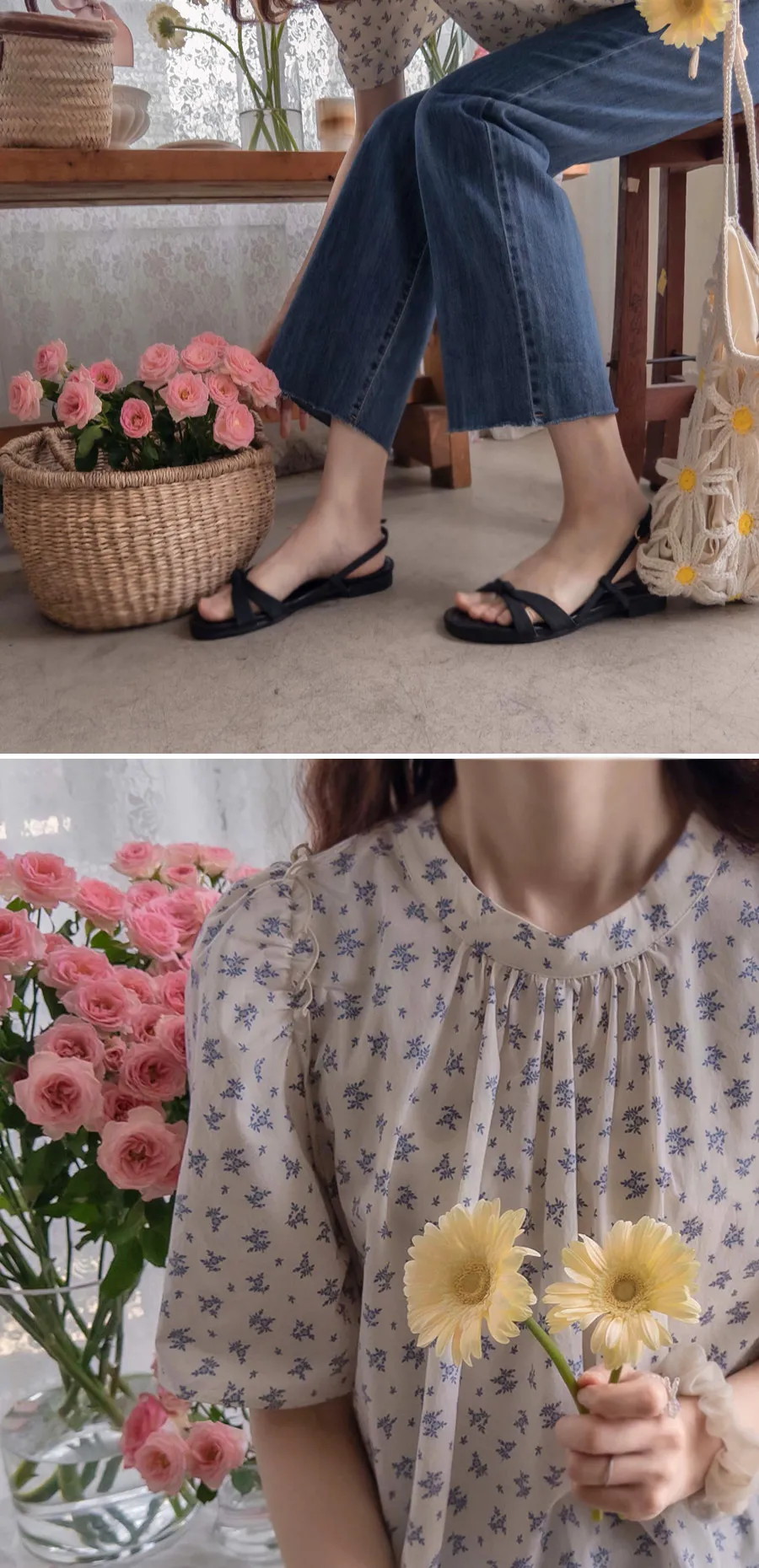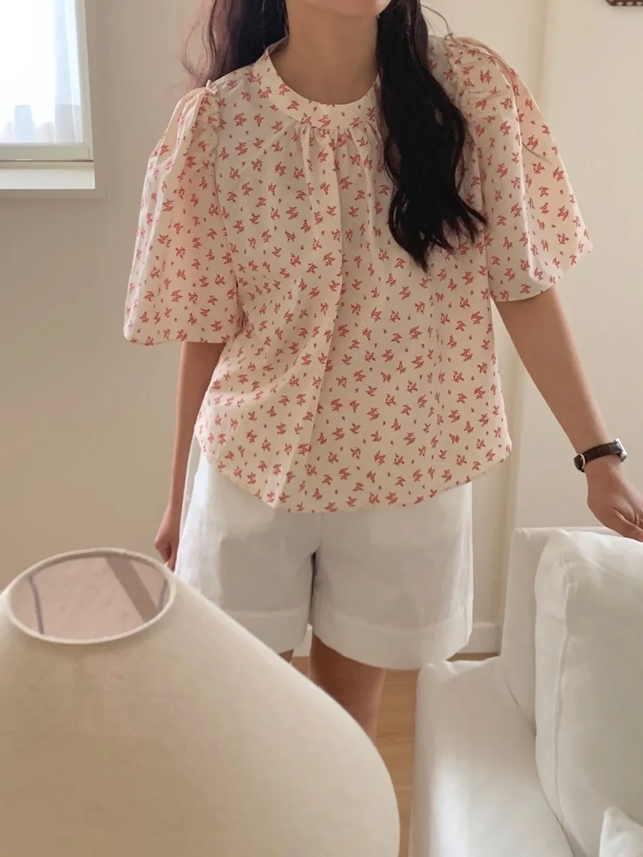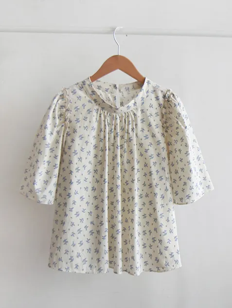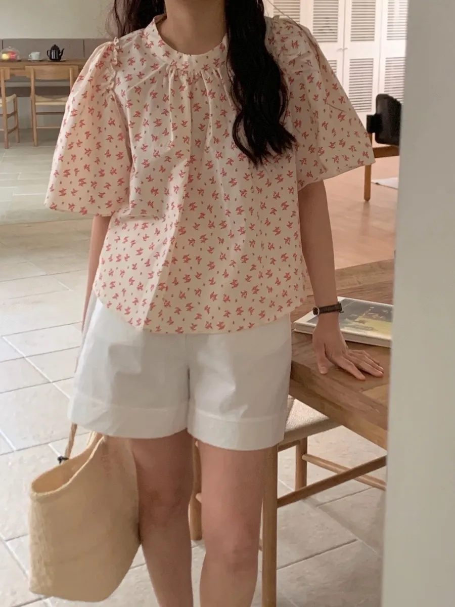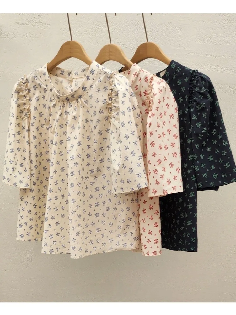 【可愛的花朵圖案布料設計】【清新的夏季上衣】【肩部剪毛的亮麗設計】【優雅合身,非常適合穿搭】【領口處的微妙剪裁也很漂亮】【時尚適合推薦作為夏季上衣]