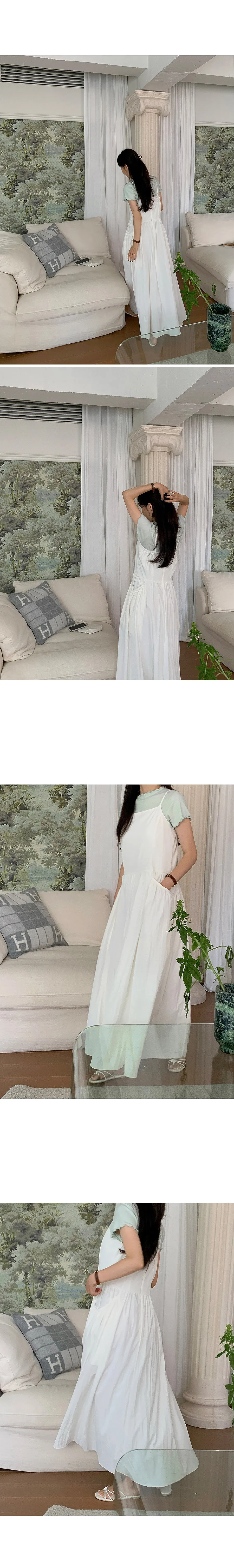 透過細肩帶打造出纖細肩線的連身裙,背線的側邊飾帶和拉鍊可輕鬆穿脫♡
