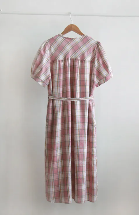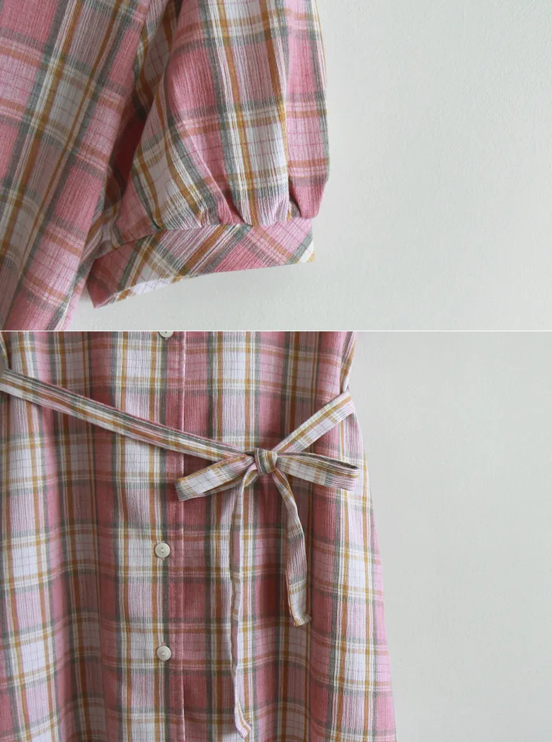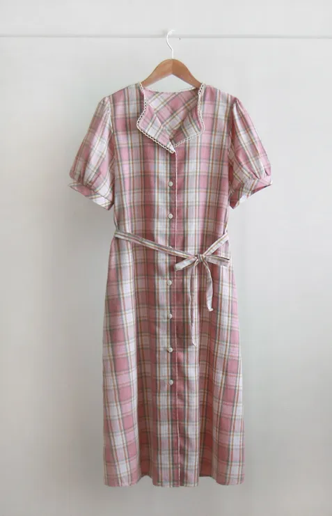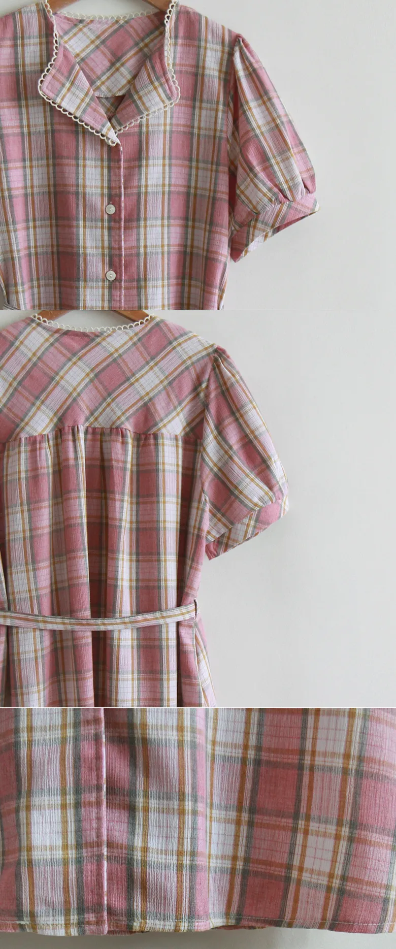 [涼爽的夏季夜色面料] [舒適貼合的抗皺面料,無需擔心變形] [不粘在身體上,很涼爽] [格紋圖案,充滿夏日的歡快感覺] [鈕扣開合] [腰帶套裝:可拆卸] [腰帶係緊將完成時尚的邊緣合身] [夏季可以涼爽穿著的格紋連身裙]