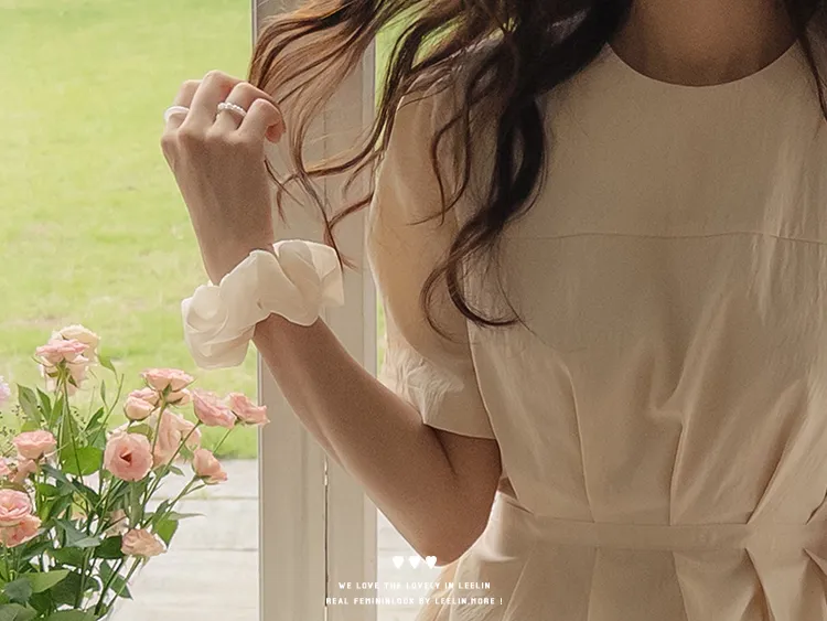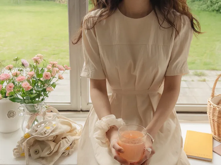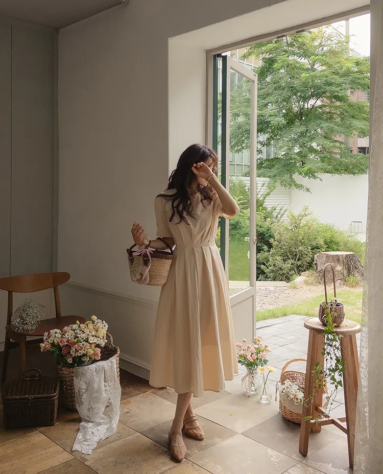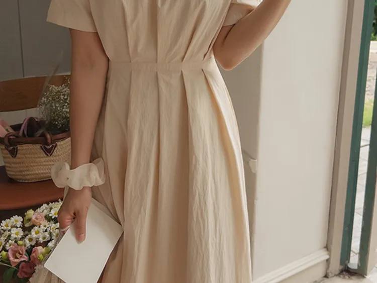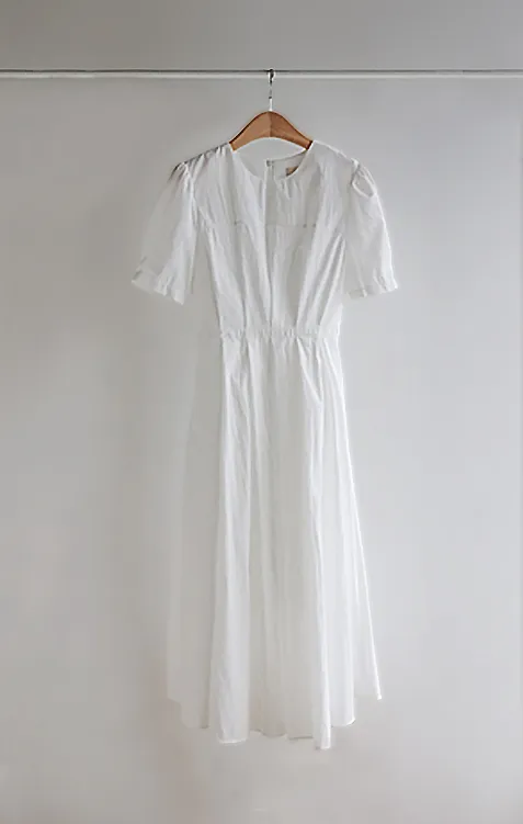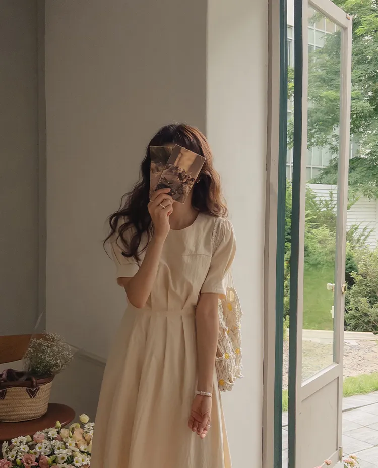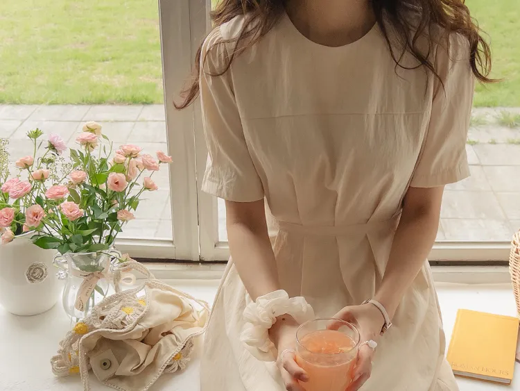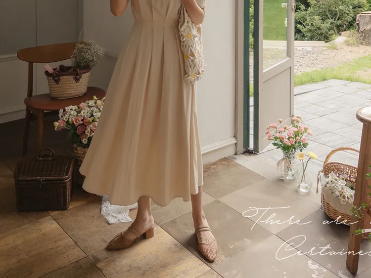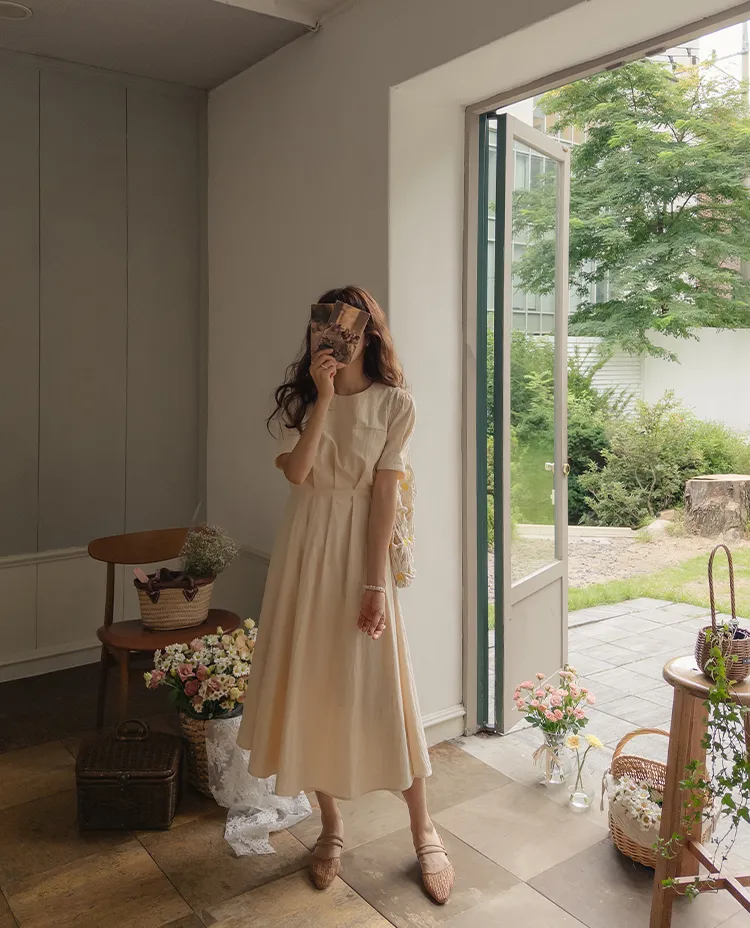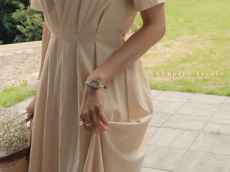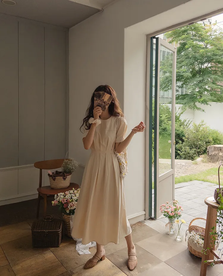【鬆脆的材質,清新舒適~針褶連身裙♥】【針褶真的很漂亮~】【傘擺A字輪廓有遮蓋身形的效果】【抗皺的連身裙】 【細繩綁帶打造纖細腰線】