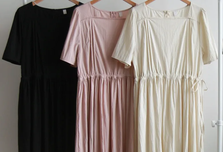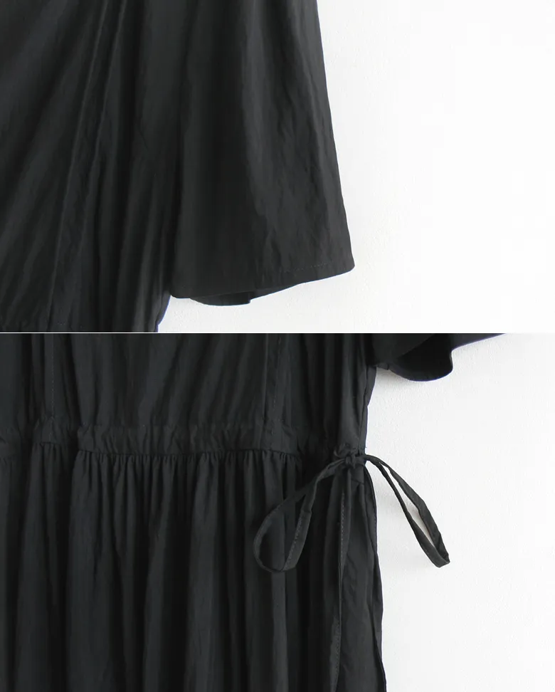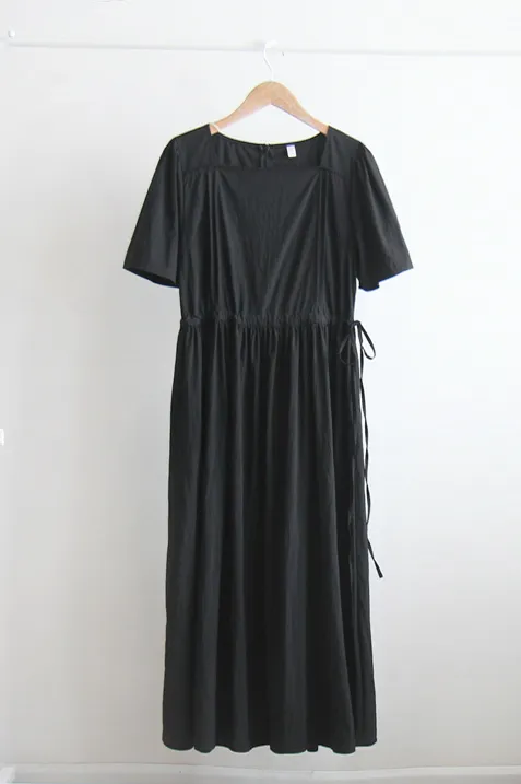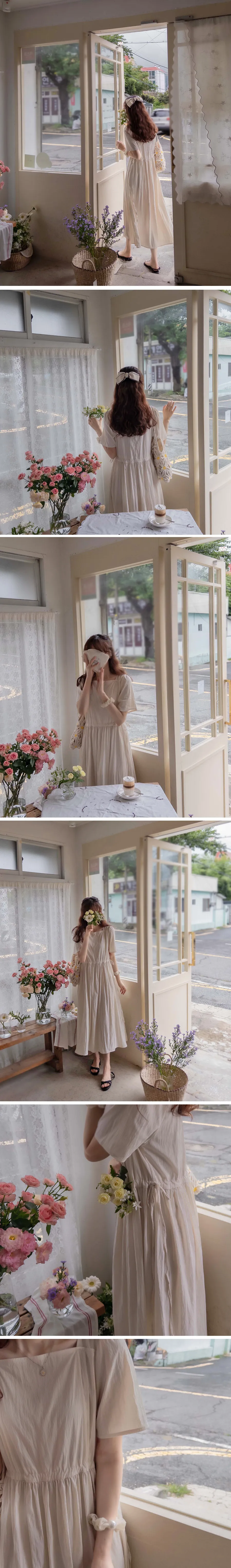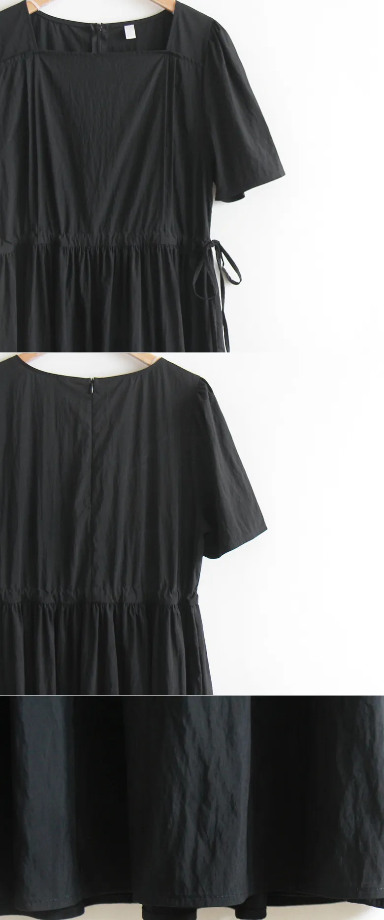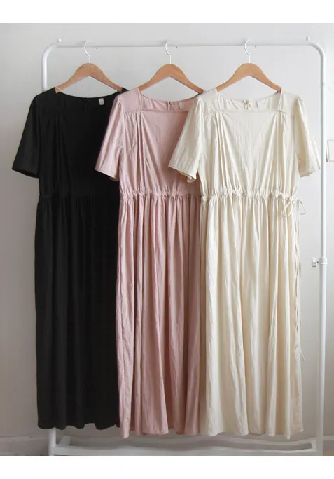 [可綁帶收腰調整身形:連接] [有吸引力的方領] [透過針摺設計營造出歡快的心情] [含有尼龍人造絲的沙沙涼爽夏季面料] [靈活,優雅的合身][由柔韌的夏季材質製成] [用綁帶繫腰部,打造修身邊緣]
