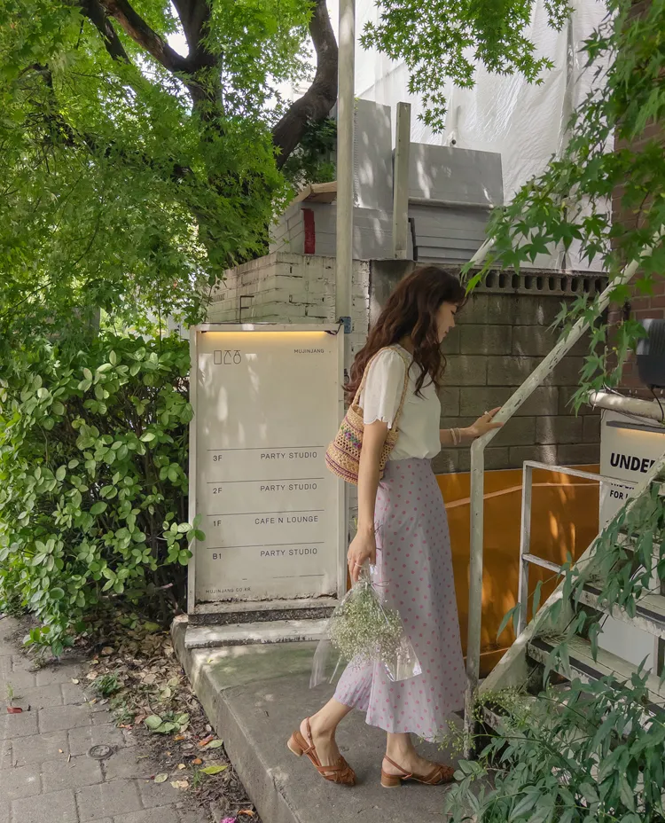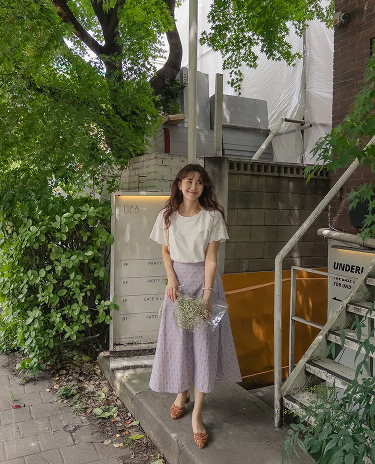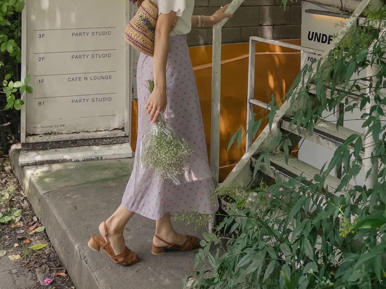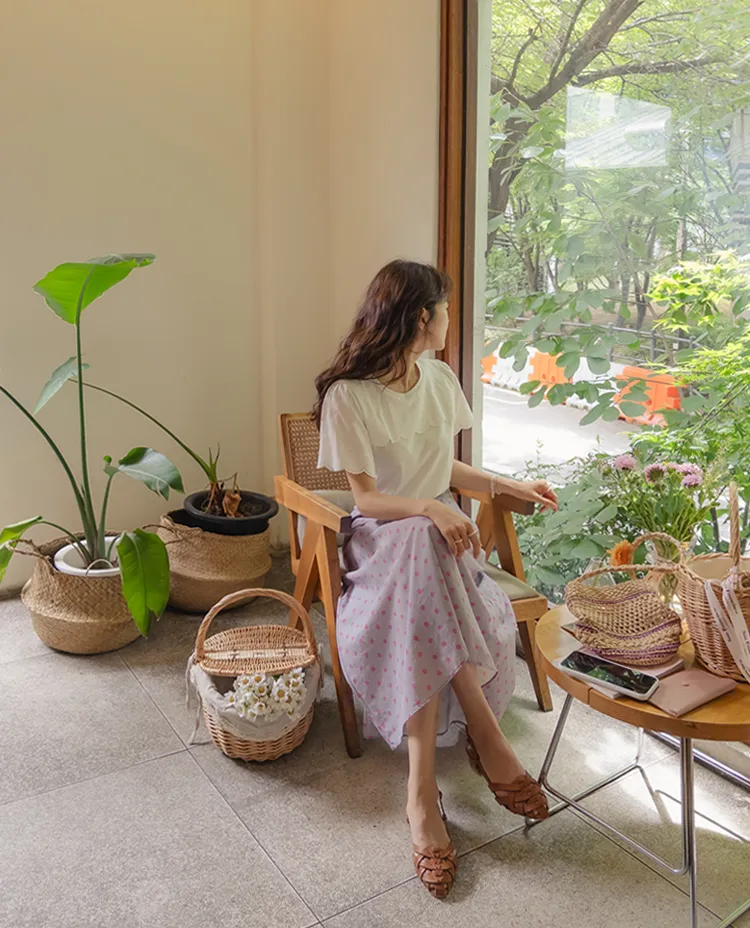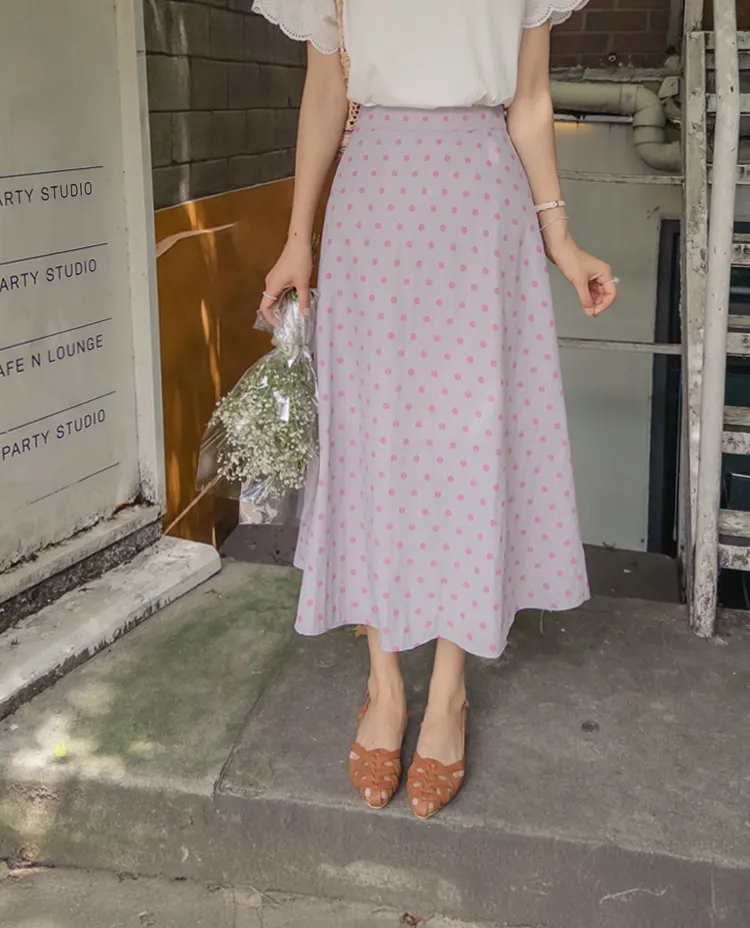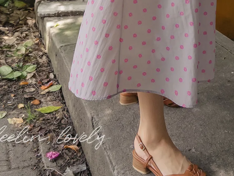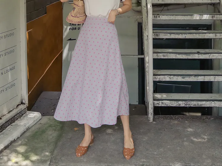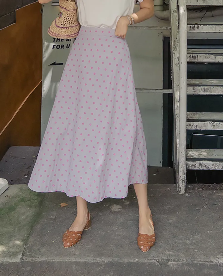 雛菊花朵輕款A字剪裁飄逸線條中長裙