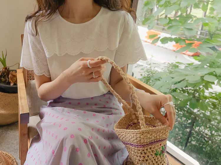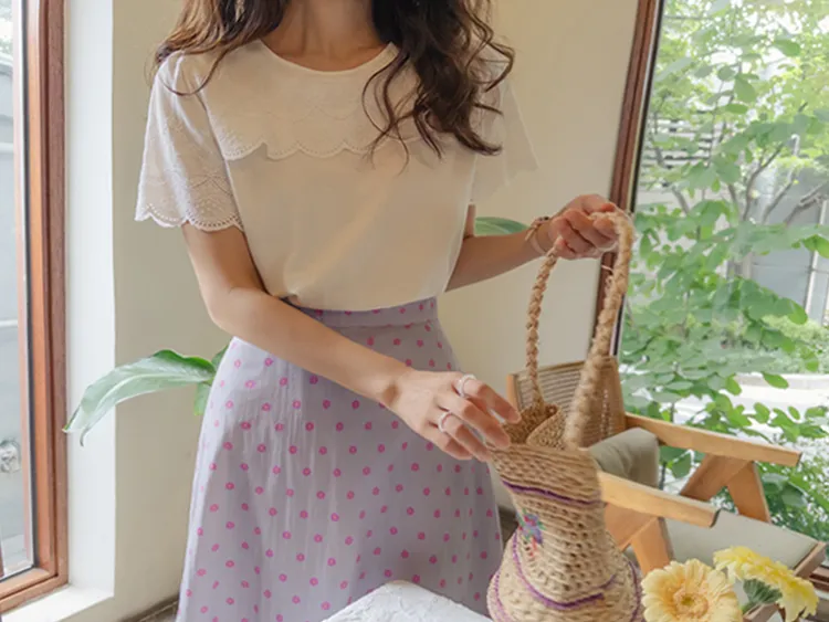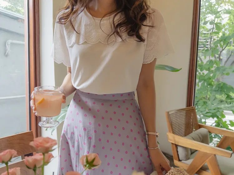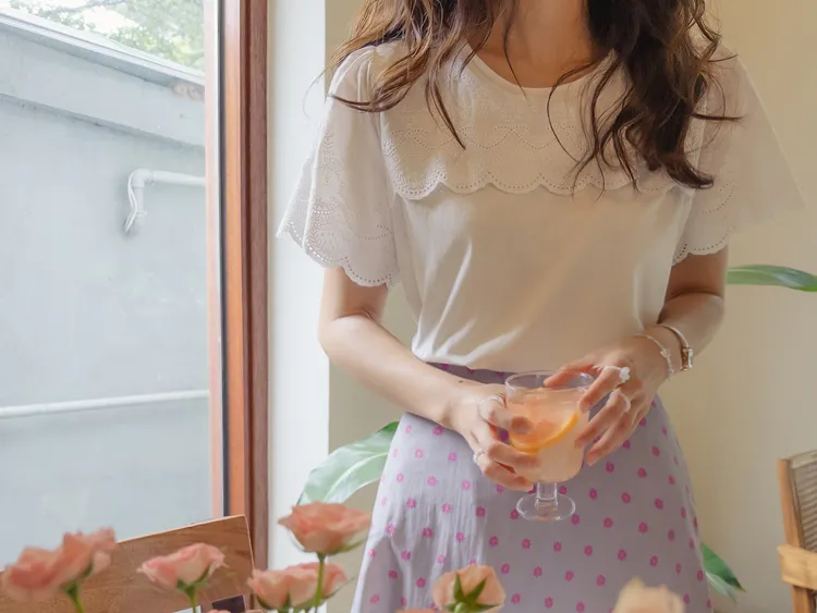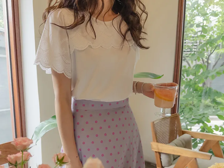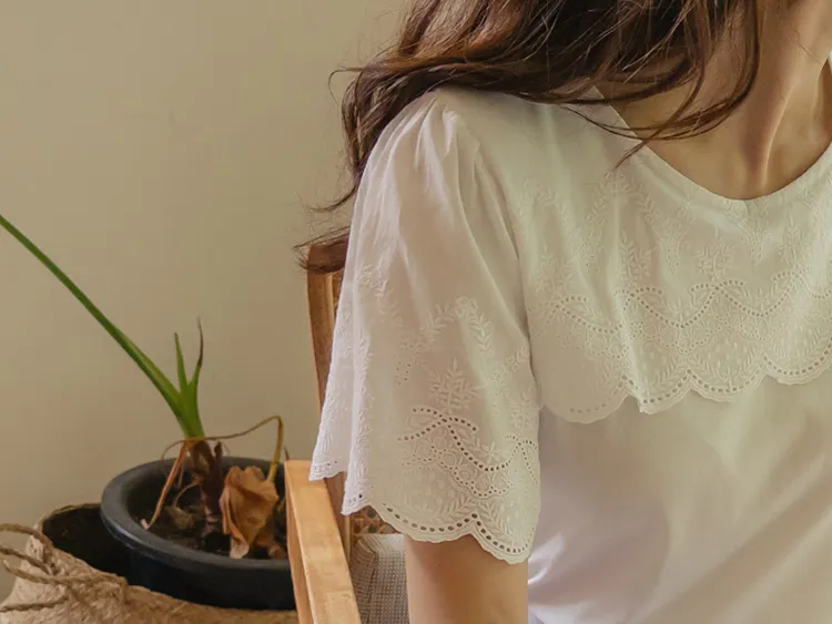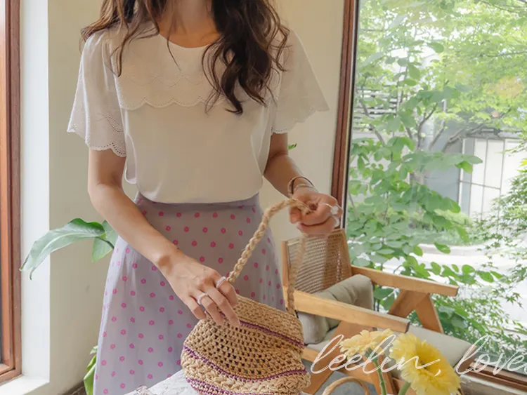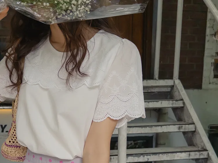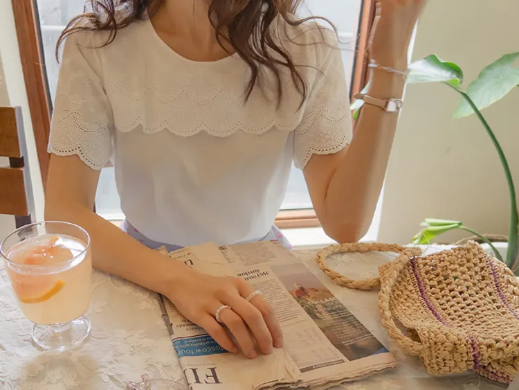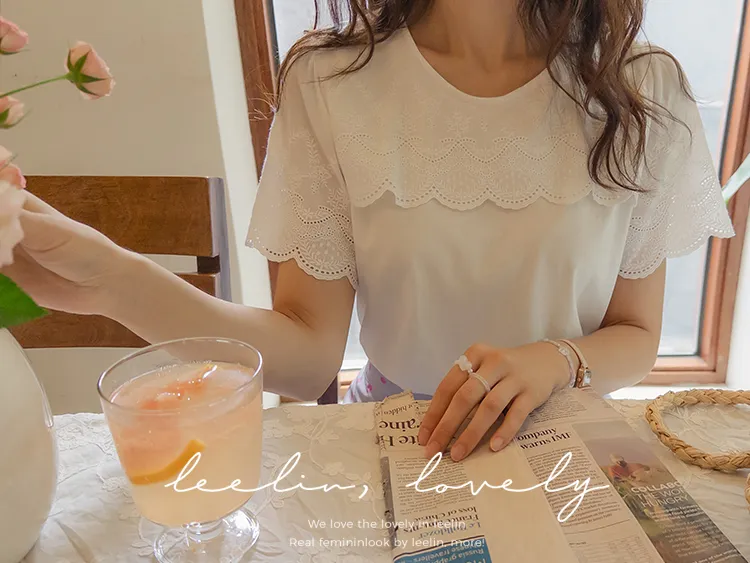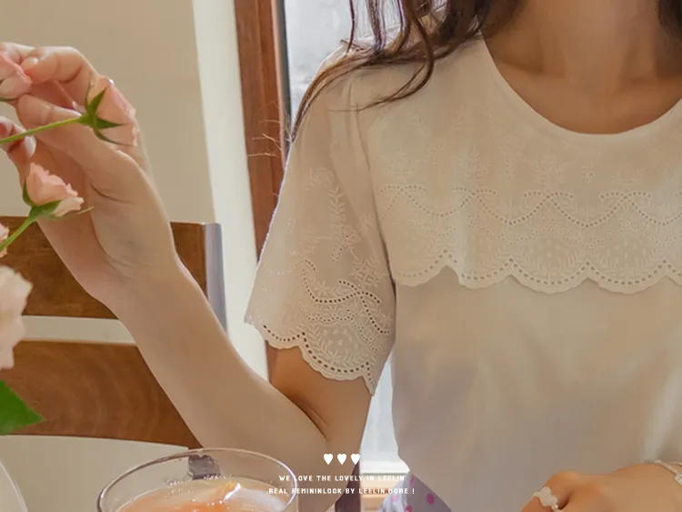 【非常可愛的上衣,輕薄清新的鏤空蕾絲♥】【奢華又女人味~】【柔軟不刺激】【輕款,適合整個夏天-】