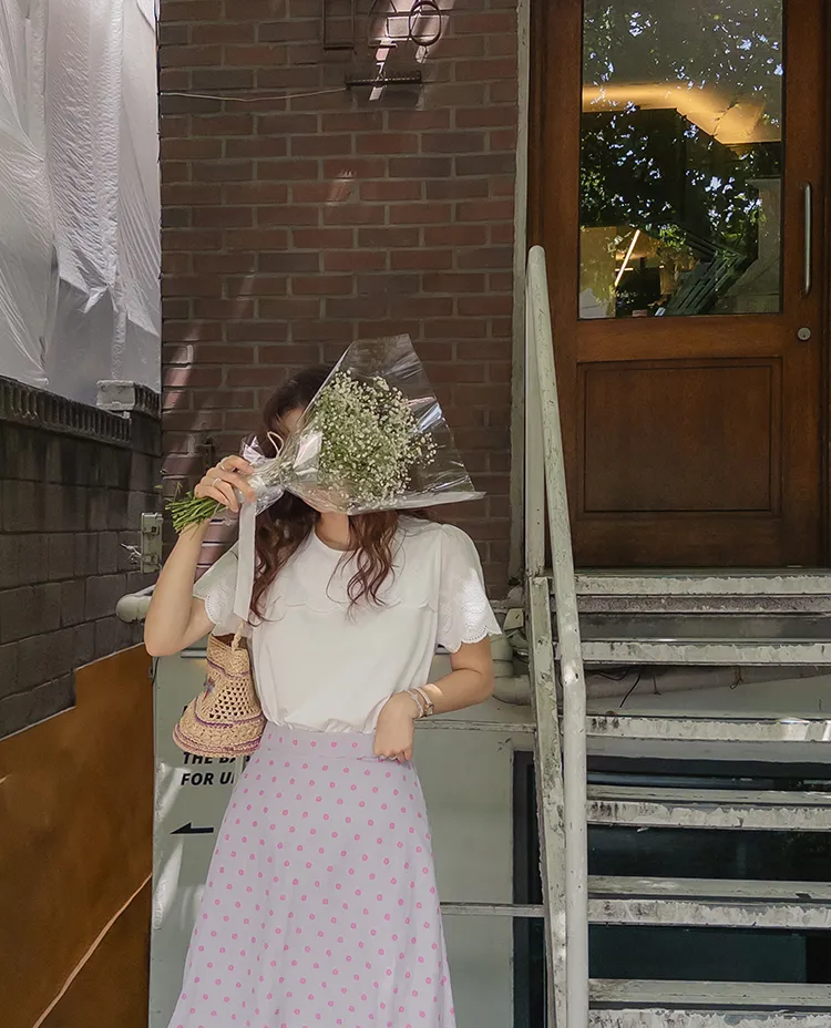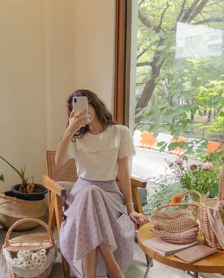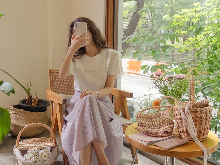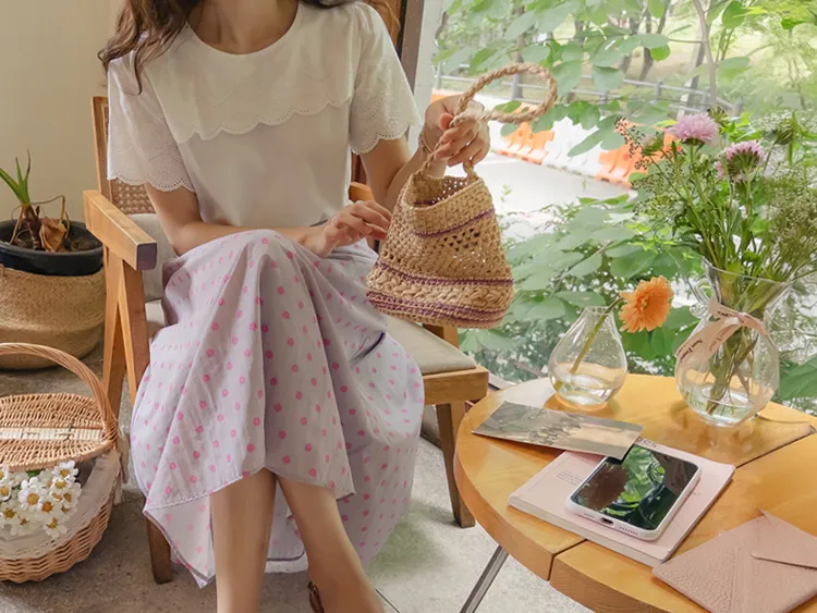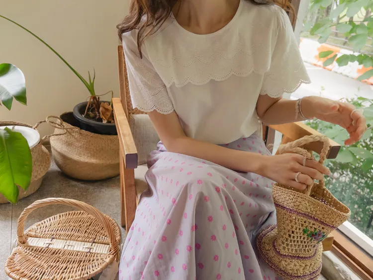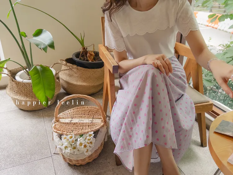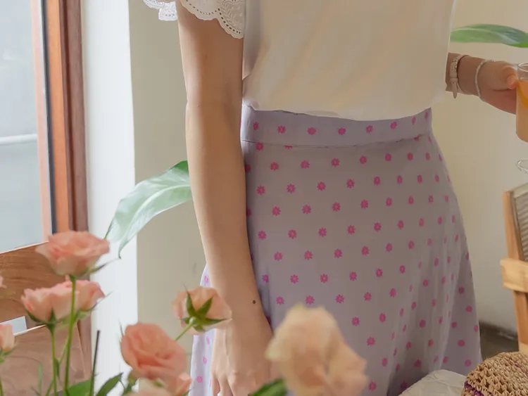 雛菊花朵輕款A字剪裁飄逸線條中長裙
