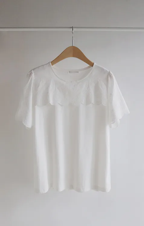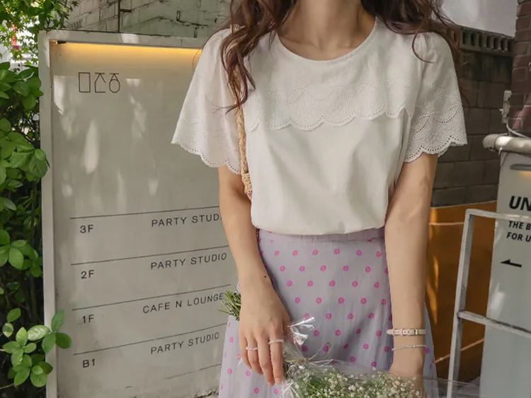 浪漫層次波浪蕾絲花朵刺繡柔軟上衣