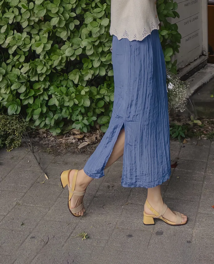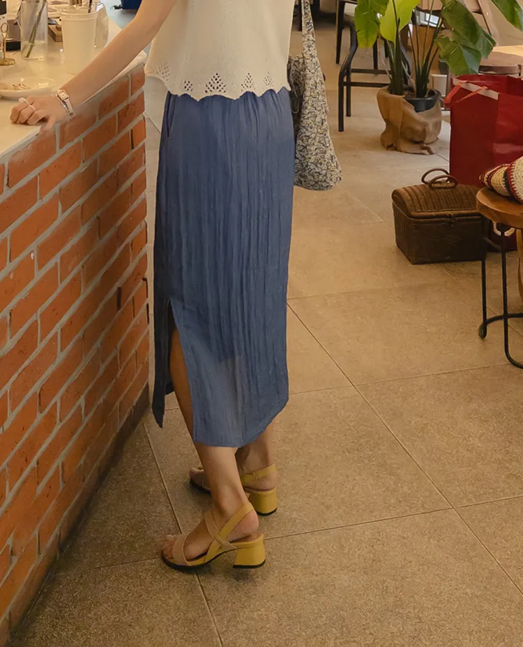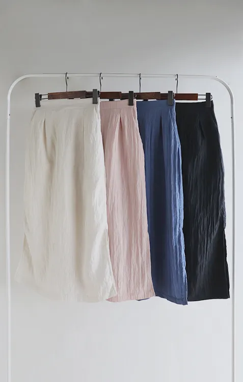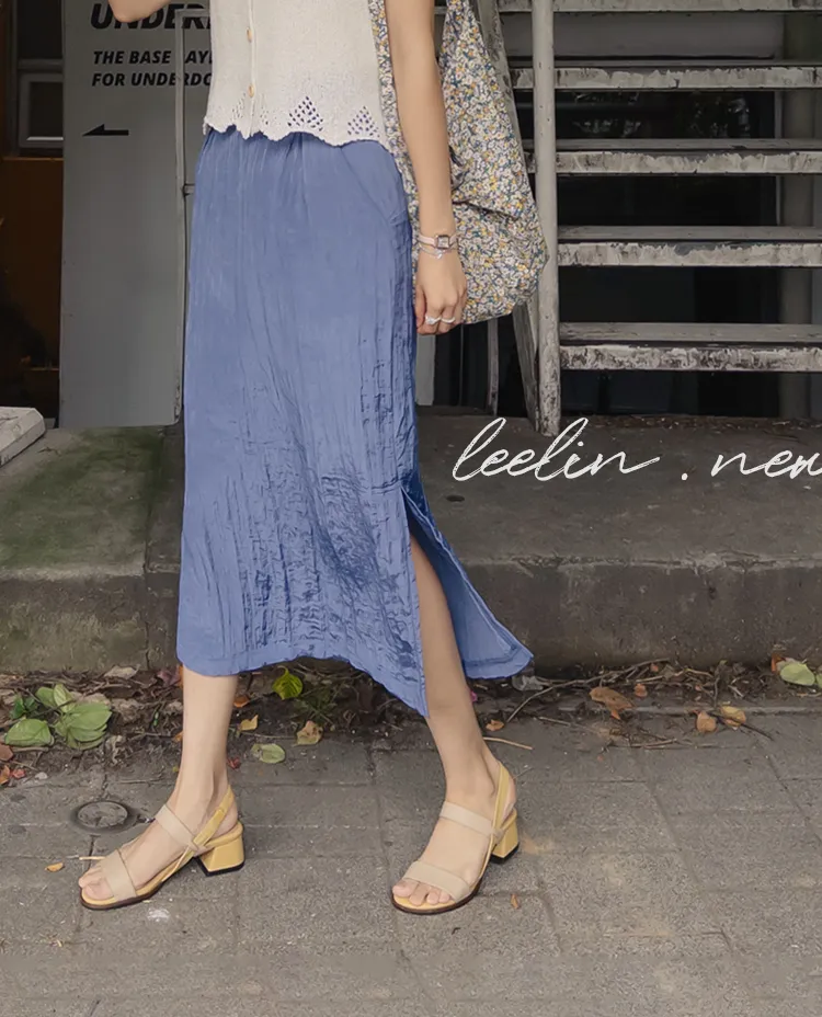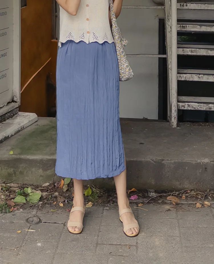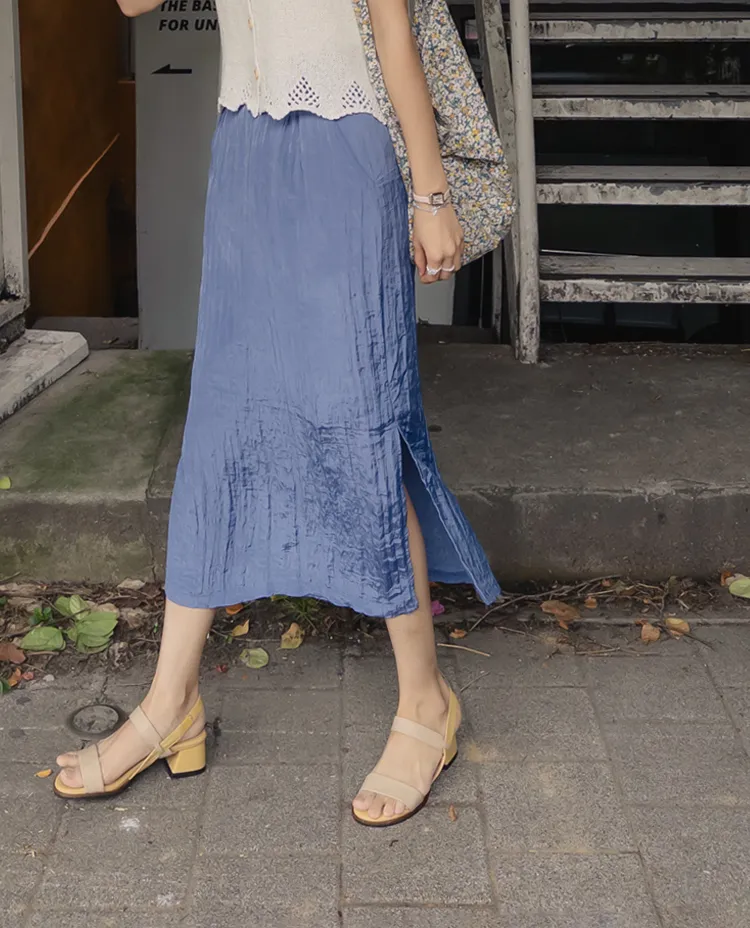 柔軟輕款皺摺H剪裁側開衩中長裙