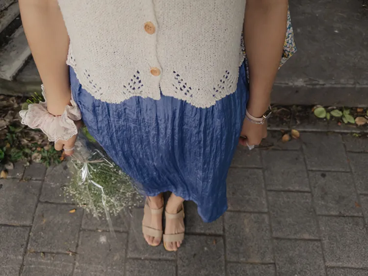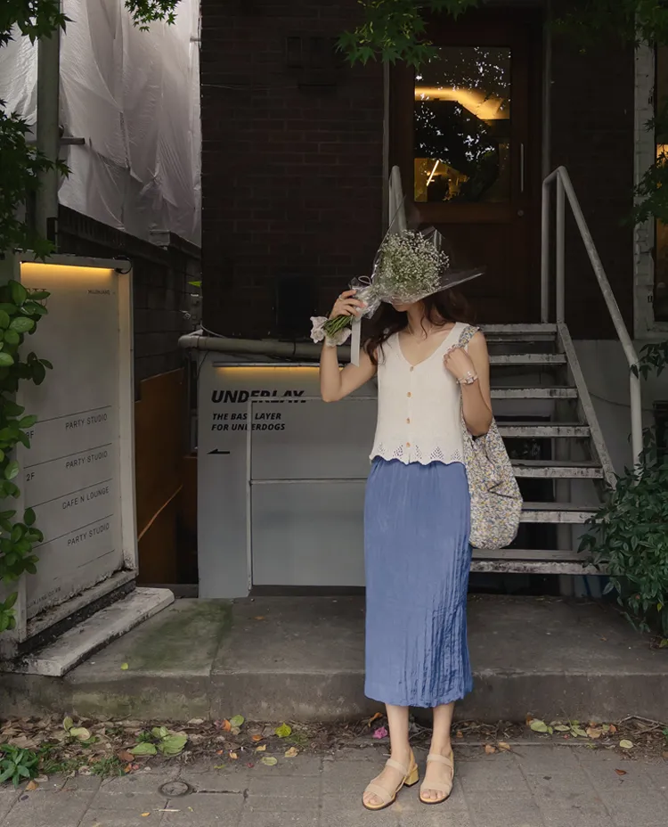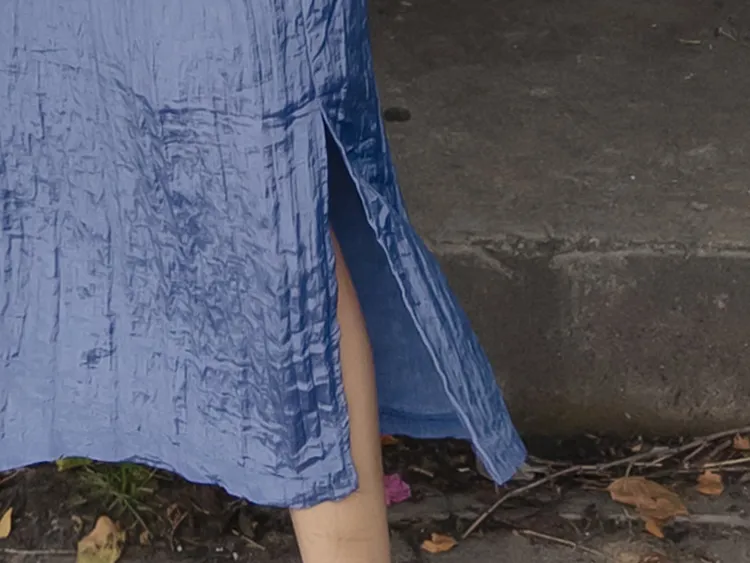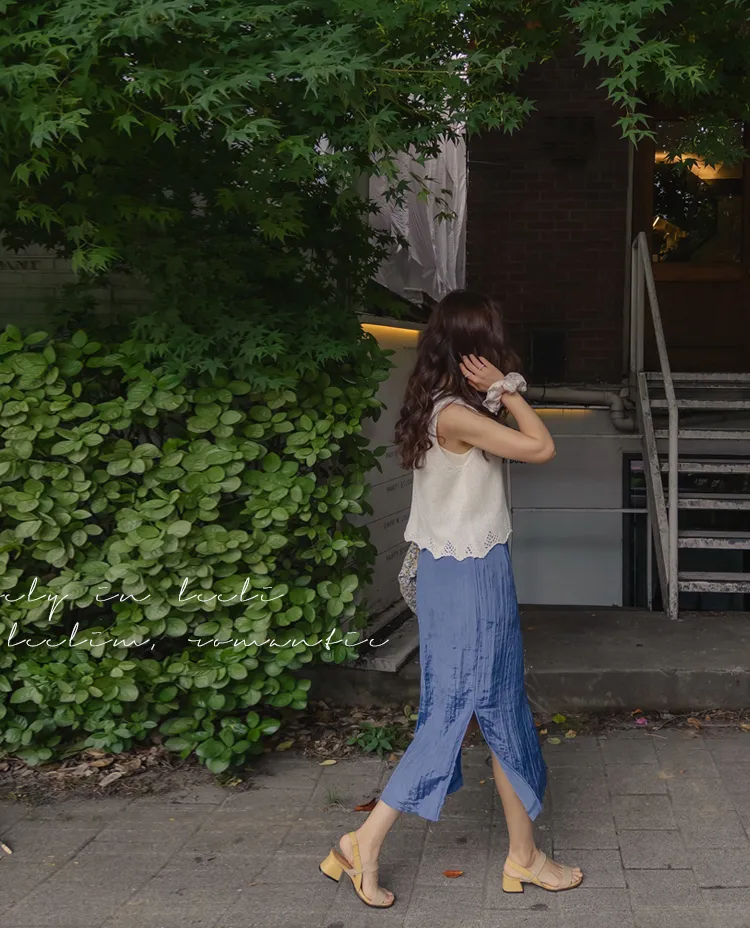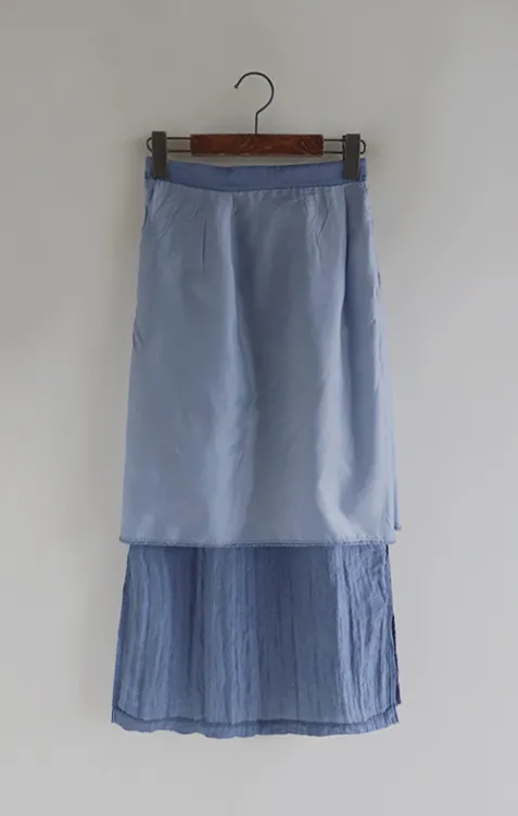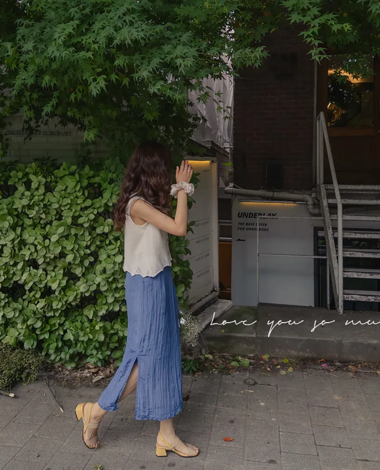柔軟輕款皺摺H剪裁側開衩中長裙