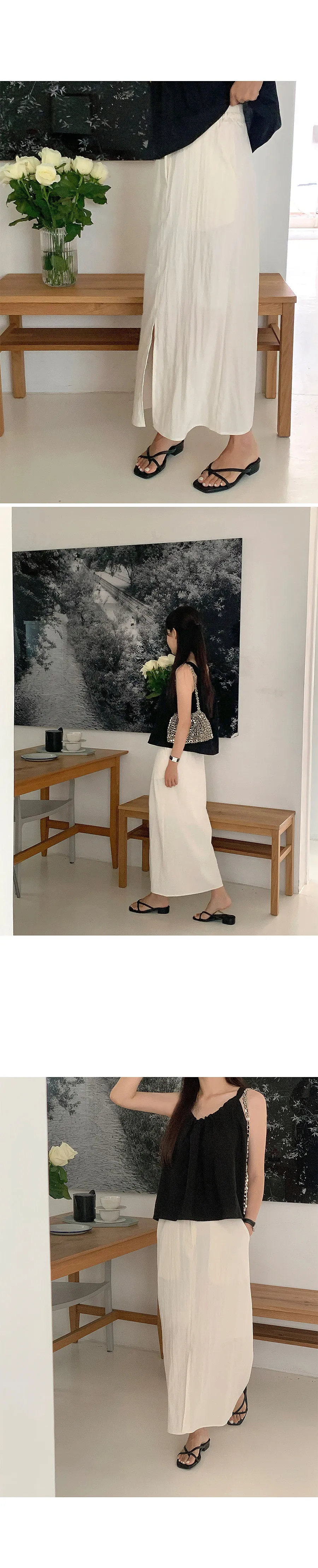 感性意境兩側彈性飾帶前開衩中長裙