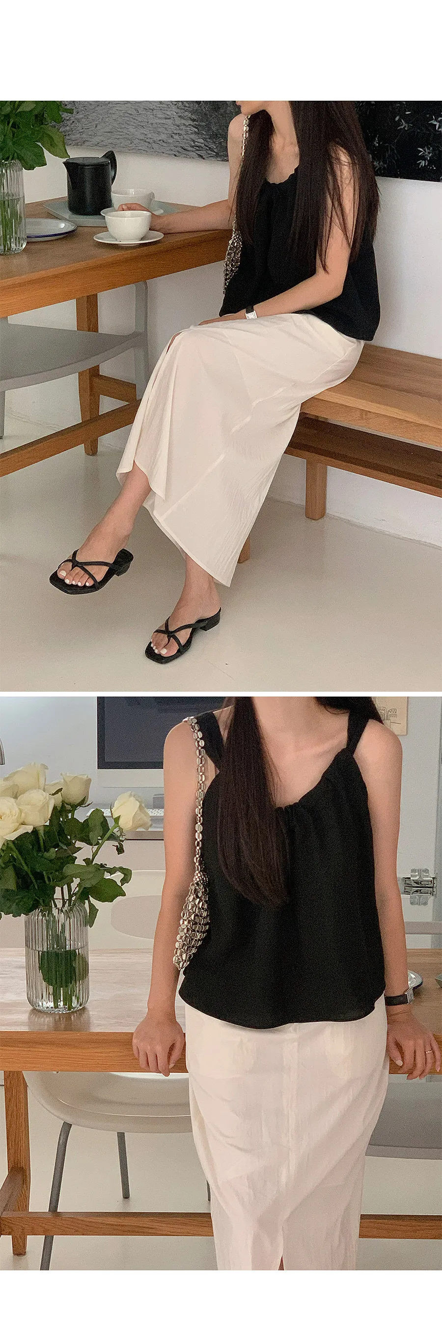 又酷又漂亮!透過直接調整肩帶來穿著,打造出可愛輪廓和不同尋常的心情的無袖上衣!