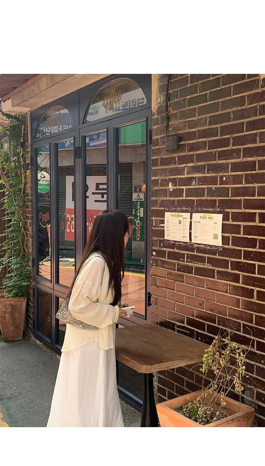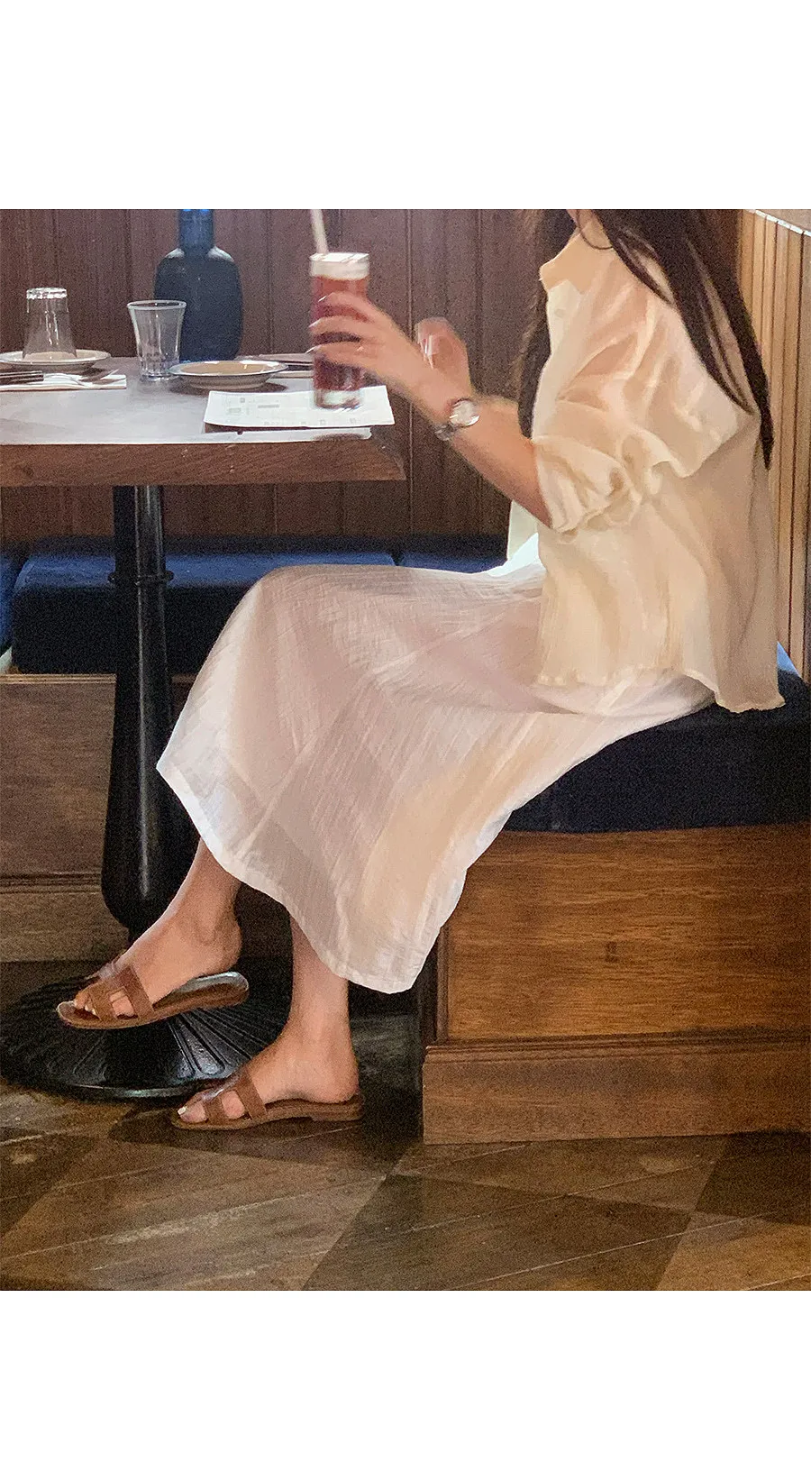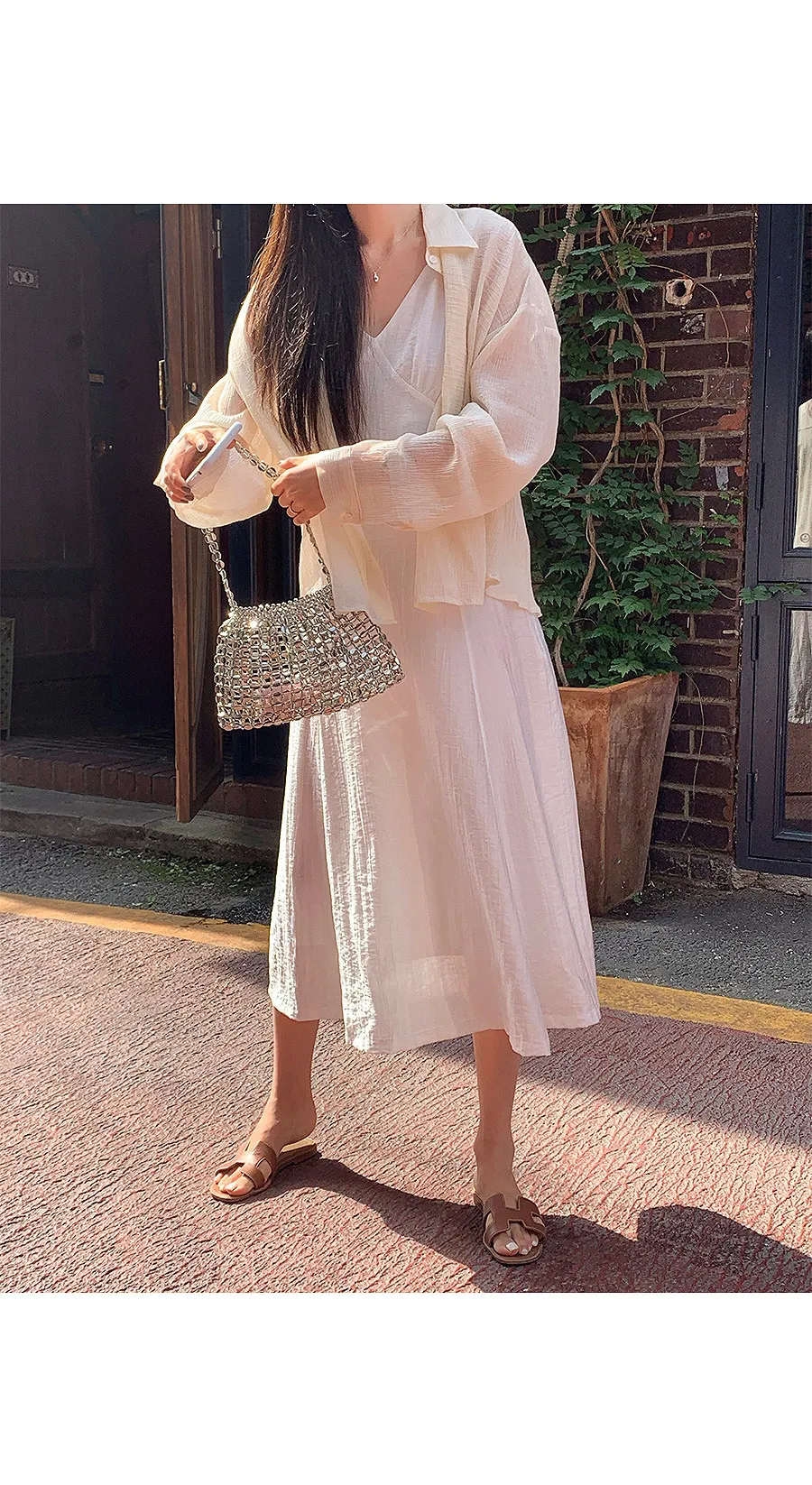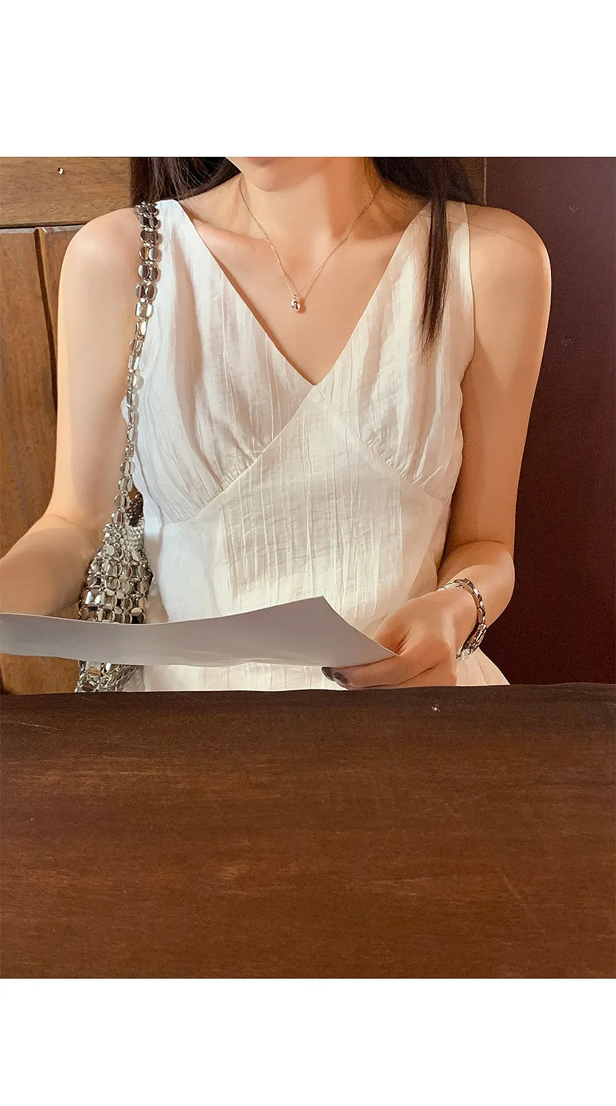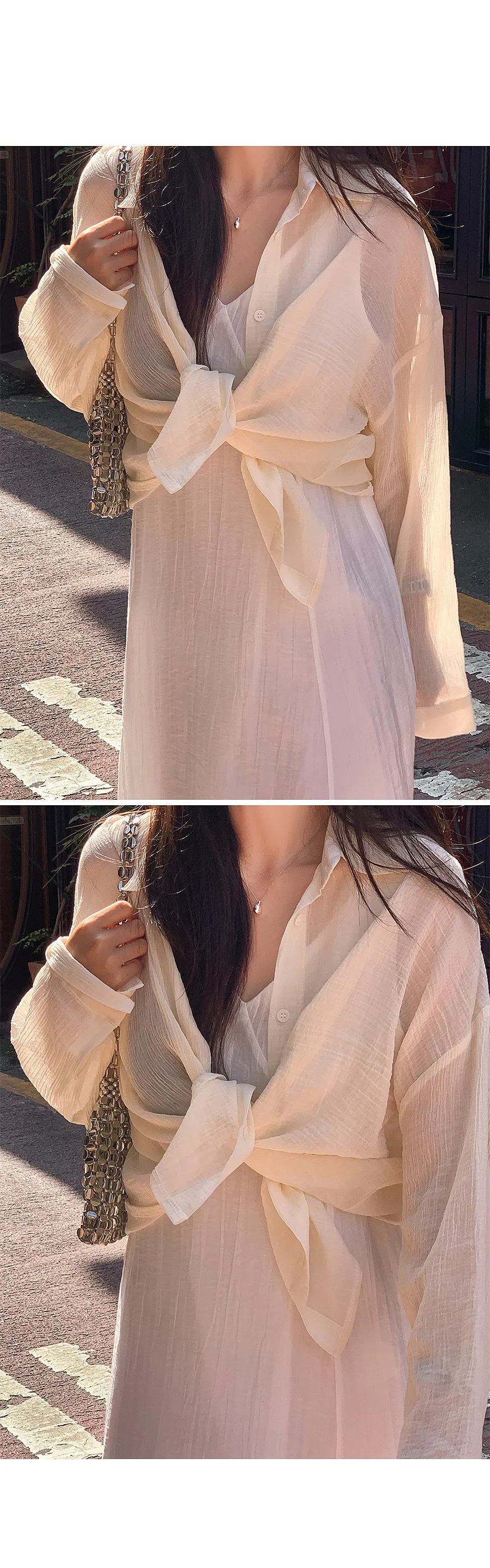 一款沿著身體線條流動的寬鬆襯衫,採用夜色面料製成,帶有迷人的細微皺紋,獨自成為時尚點♡