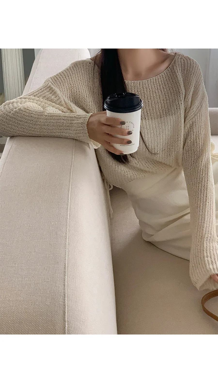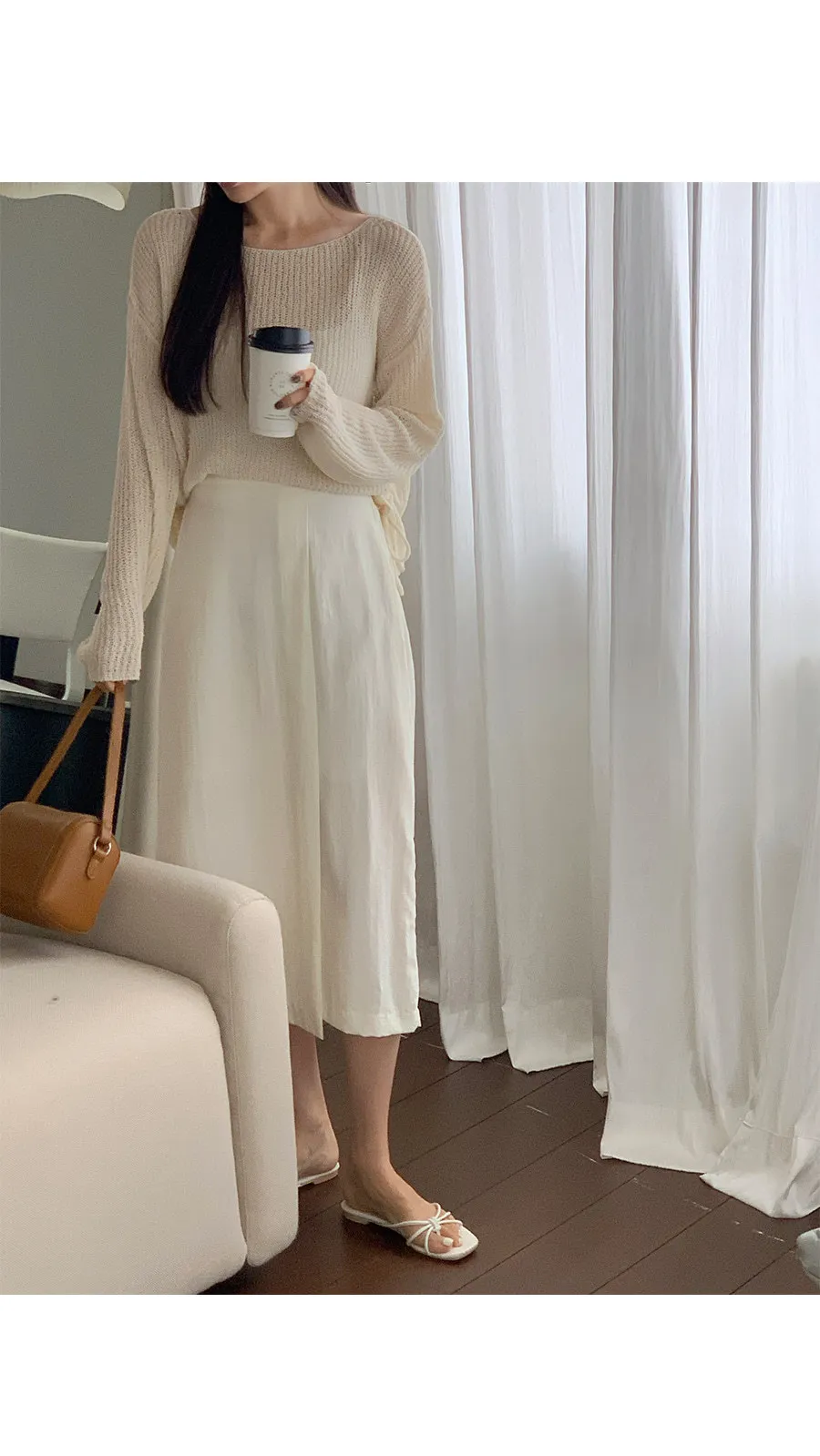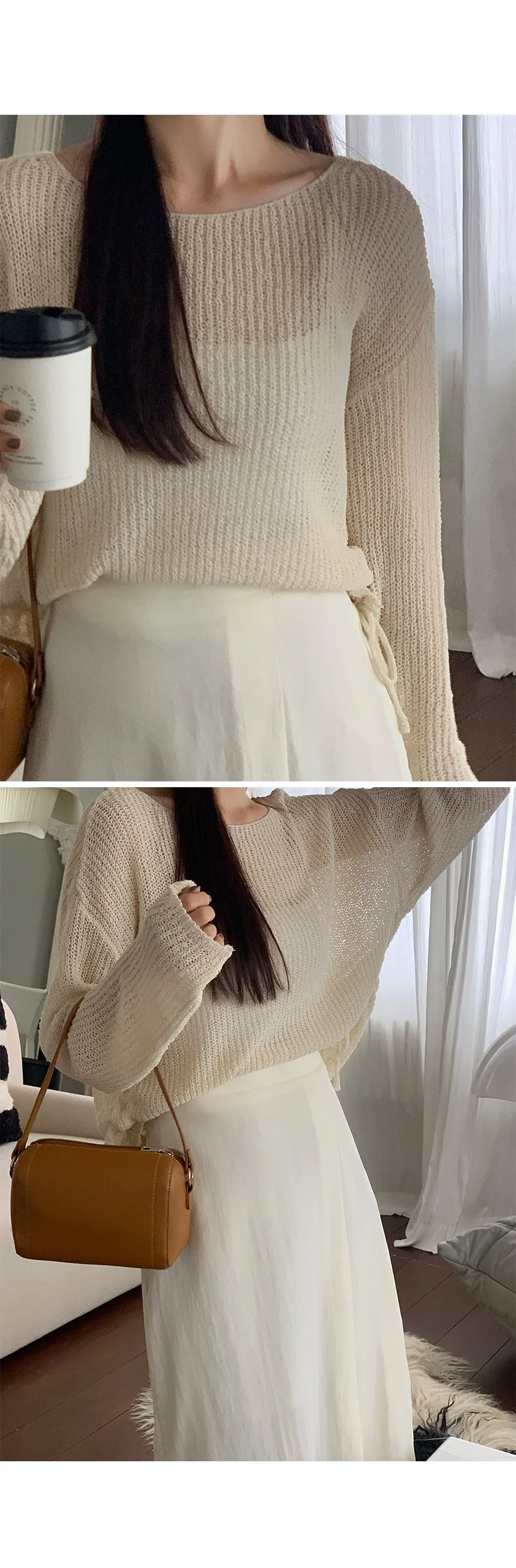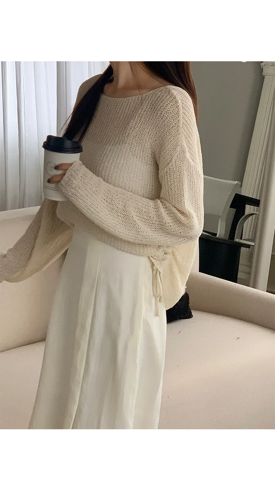 透氣的針織面料即使是長袖也能舒適穿著,突出鎖骨線條的船領打造出女性化的輪廓♡