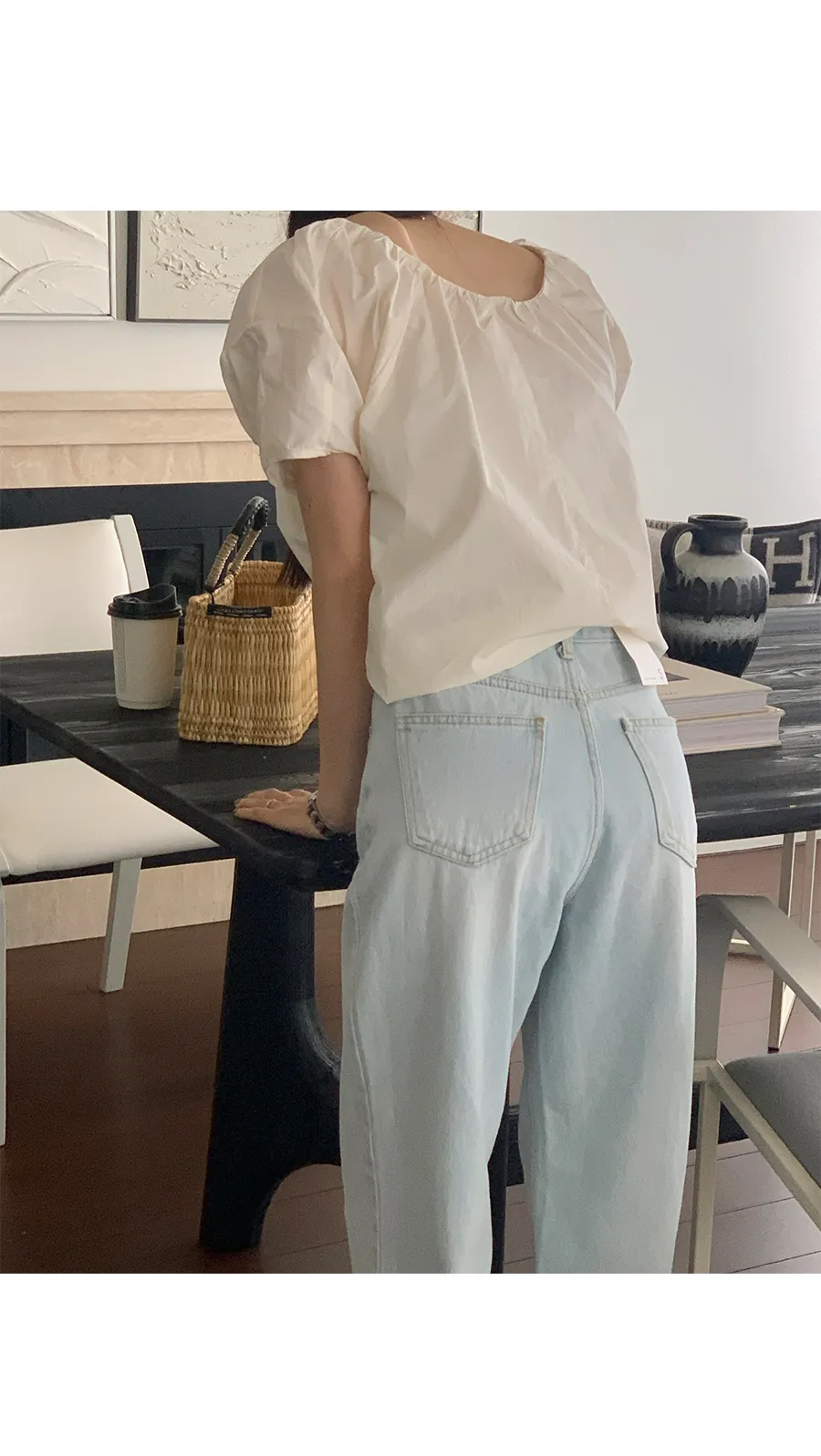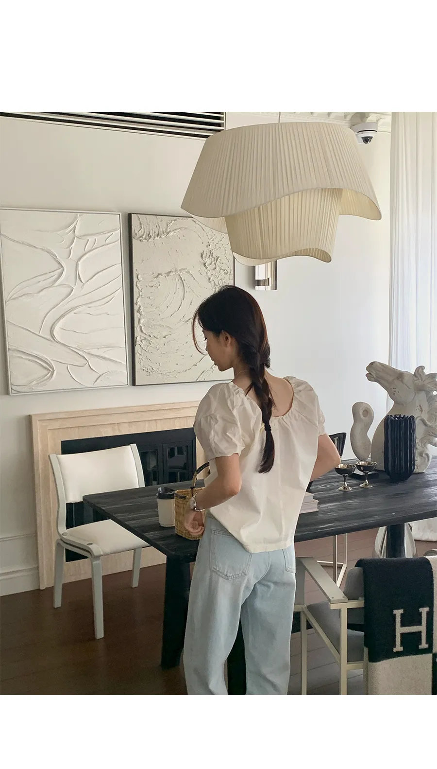 迷人的寬鬆版型,寬鬆的燈籠袖,袖口處加入垂直剪裁的線條,可以讓它看起來更漂亮,讓上衣更漂亮♡