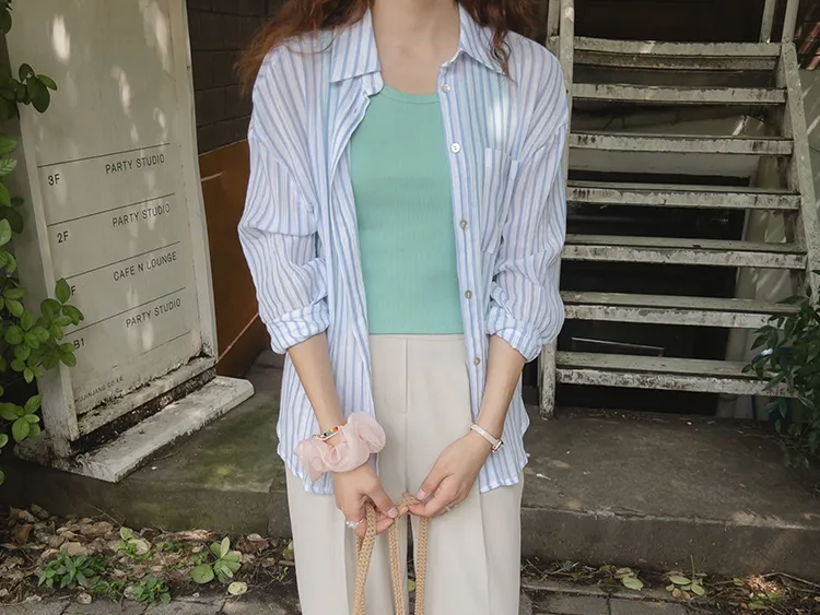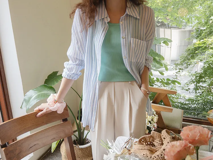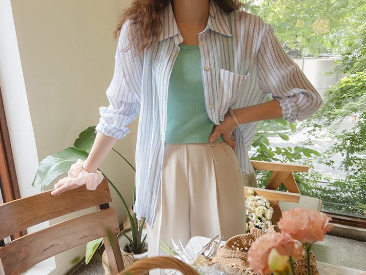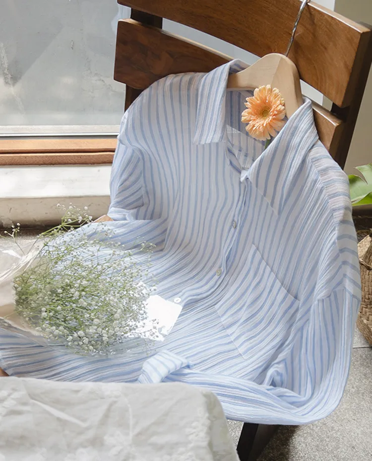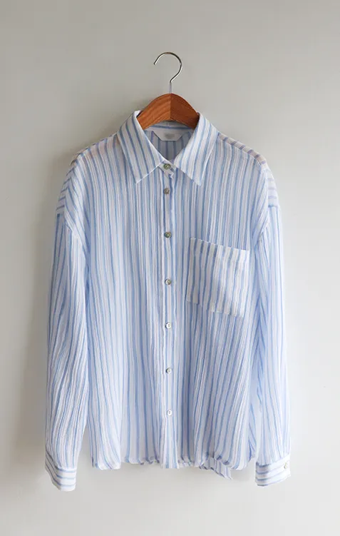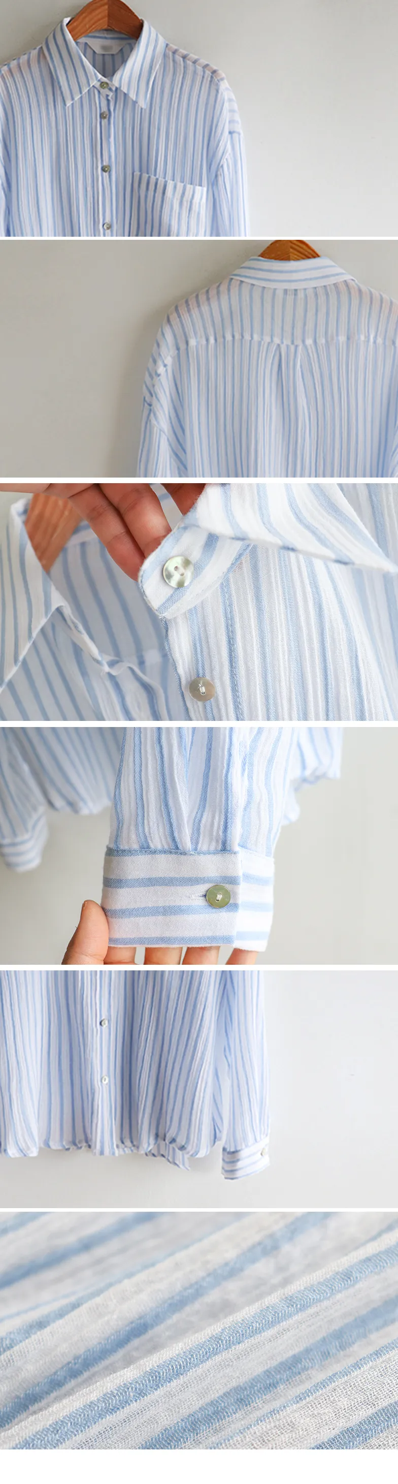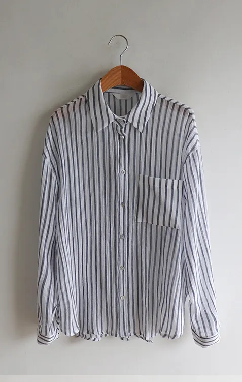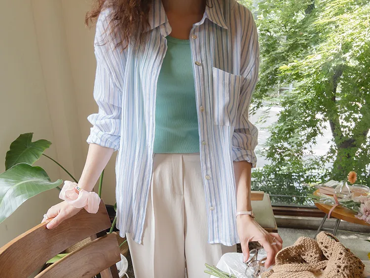 [迷人的條紋襯衫,微妙的透明度♡][柔軟輕款的紗棉面料,涼爽][夏季單品,推薦作為的室內穿搭襯衫!