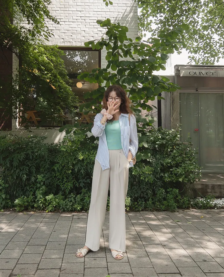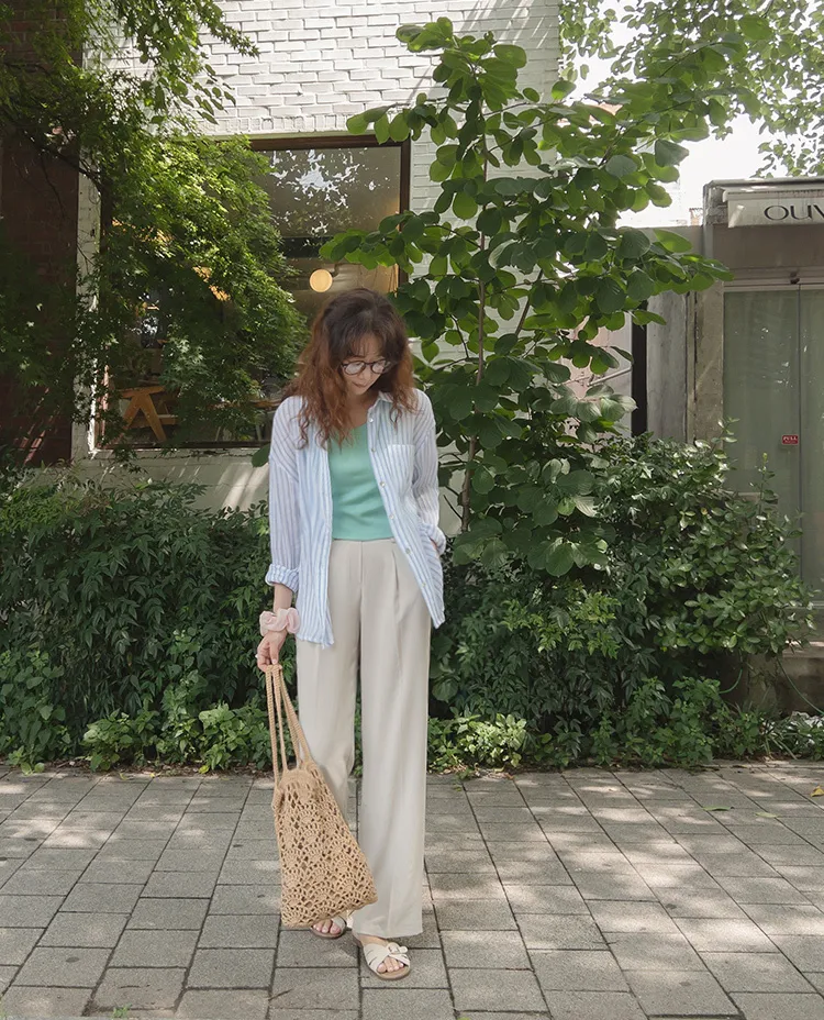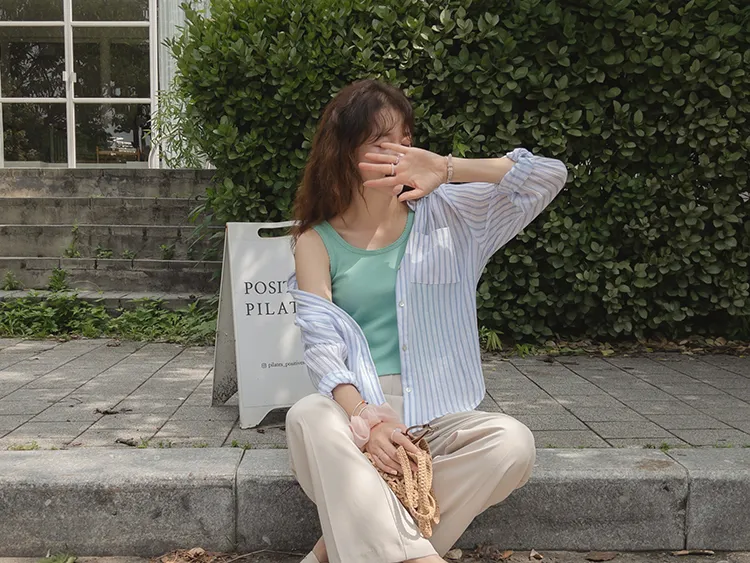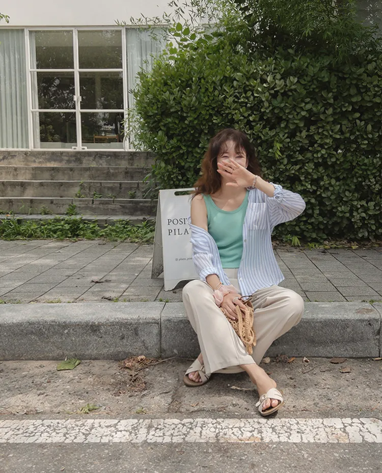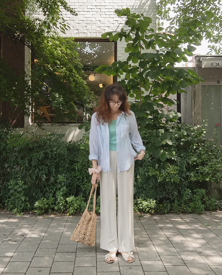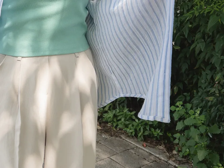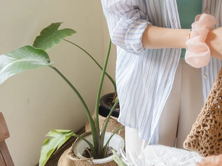 [迷人的條紋襯衫,微妙的透明度♡][柔軟輕款的紗棉面料,涼爽][夏季單品,推薦作為的室內穿搭襯衫!