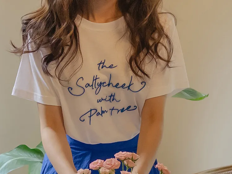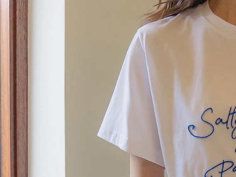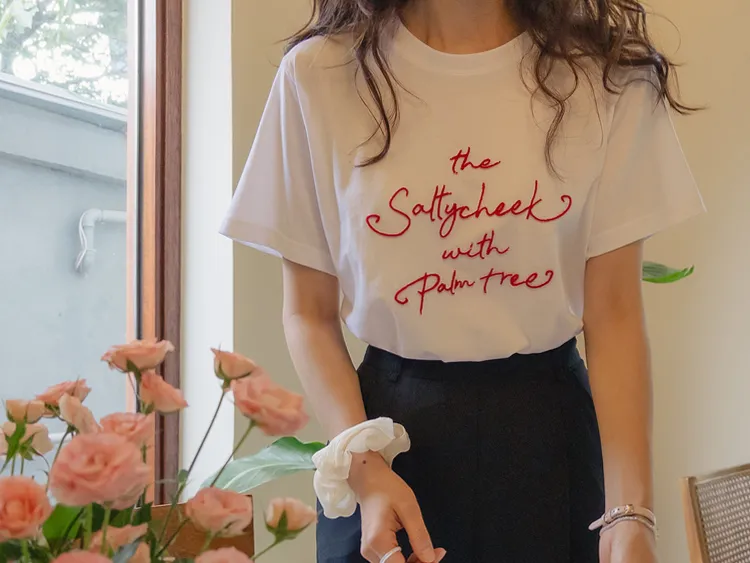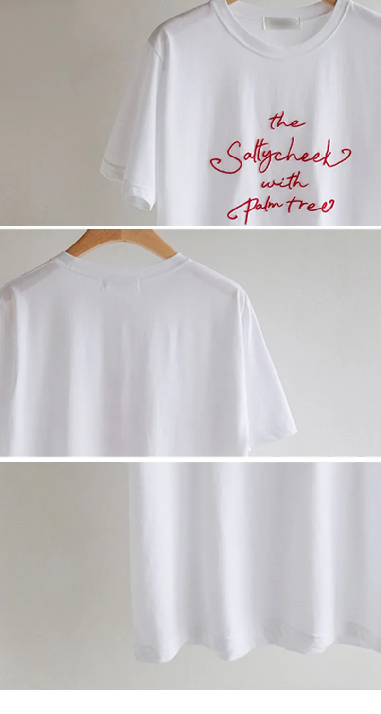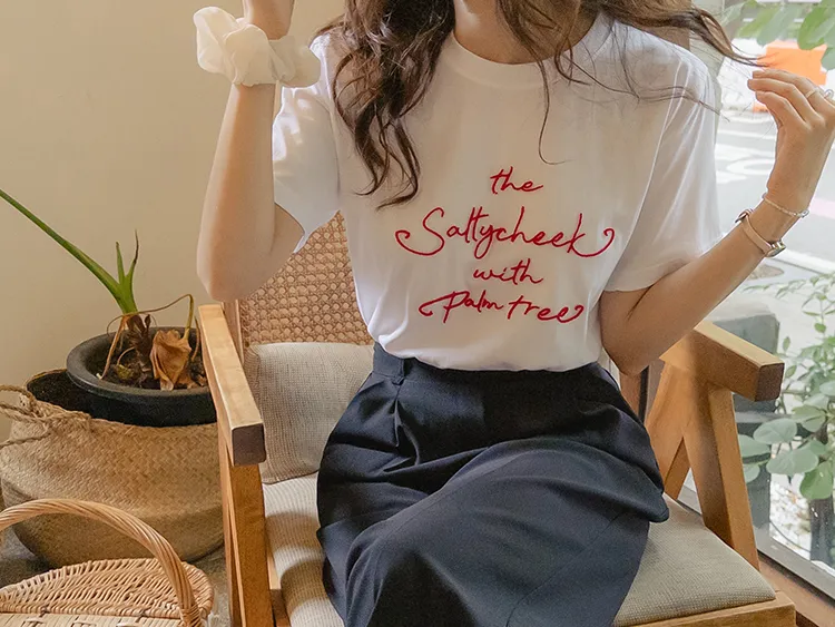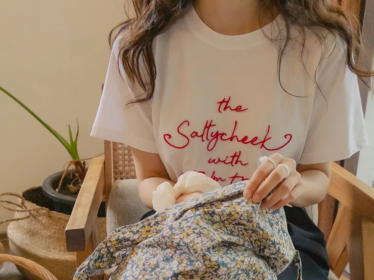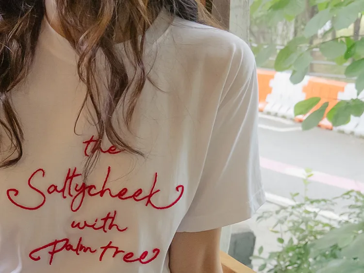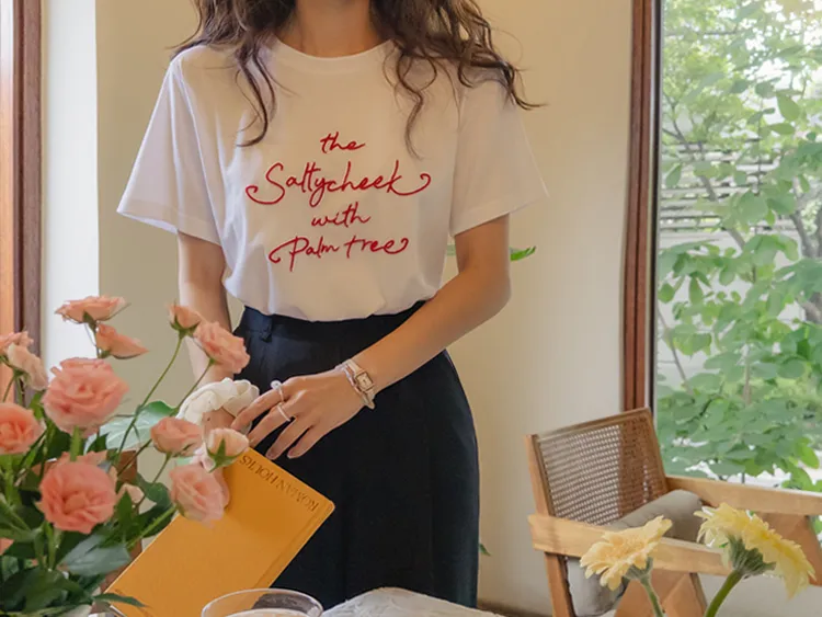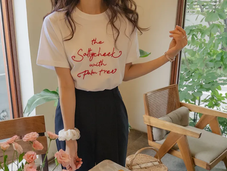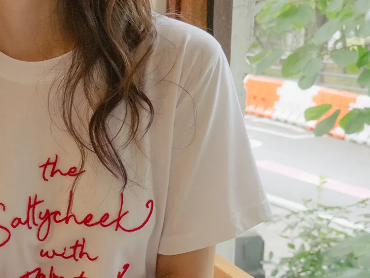 [字樣刺繡T♥] [柔和的字體,溫柔的女性氣質] [觸感柔軟] [寬鬆版型,舒適穿搭~]