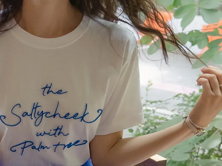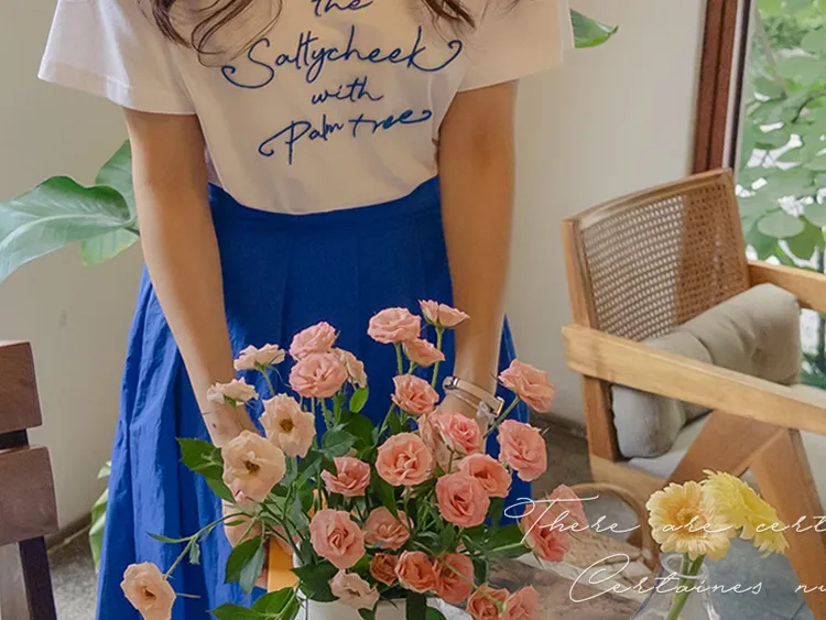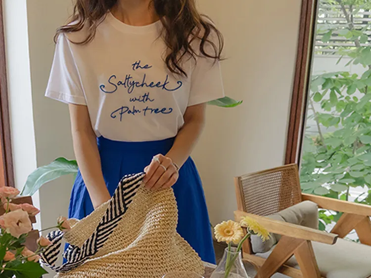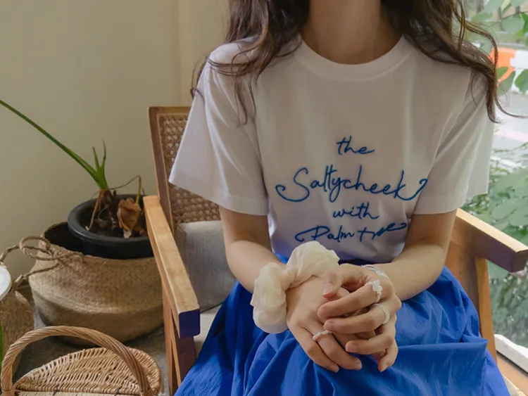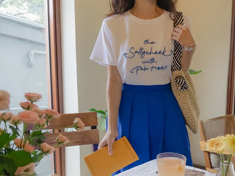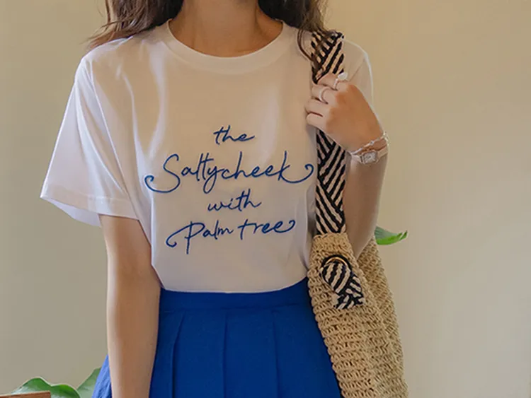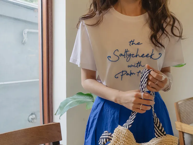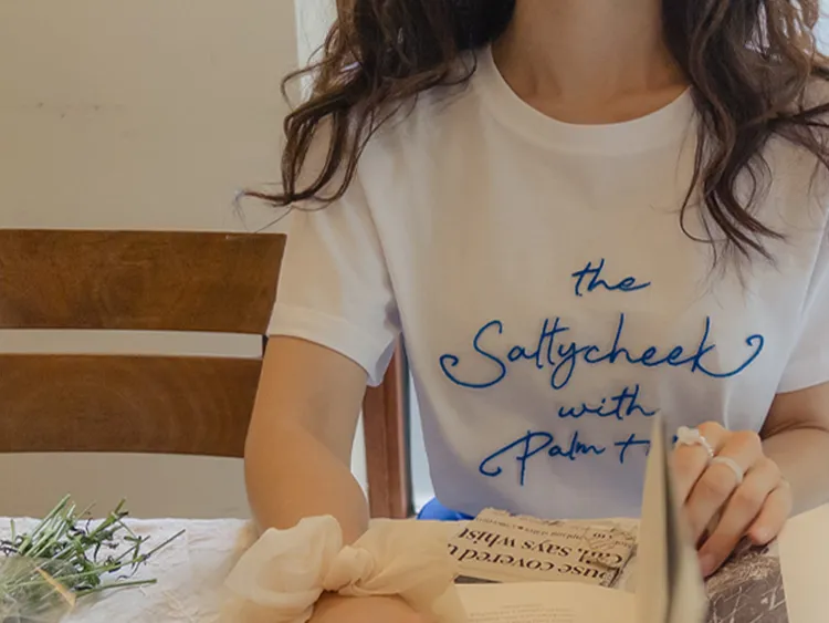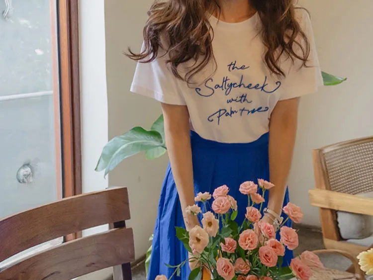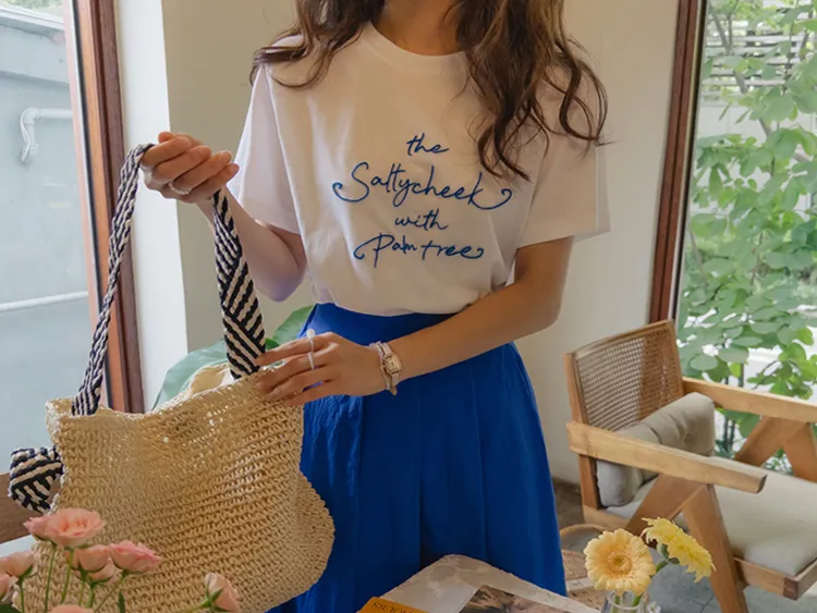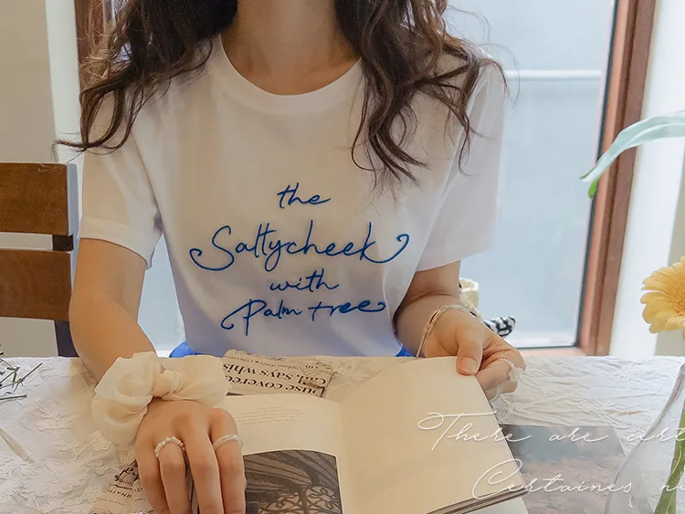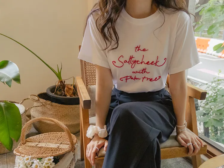 [字樣刺繡T♥] [柔和的字體,溫柔的女性氣質] [觸感柔軟] [寬鬆版型,舒適穿搭~]