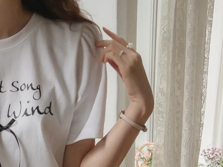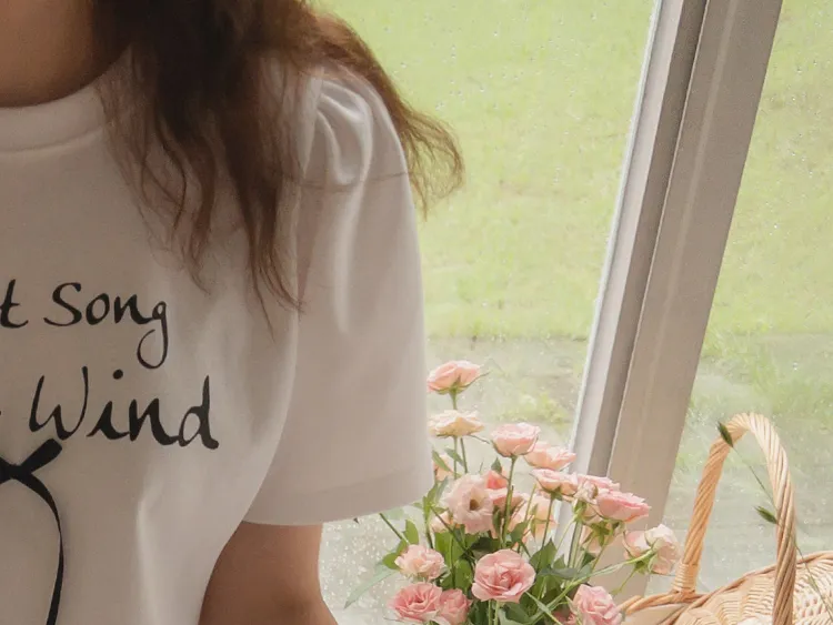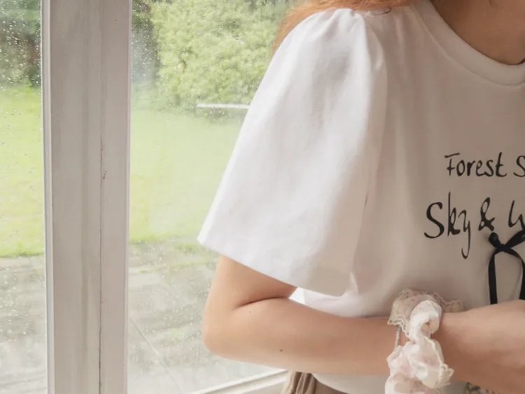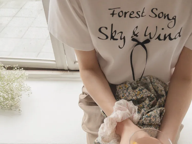 【可愛的上衣,有時尚的字母和立體絲帶細節】【袖子打褶設計,但是很可愛~】