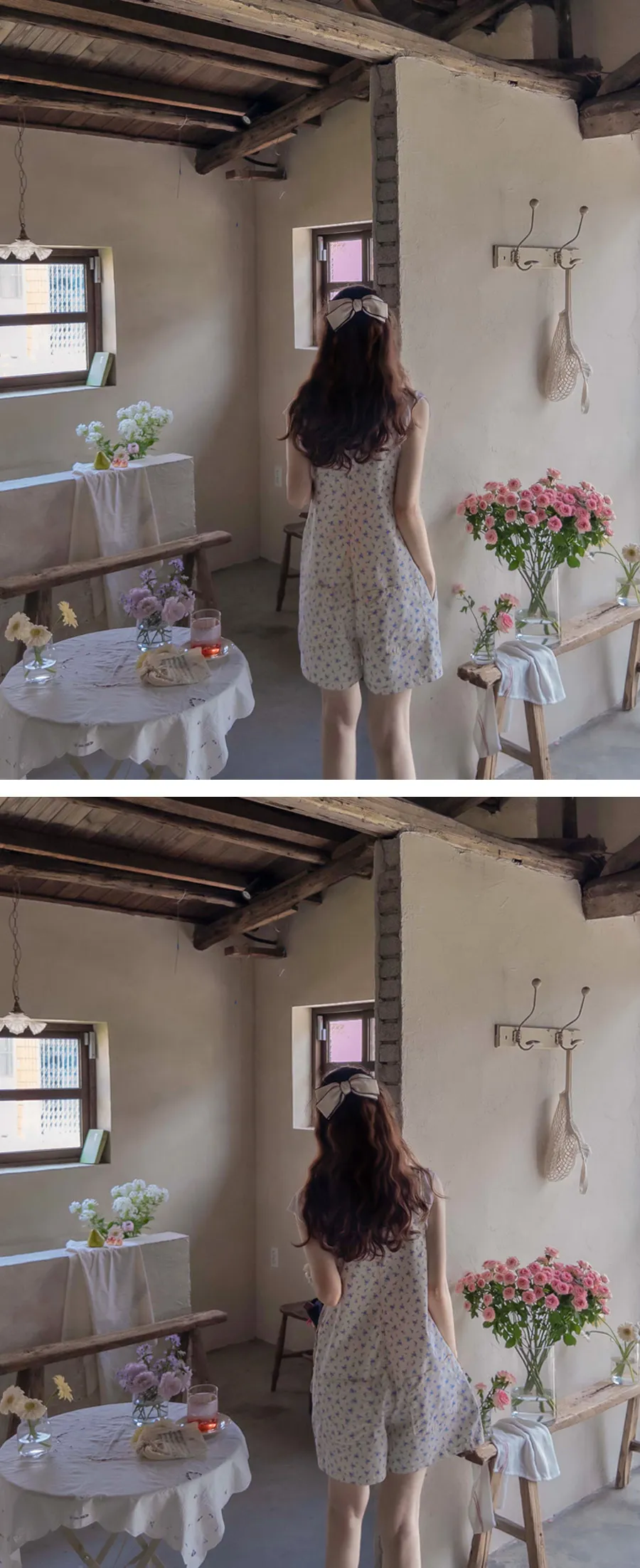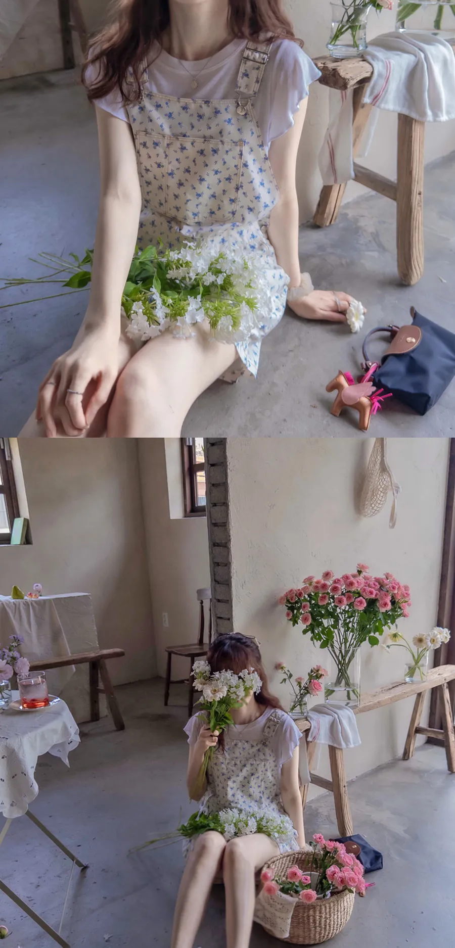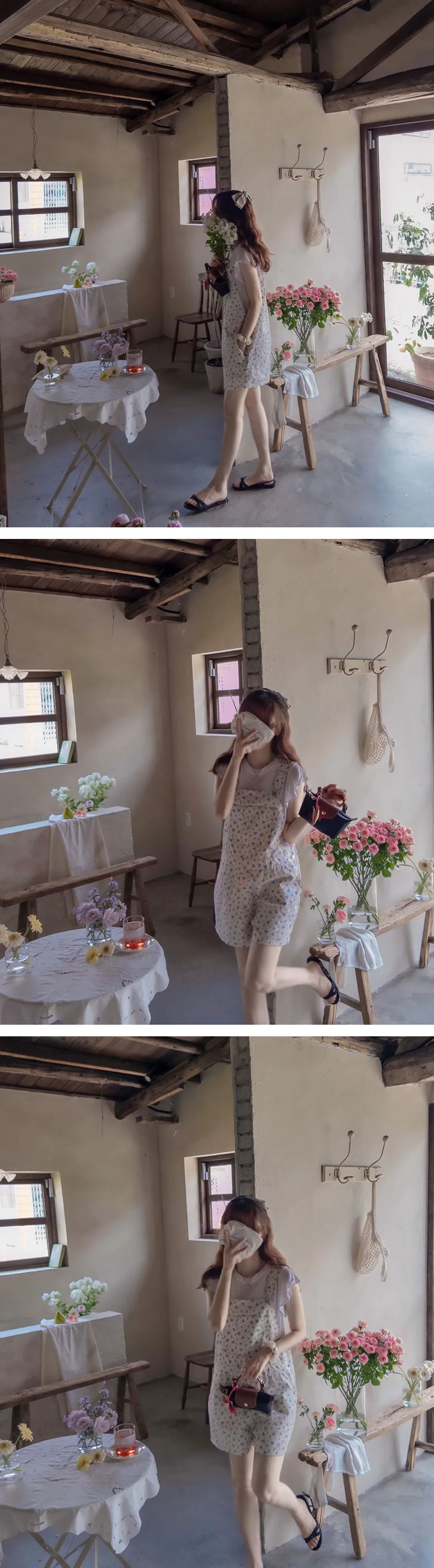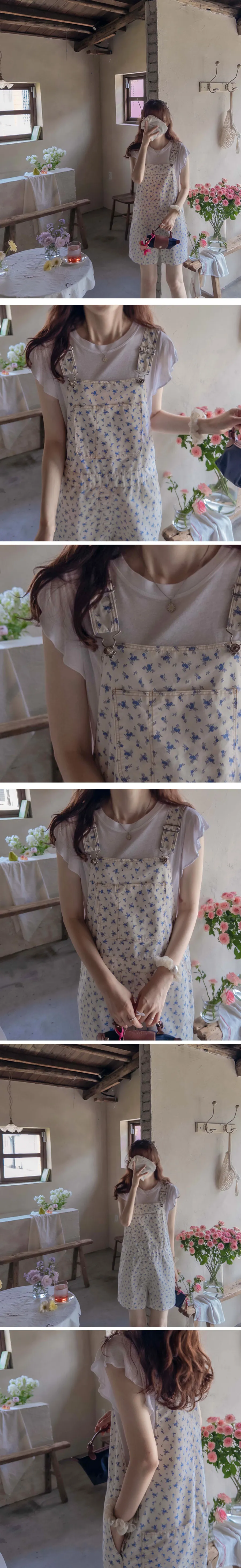 可愛花朵可調肩帶吊帶連身短褲