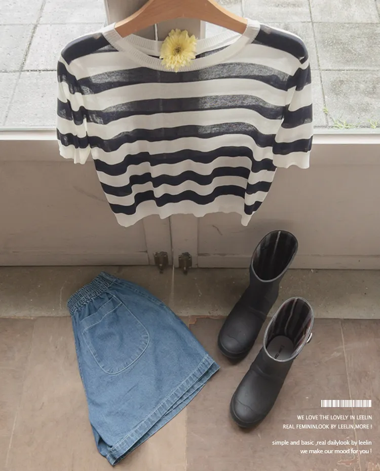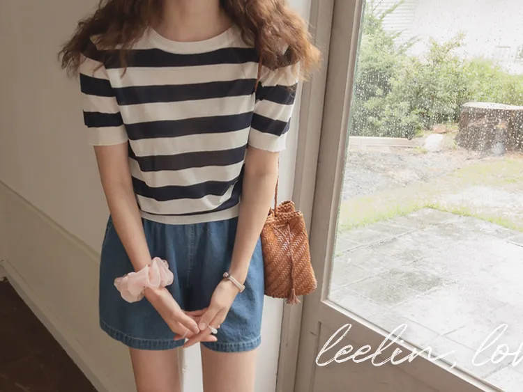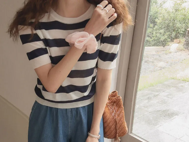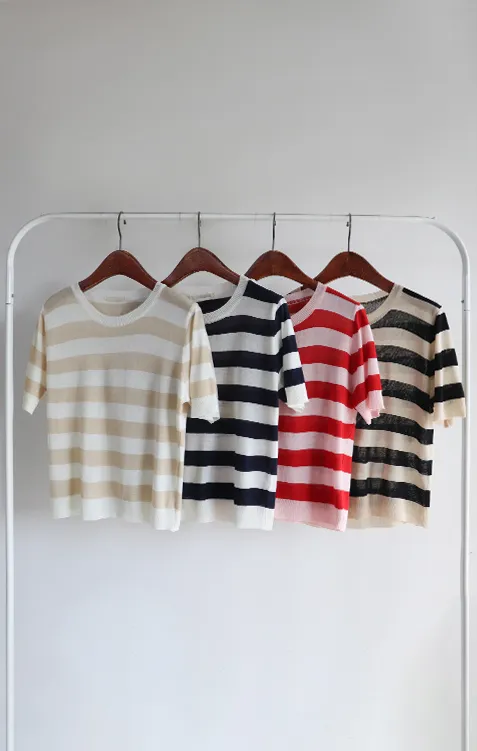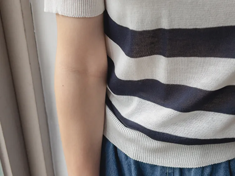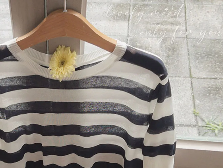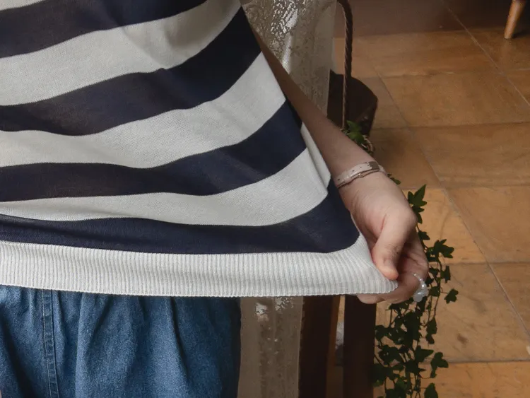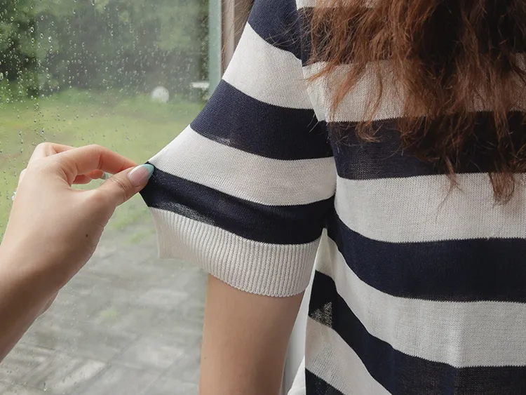 舒適穿搭柔軟彈性條紋針織上衣