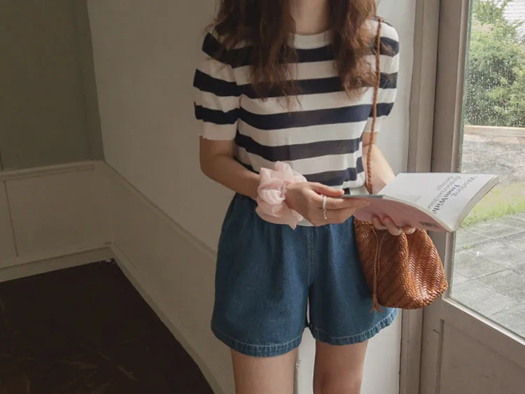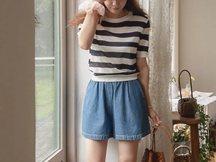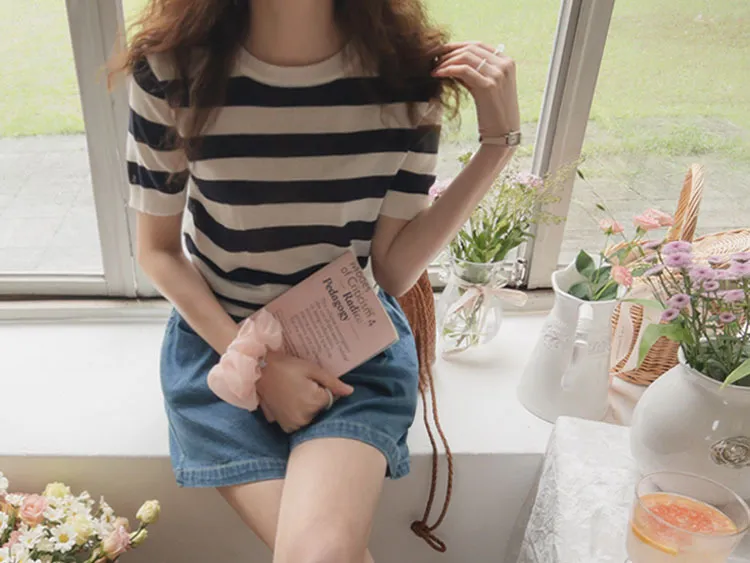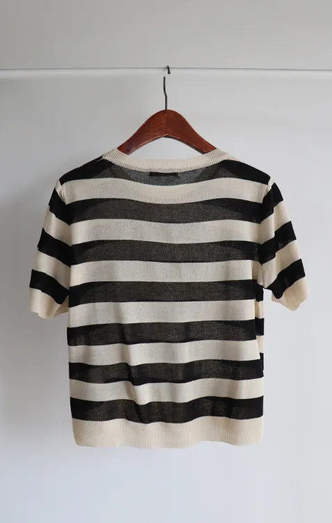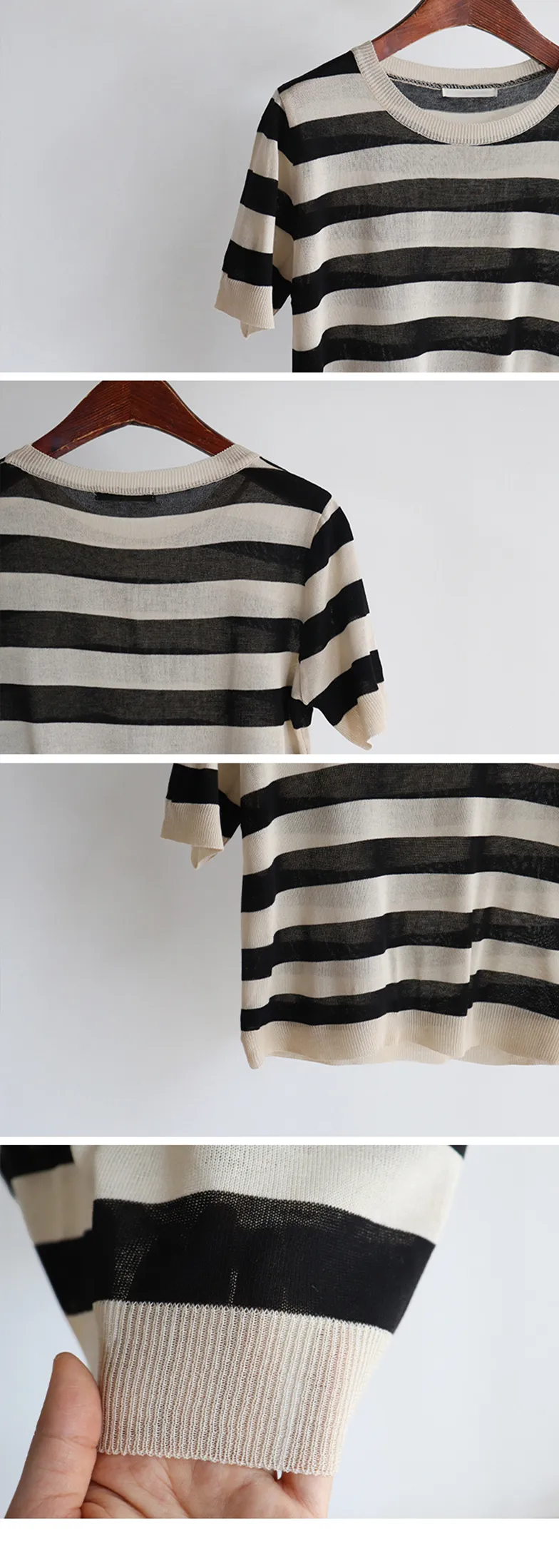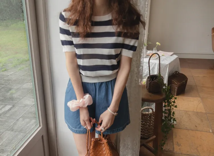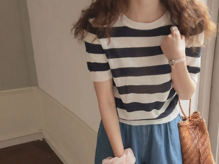 舒適穿搭柔軟彈性條紋針織上衣