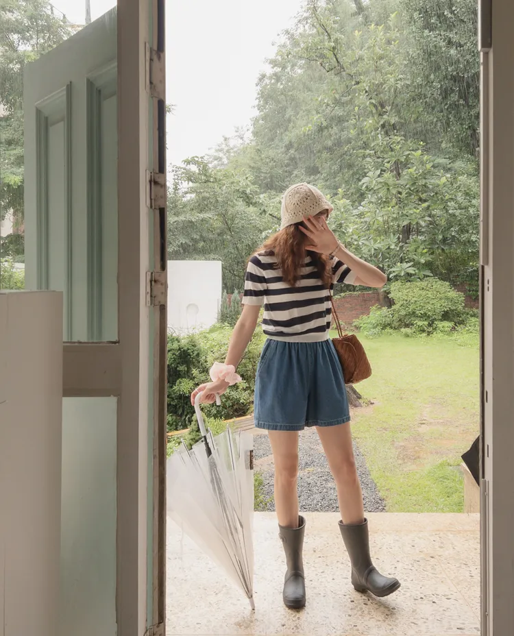 【粗條紋讓上半身顯瘦的效果】