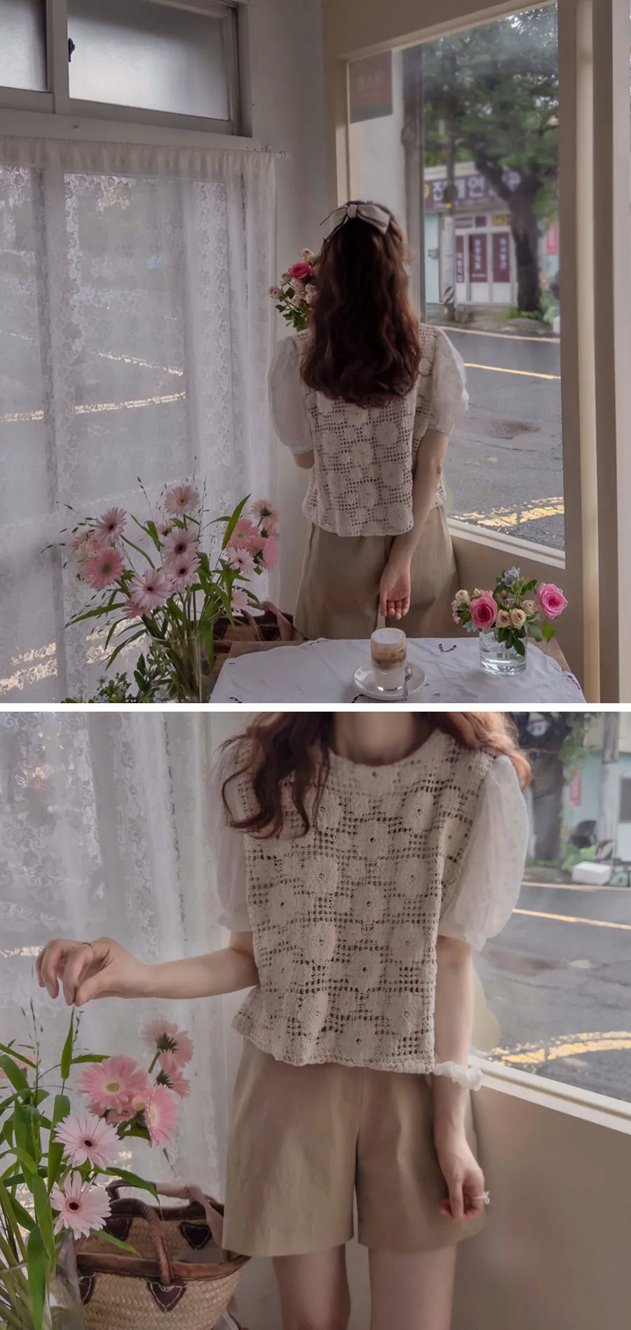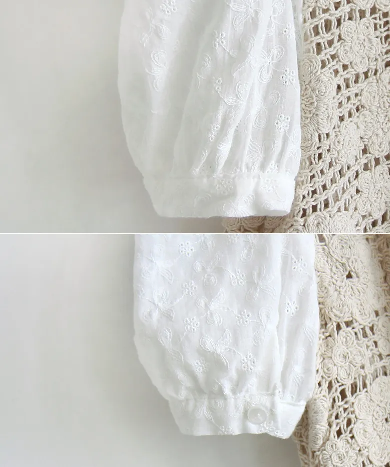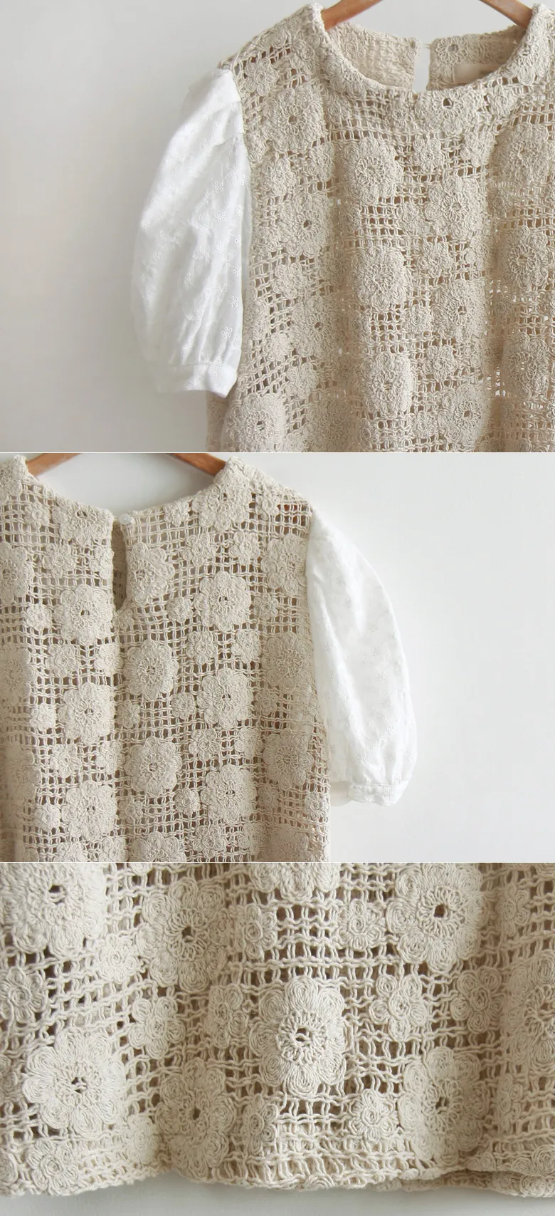 【立體花朵圖案的針織上衣】【袖子是迷你鏤空和花朵刺繡,太漂亮了】【很有特色的針織衫,穿起來很亮眼】【推薦這款可愛的蕾絲針織上衣,時尚合身]